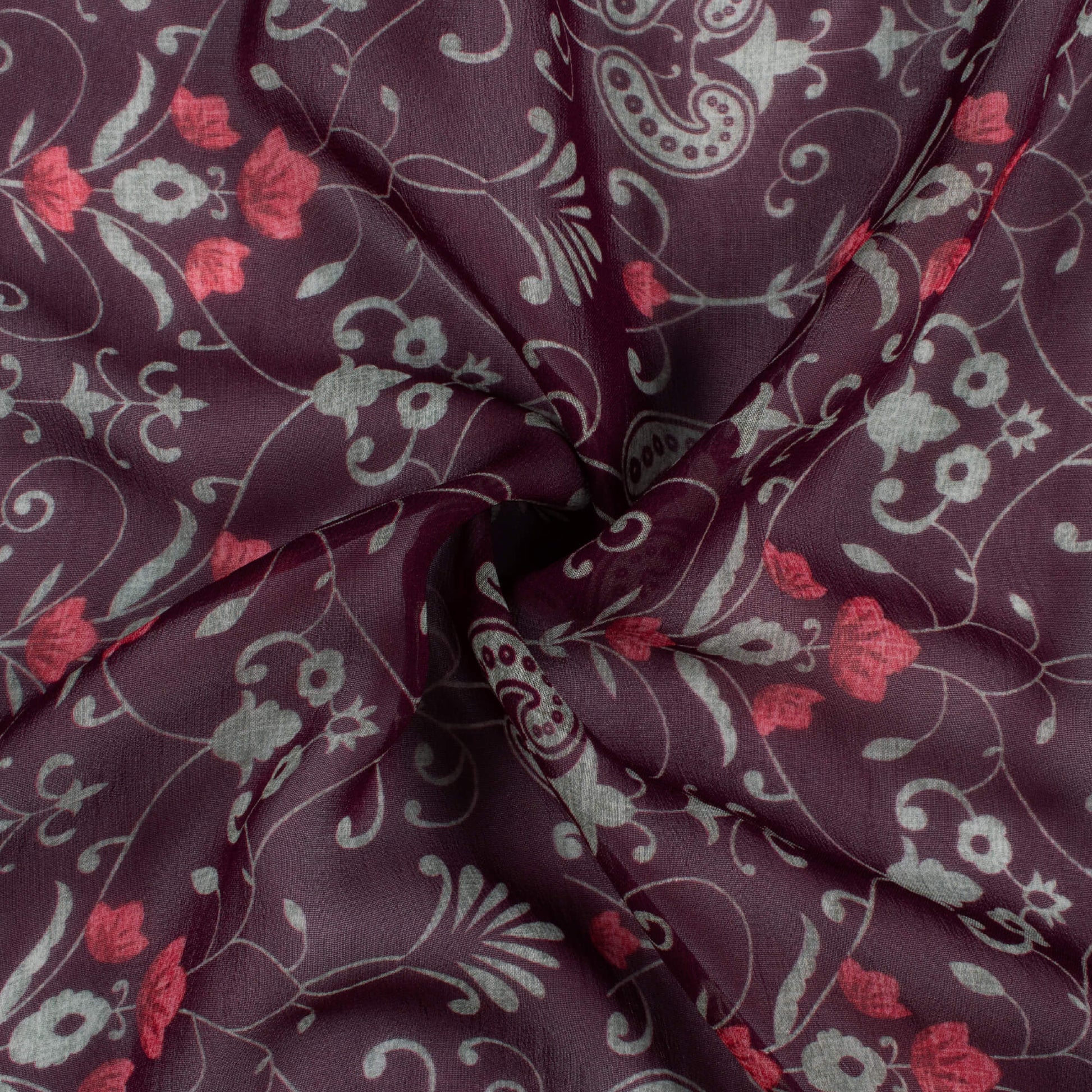 Raisin Purple And Tea Green Ethnic Pattern Digital Print Pure Georgette Fabric