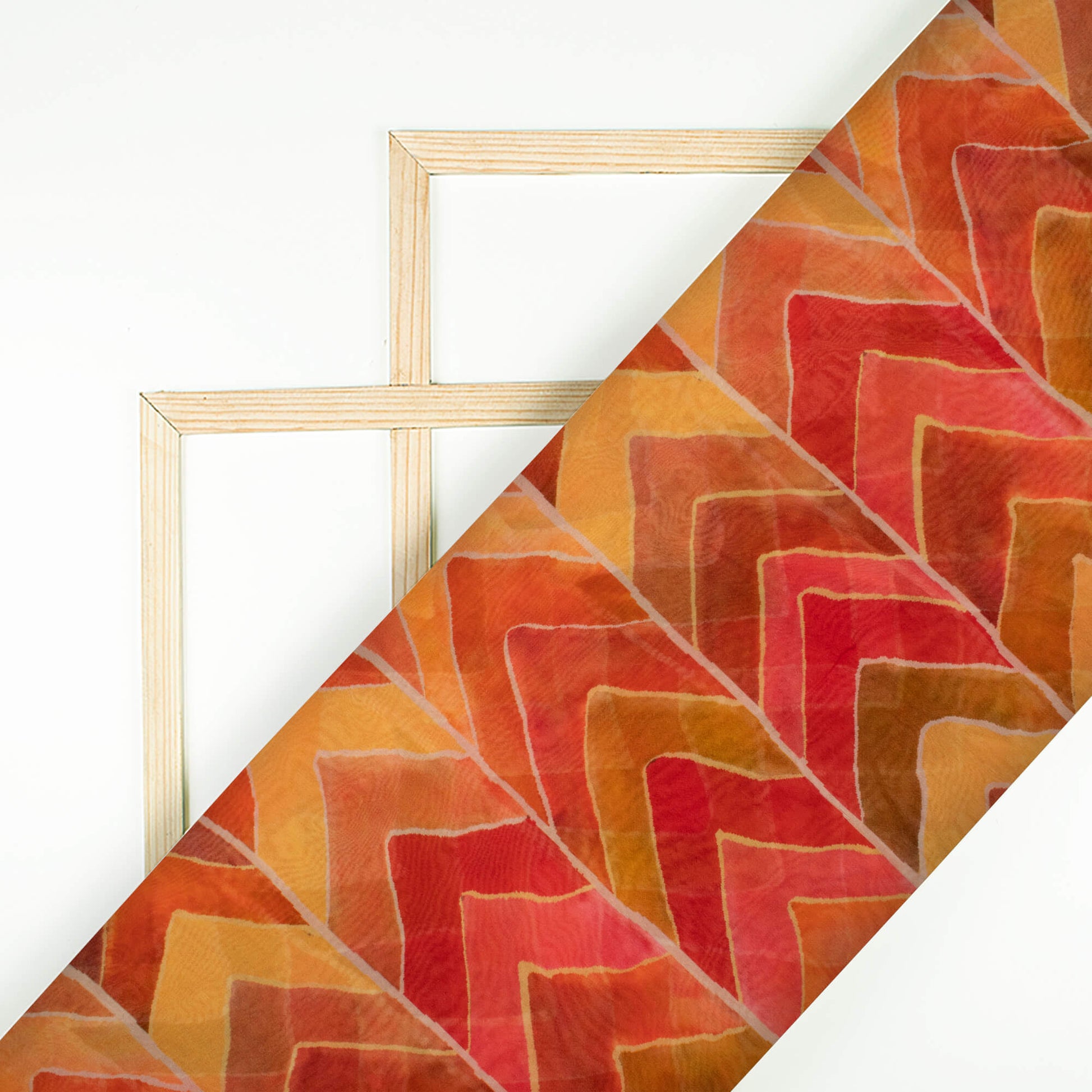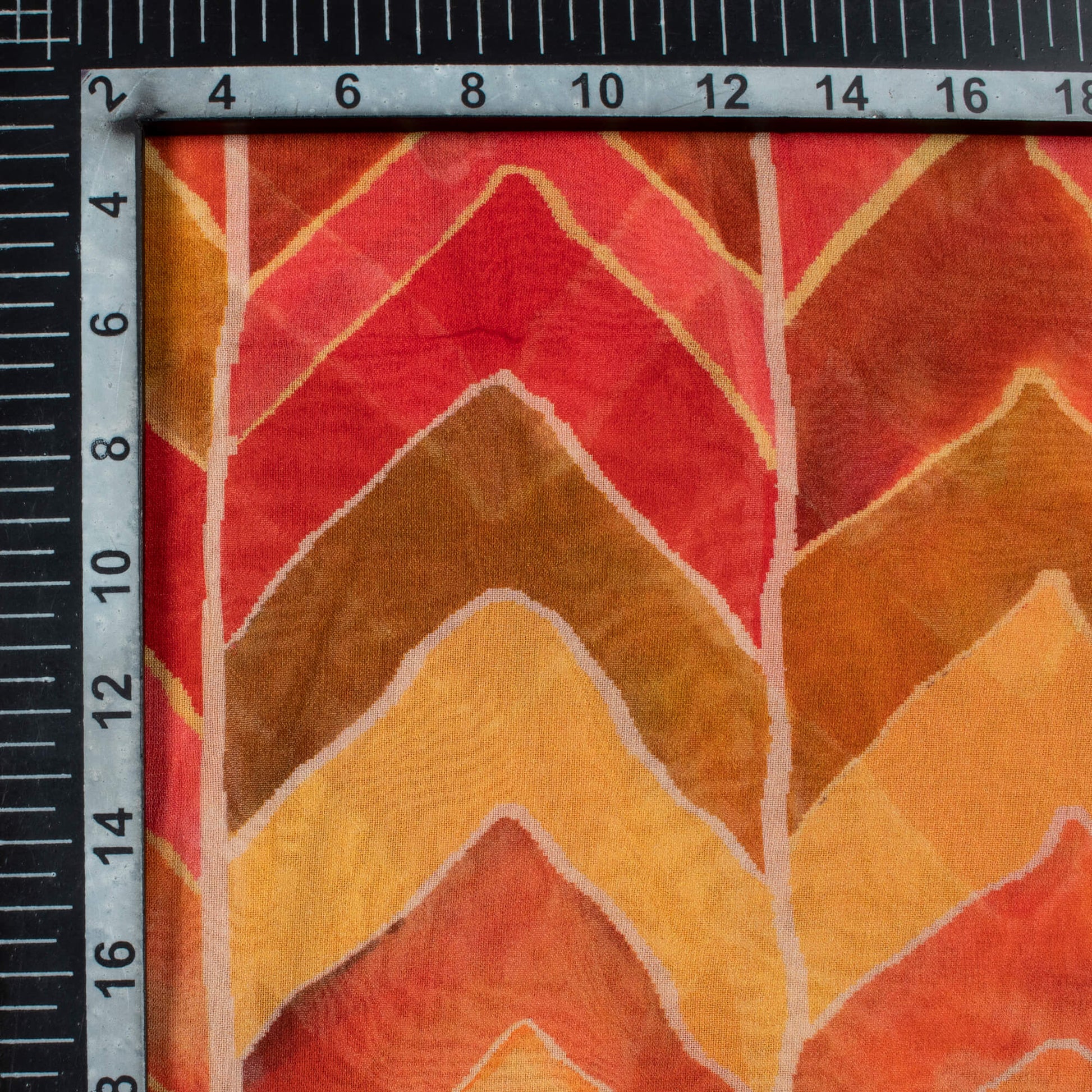 Red And Yellow Chevron Pattern Digital Print Pure Georgette Fabric