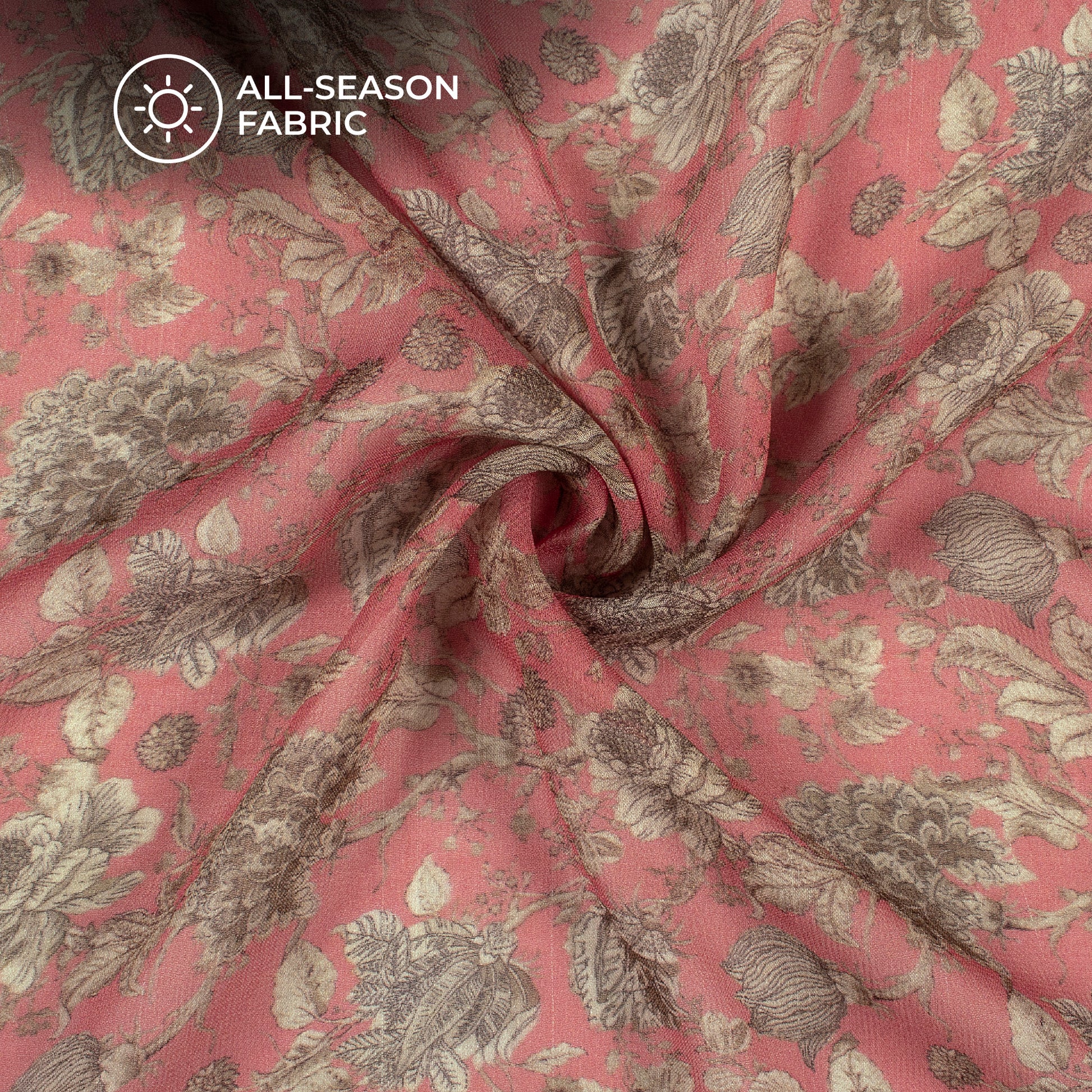 Rouge Pink And Beige Floral Digital Print Pure Georgette Fabric
