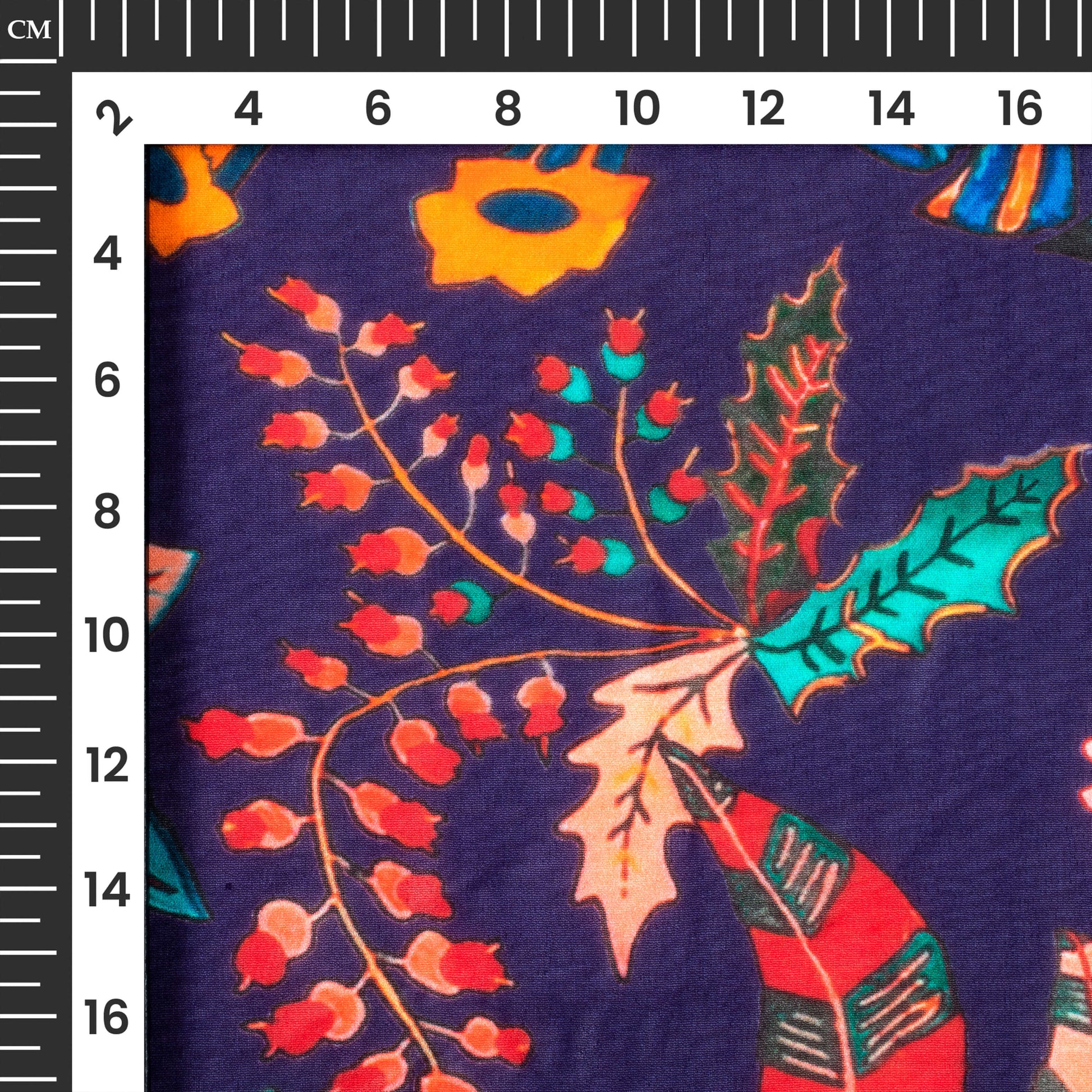 Royal Blue And Peach Floral Digital Print Pure Georgette Fabric