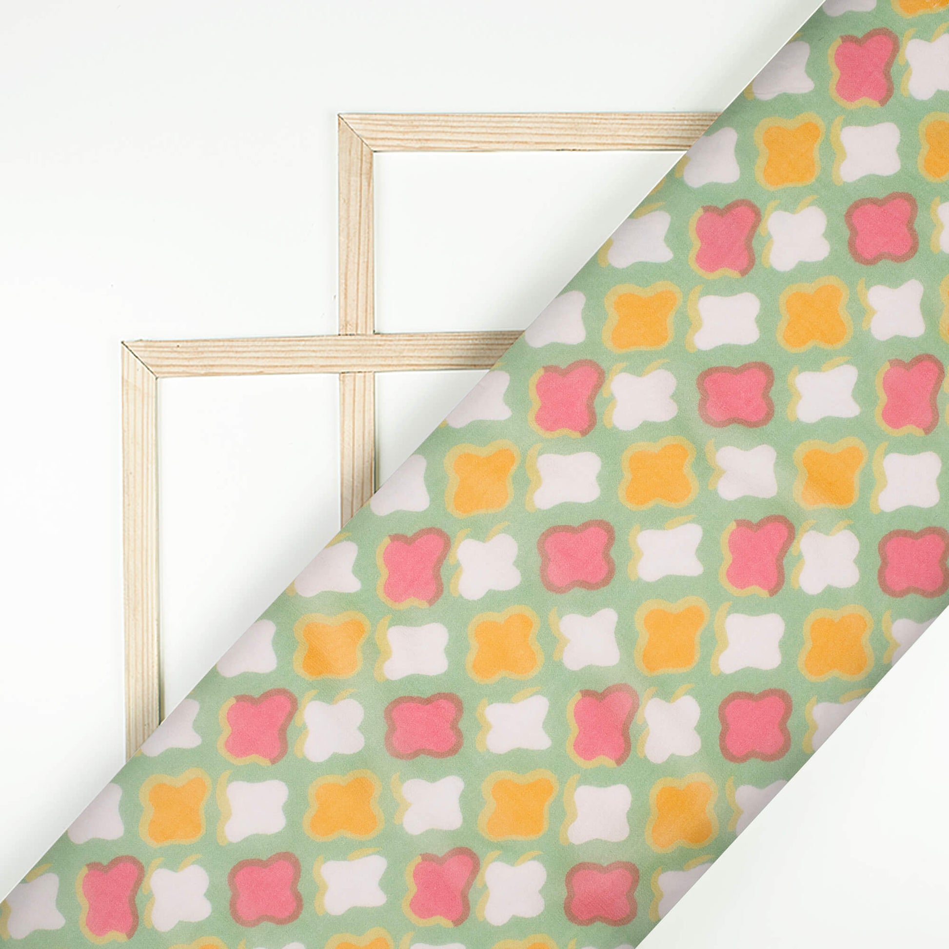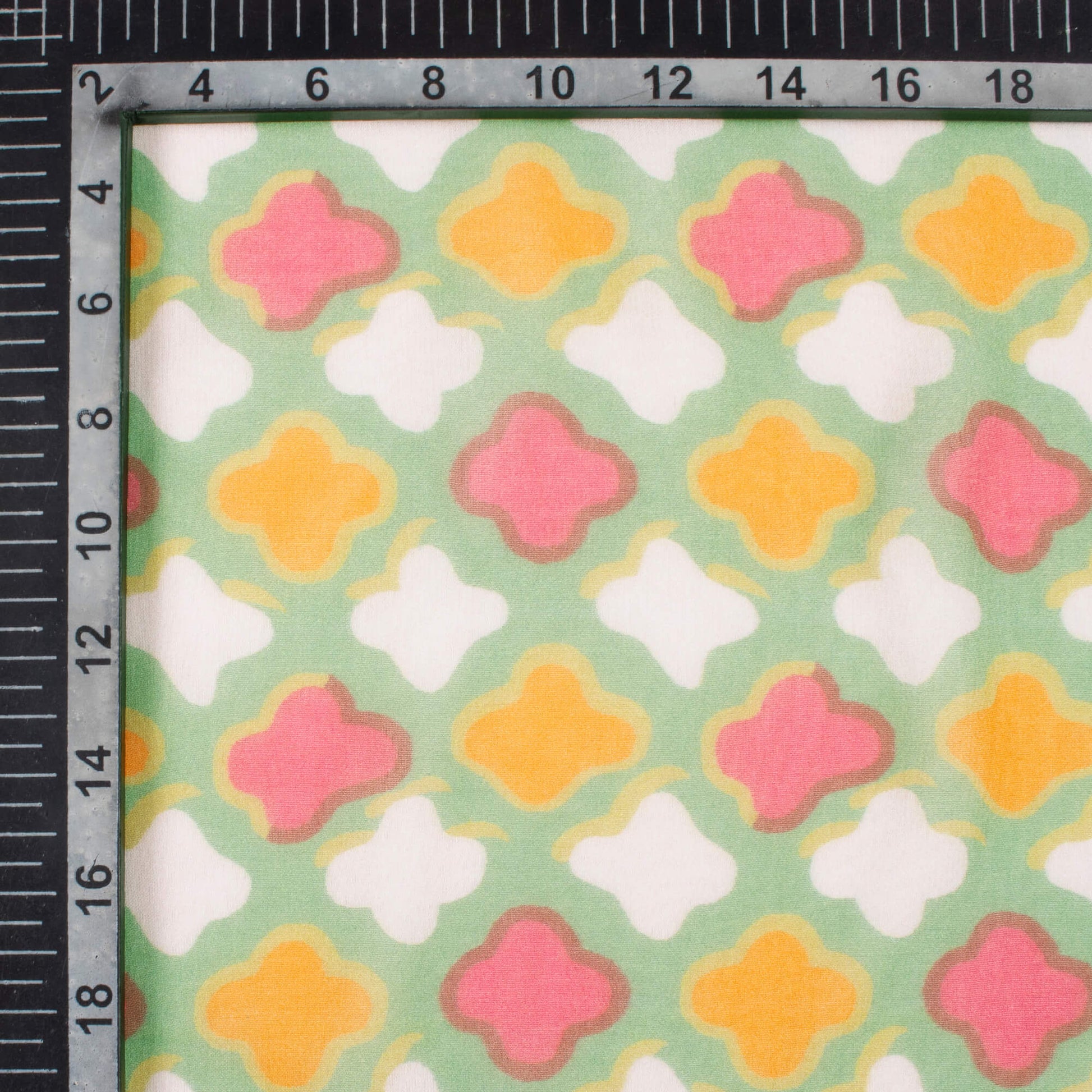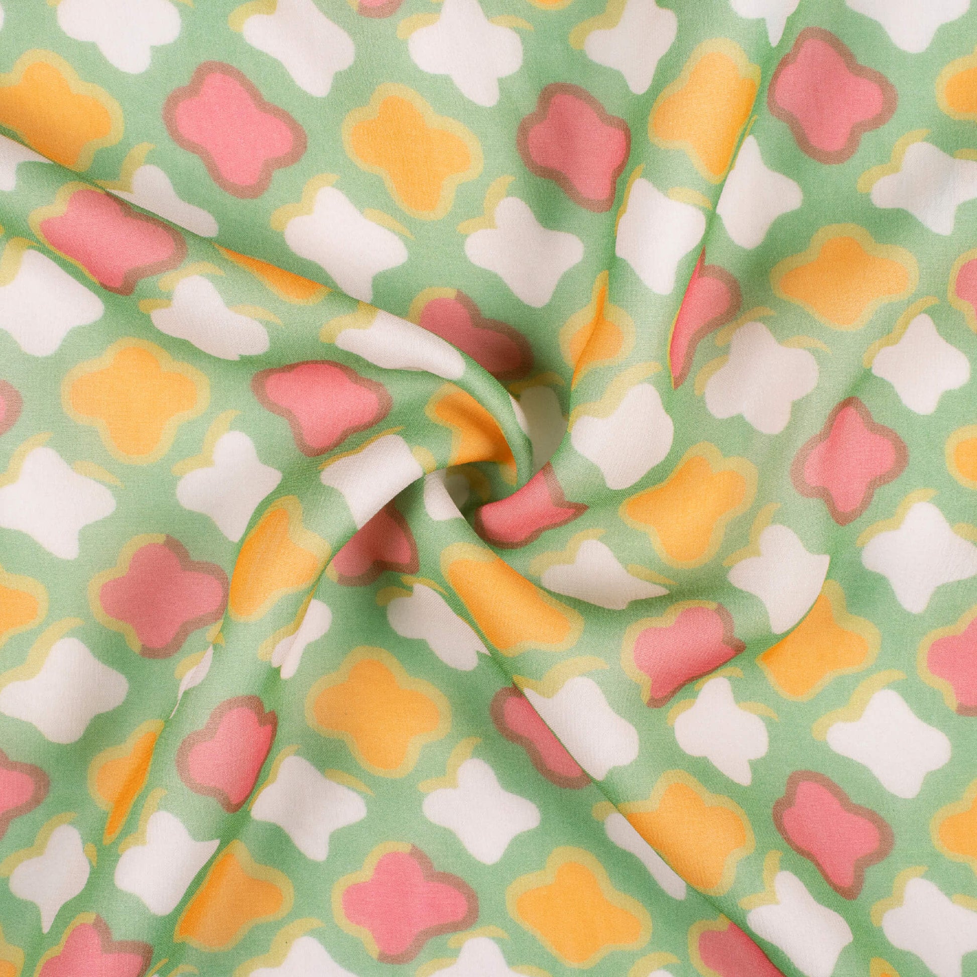 Sage Green And Deep Pink Geometric Pattern Digital Print Pure Georgette Fabric
