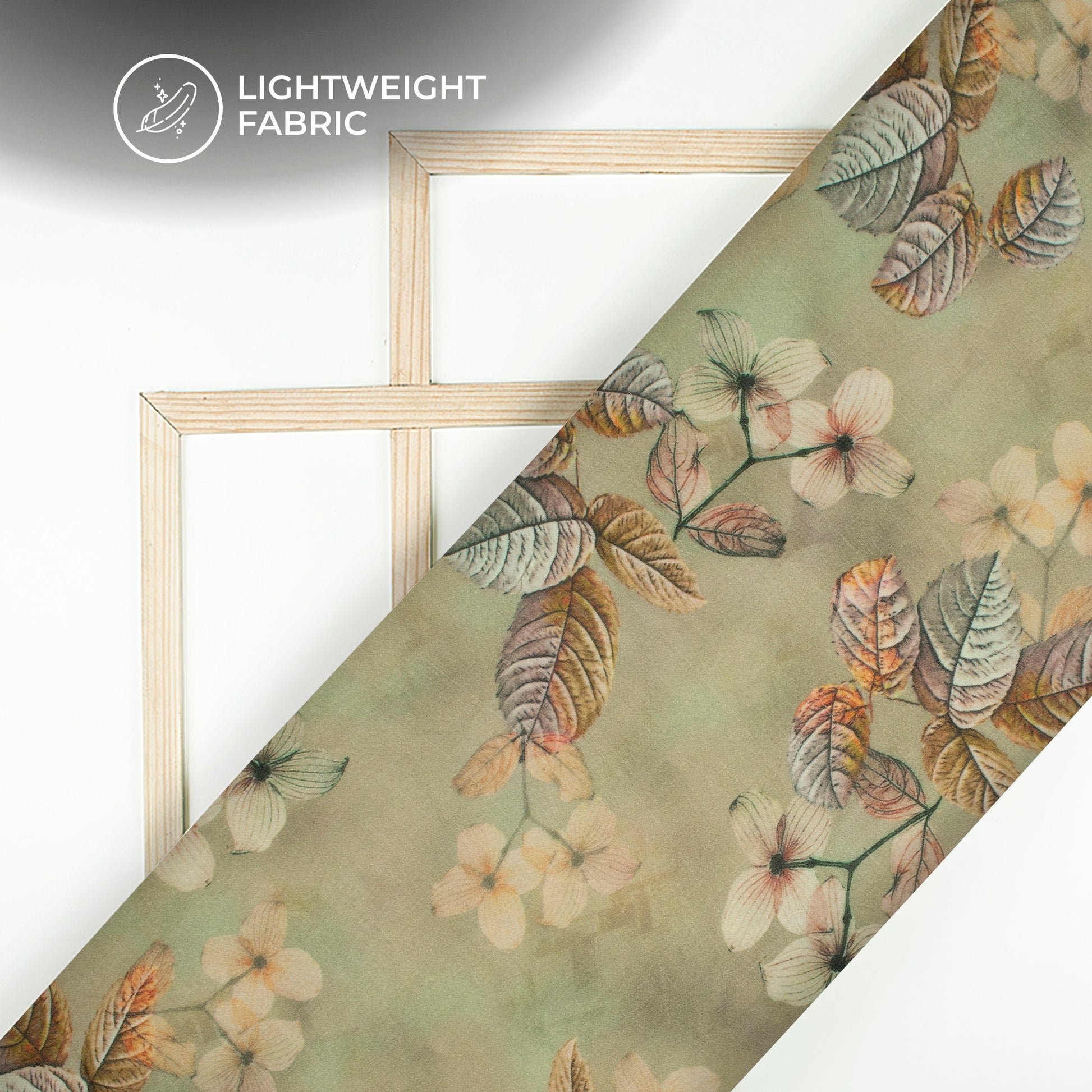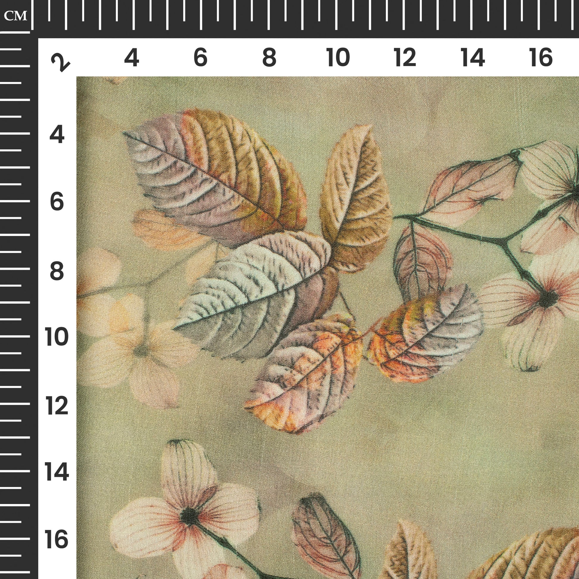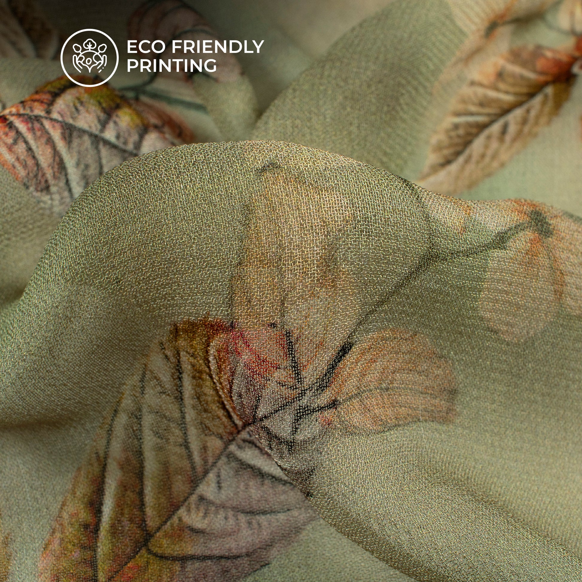 Sage Green And Yellow Leaf Digital Print Pure Georgette Fabric