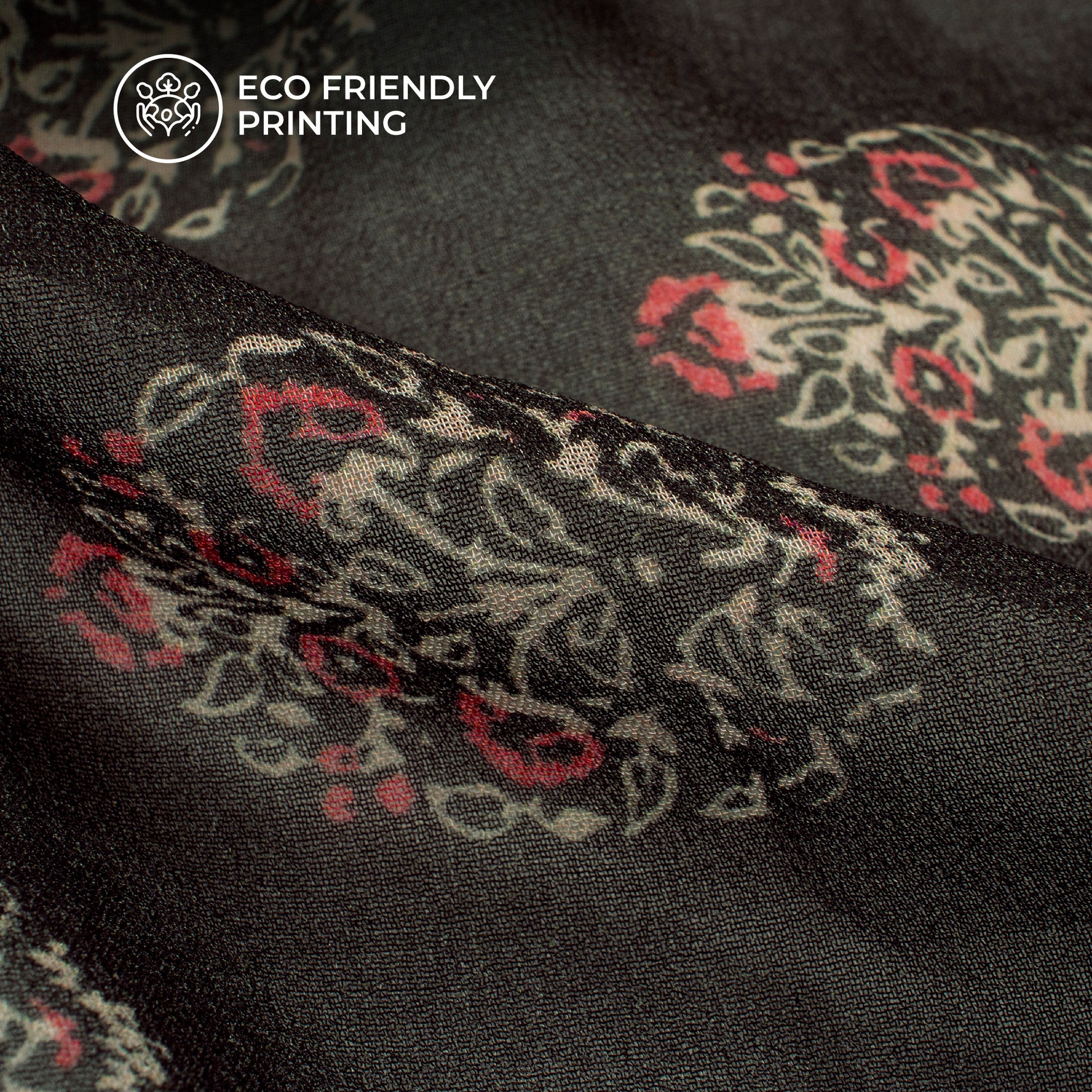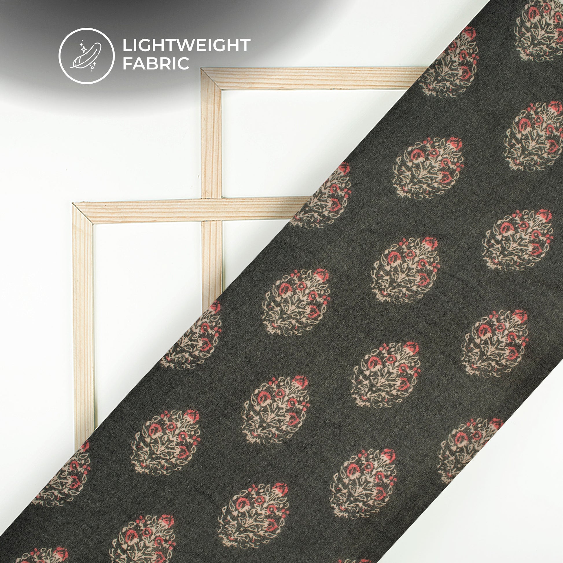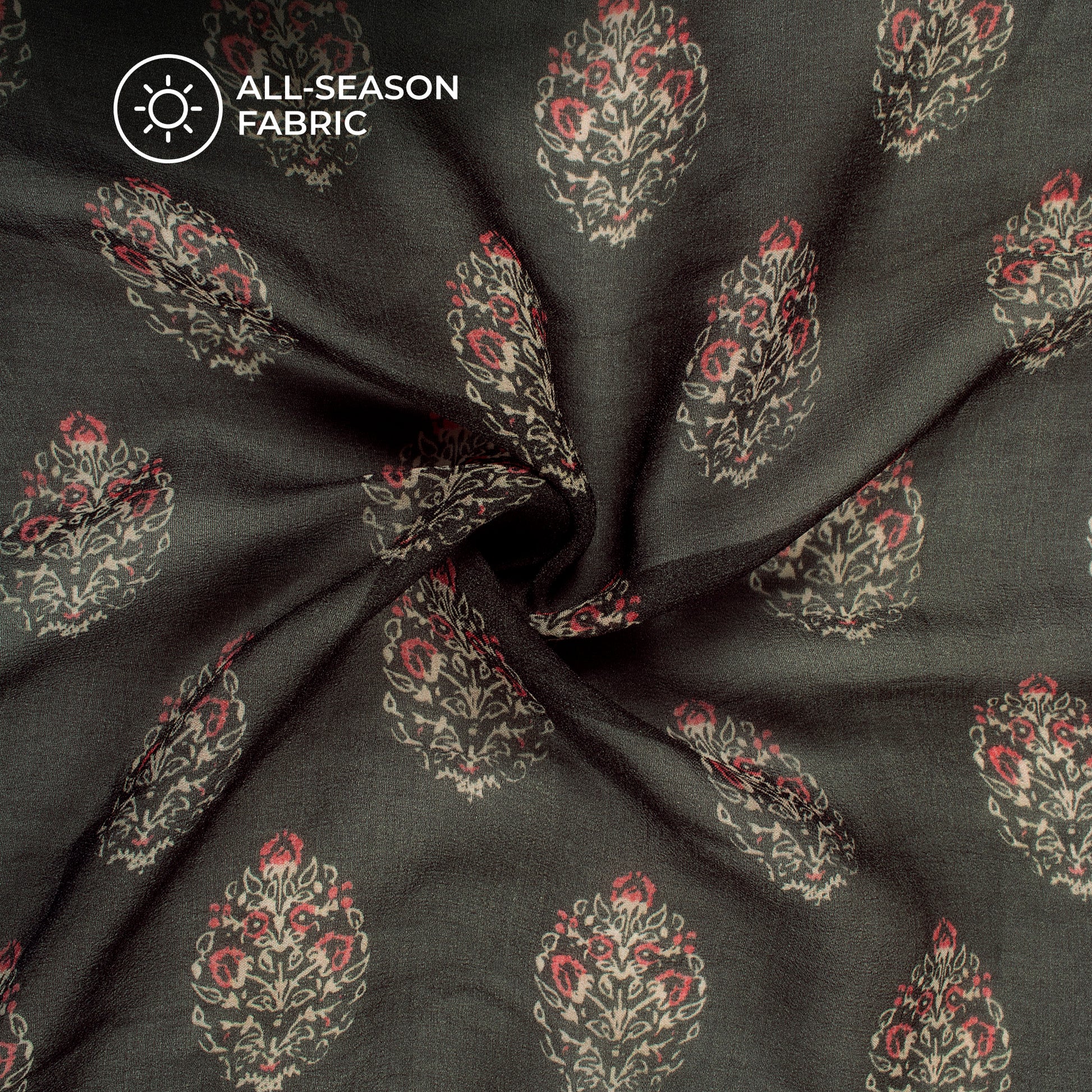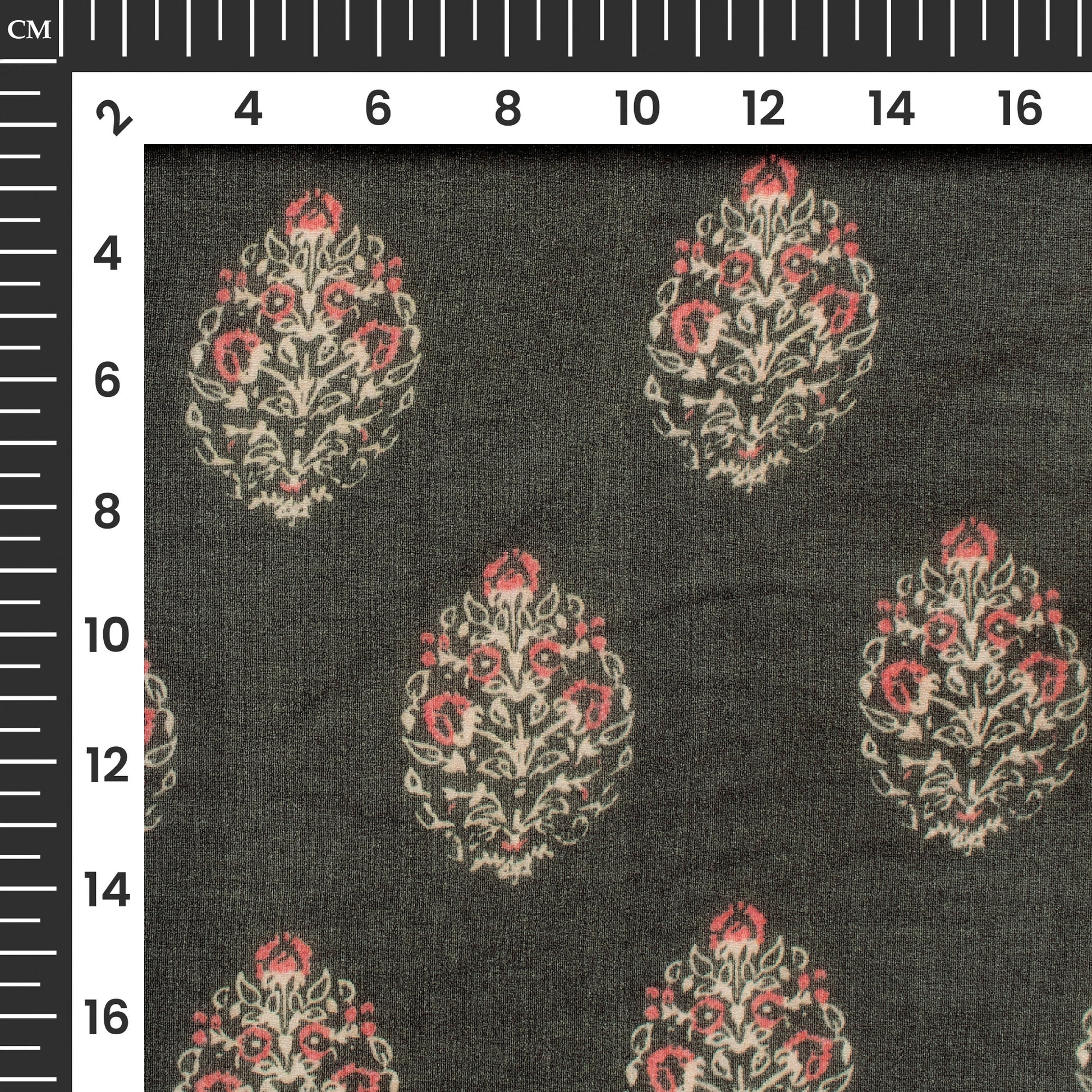 Seaweed Green And Beige Floral Digital Print Pure Georgette Fabric