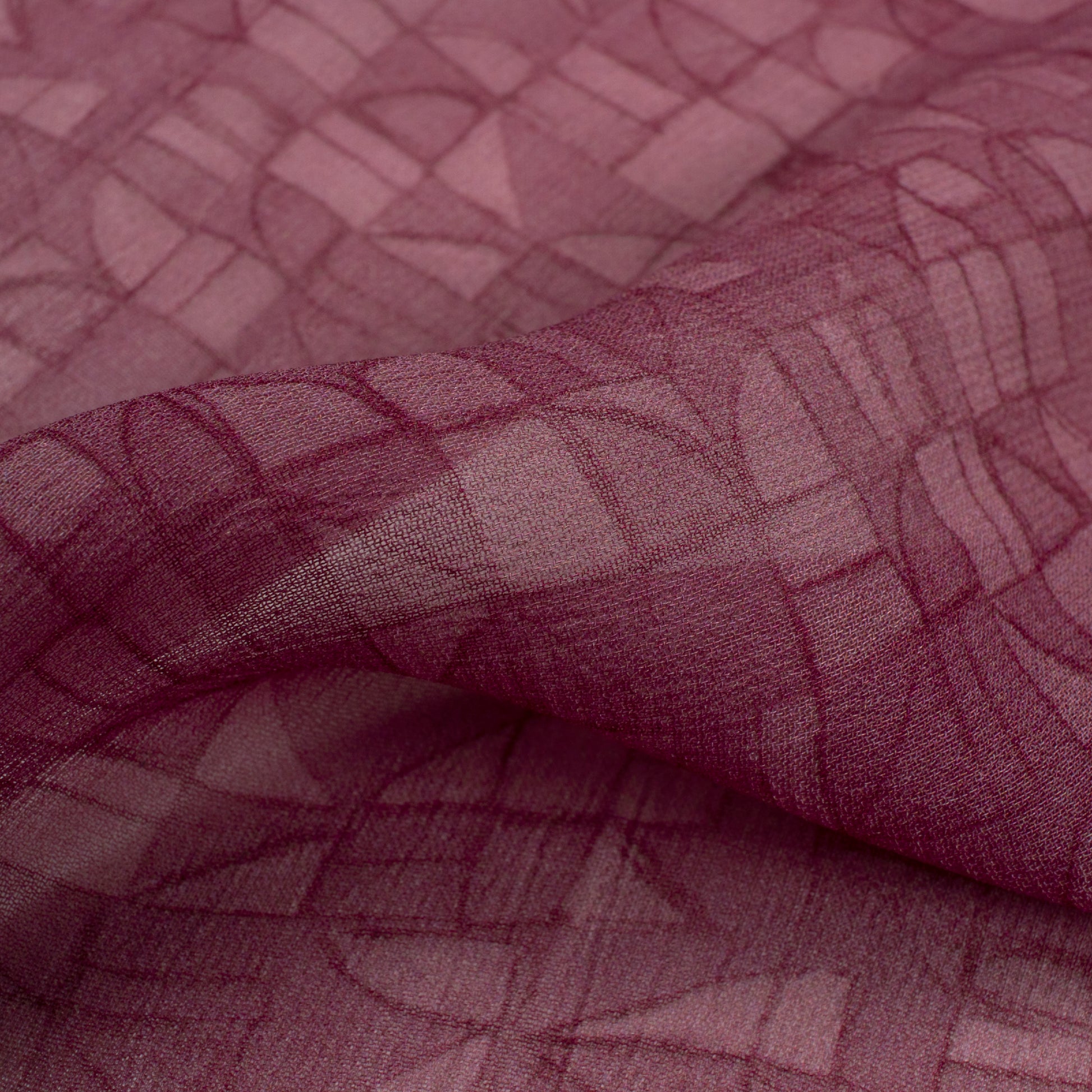 Soft Maroon Geometric Digital Print Viscose Georgette Fabric