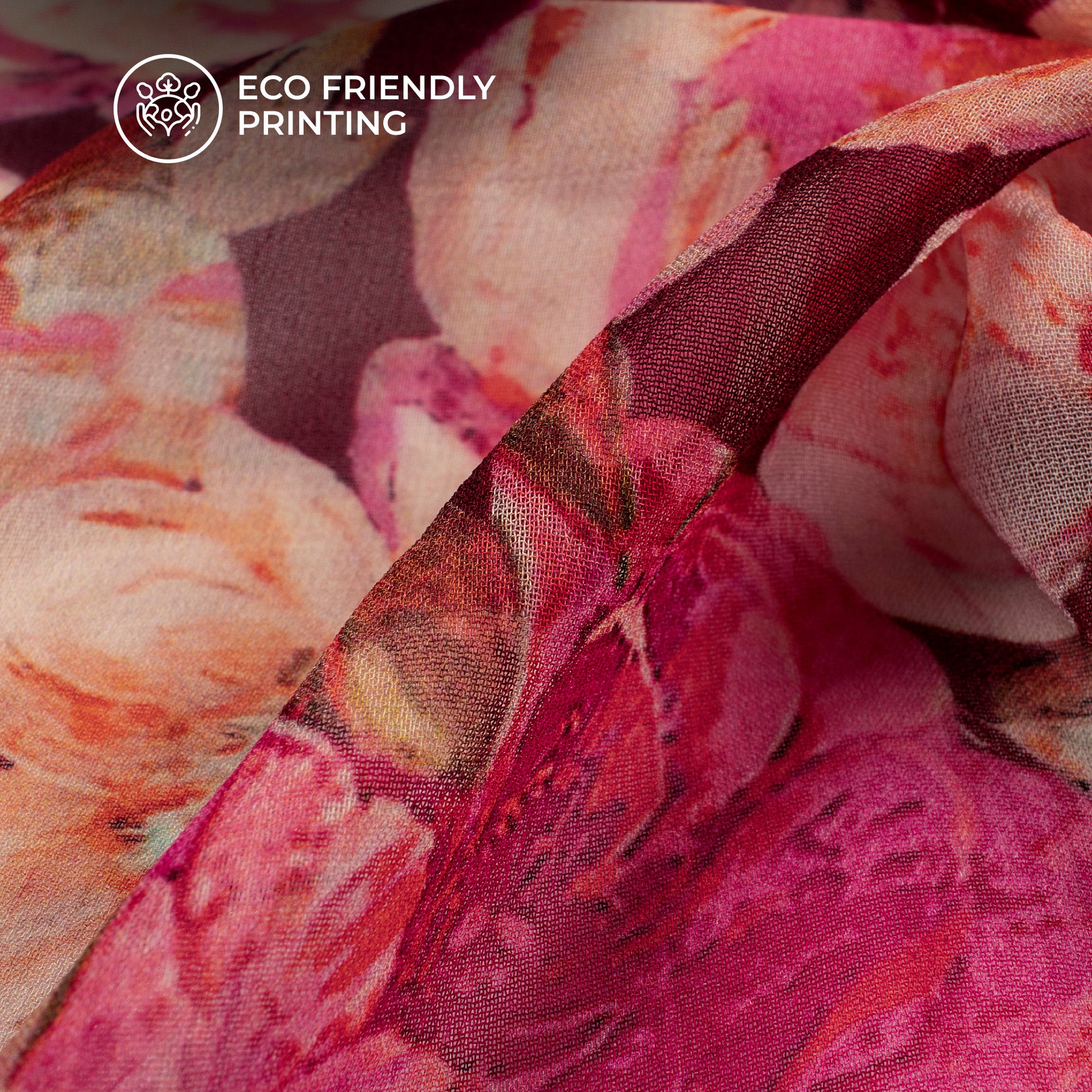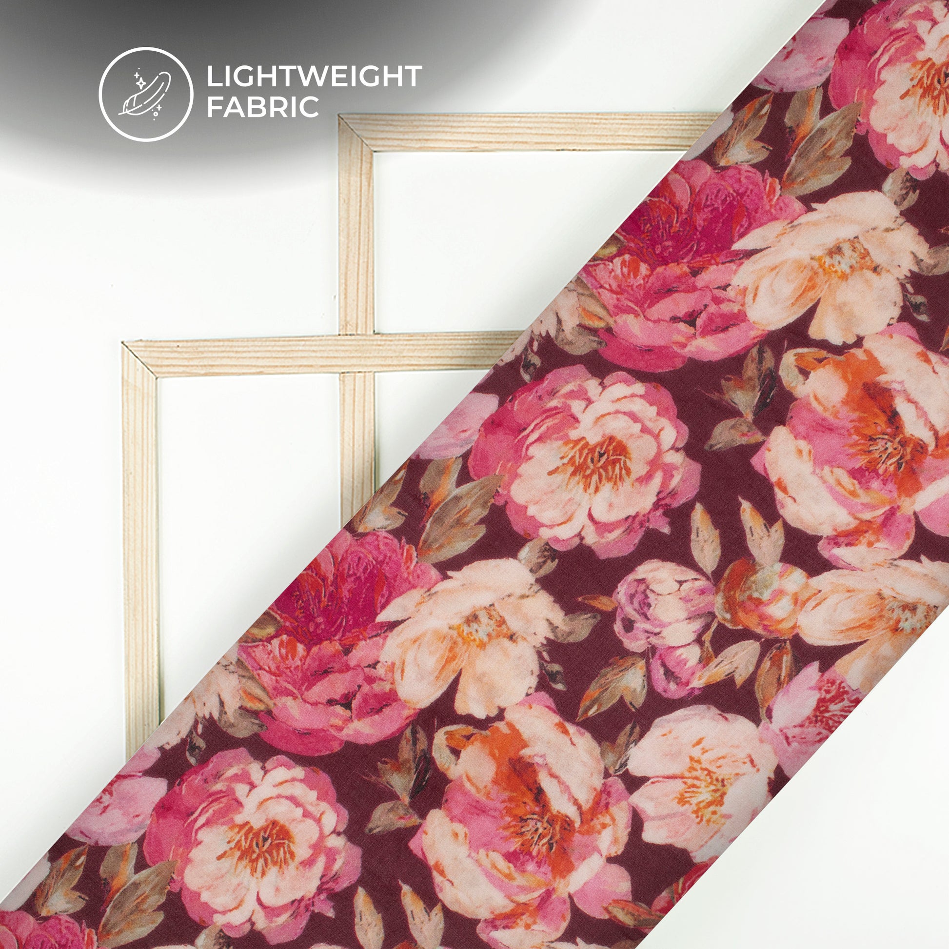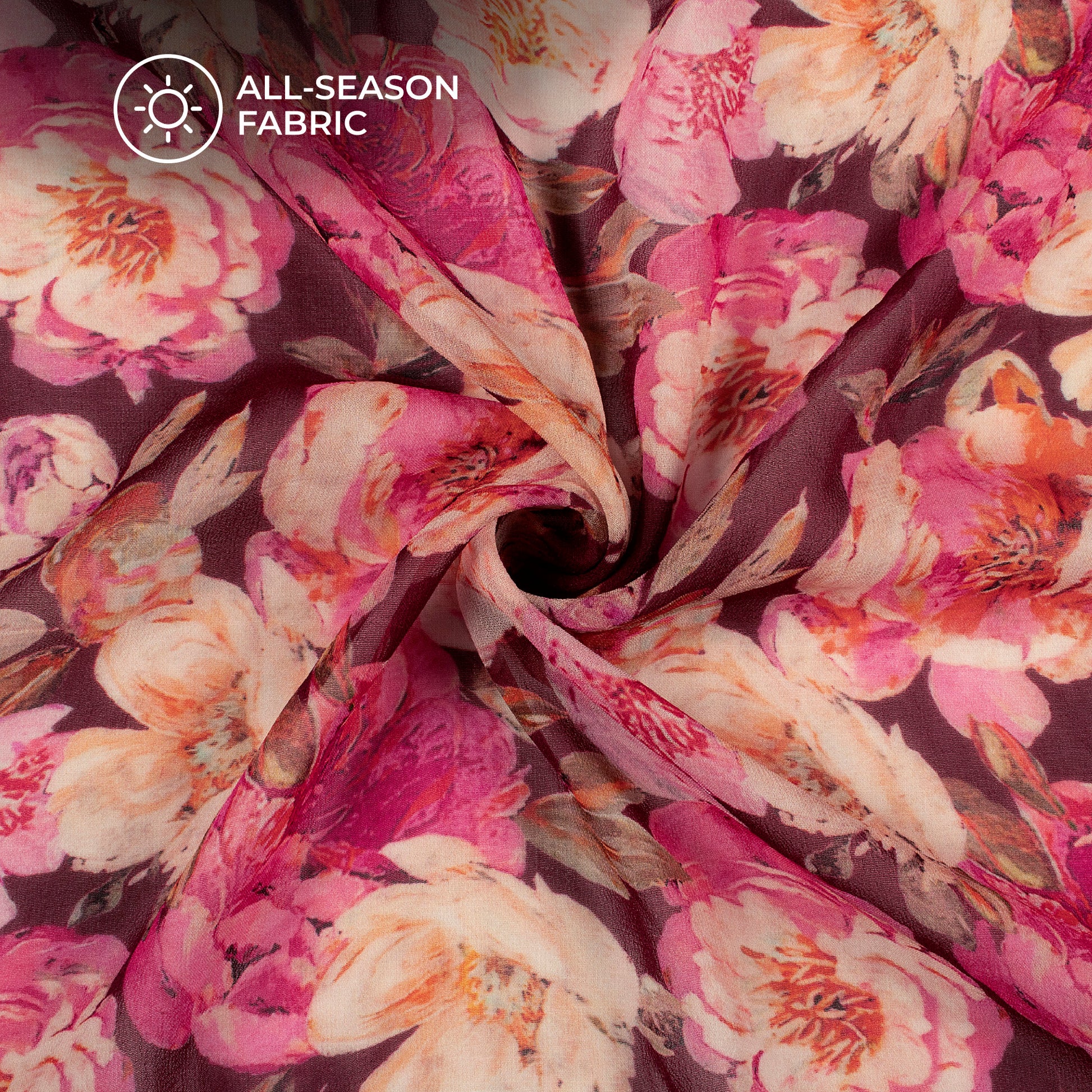 Taffy Pink And Brown Floral Digital Print Pure Georgette Fabric
