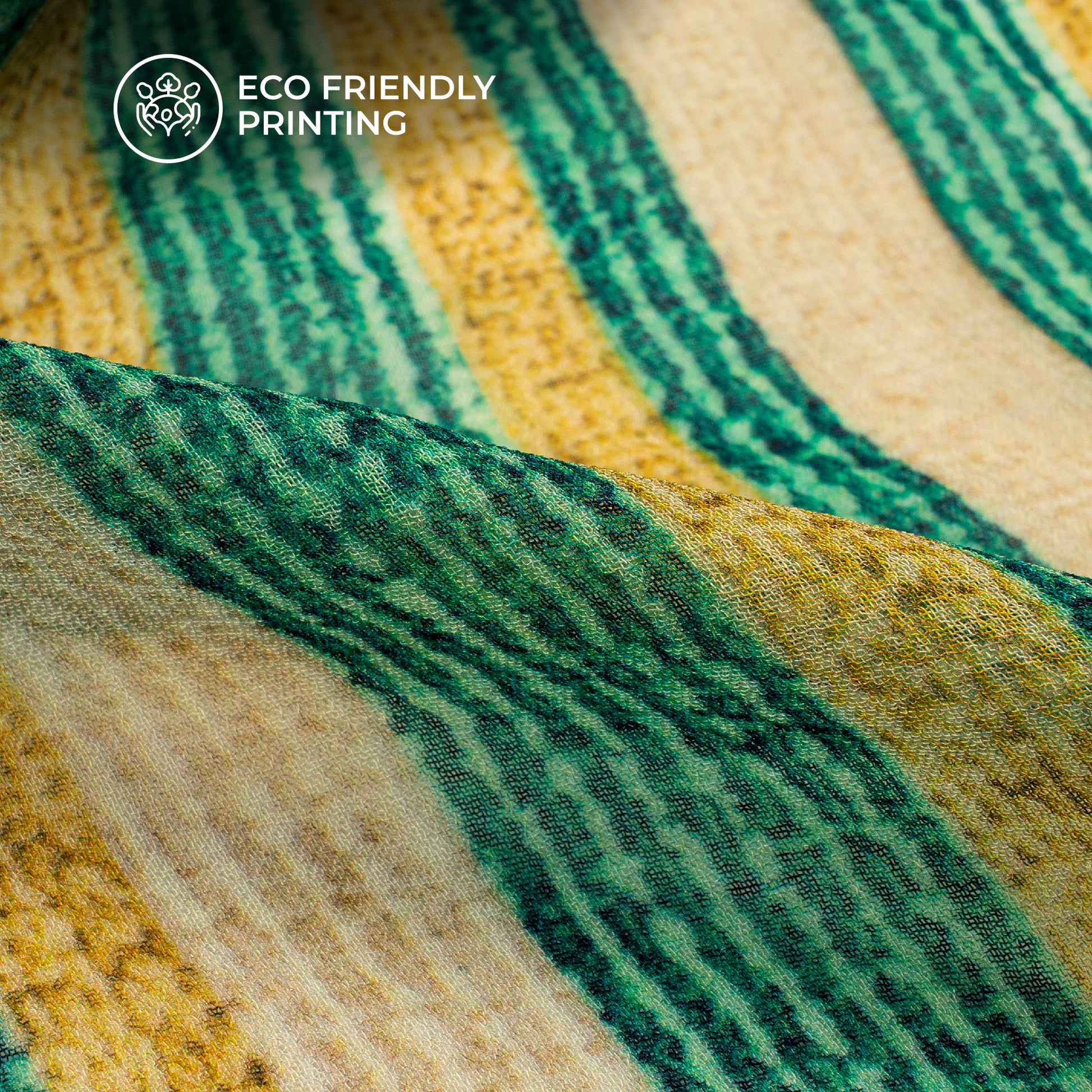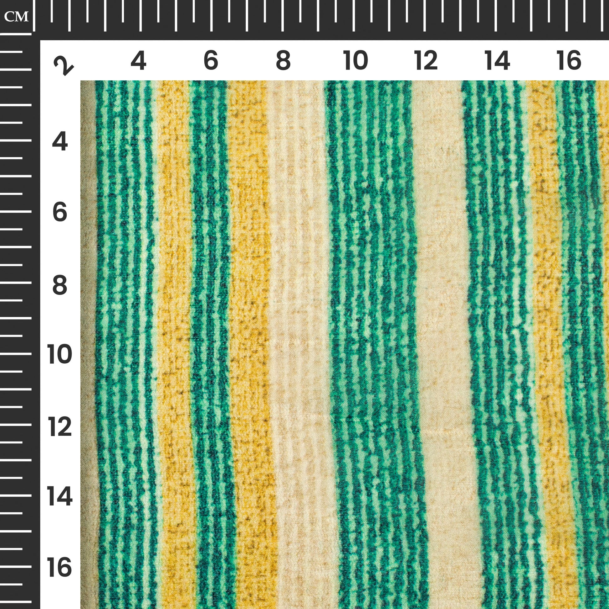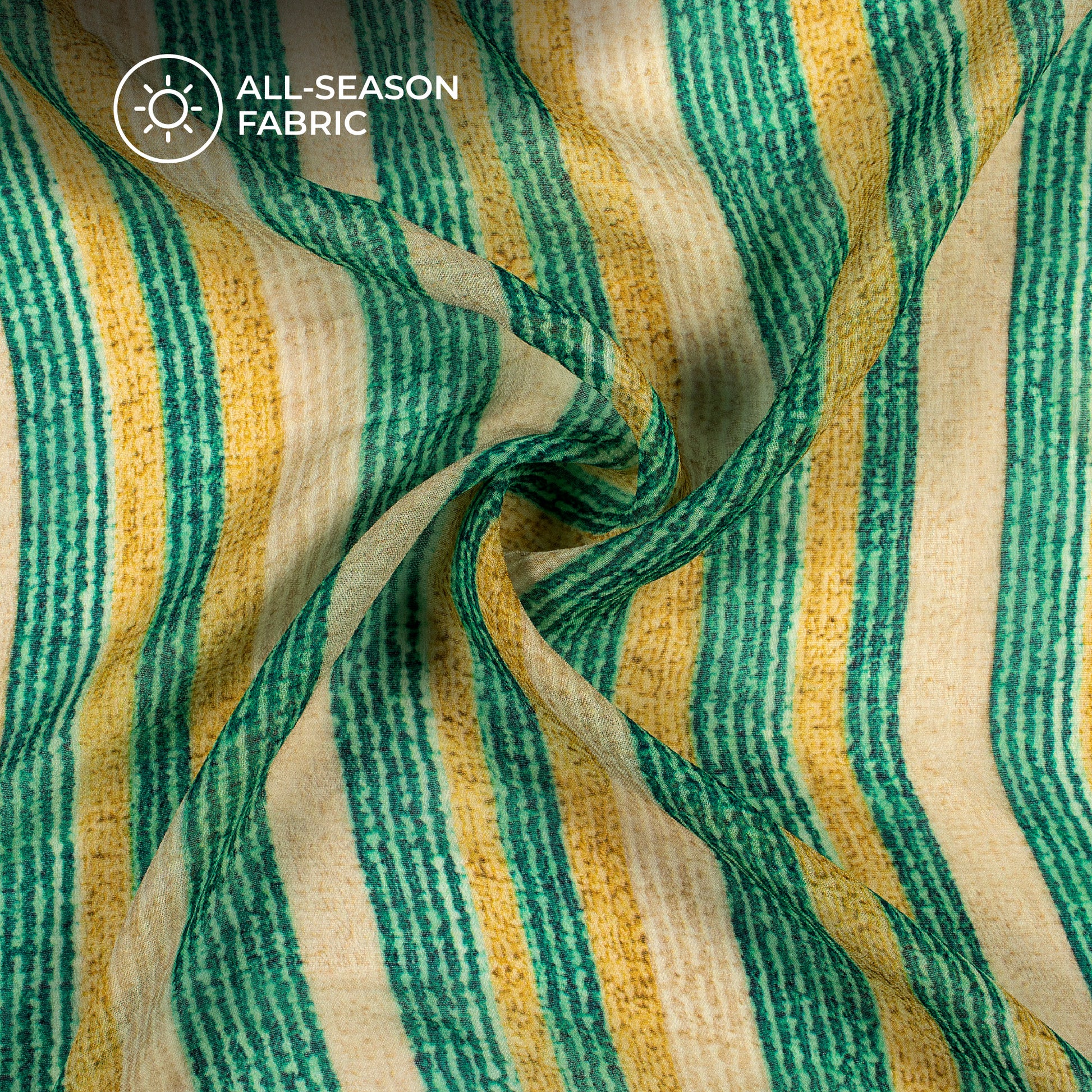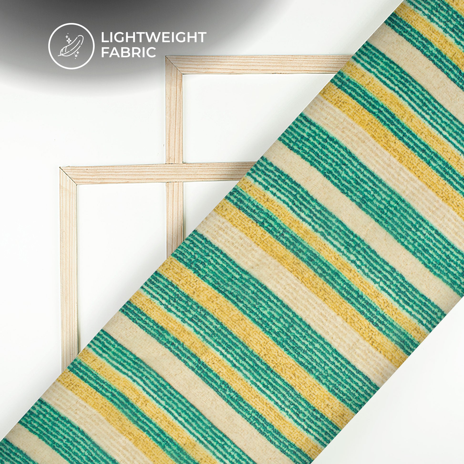 Teal Blue And Yellow Stripes Digital Print Pure Georgette Fabric