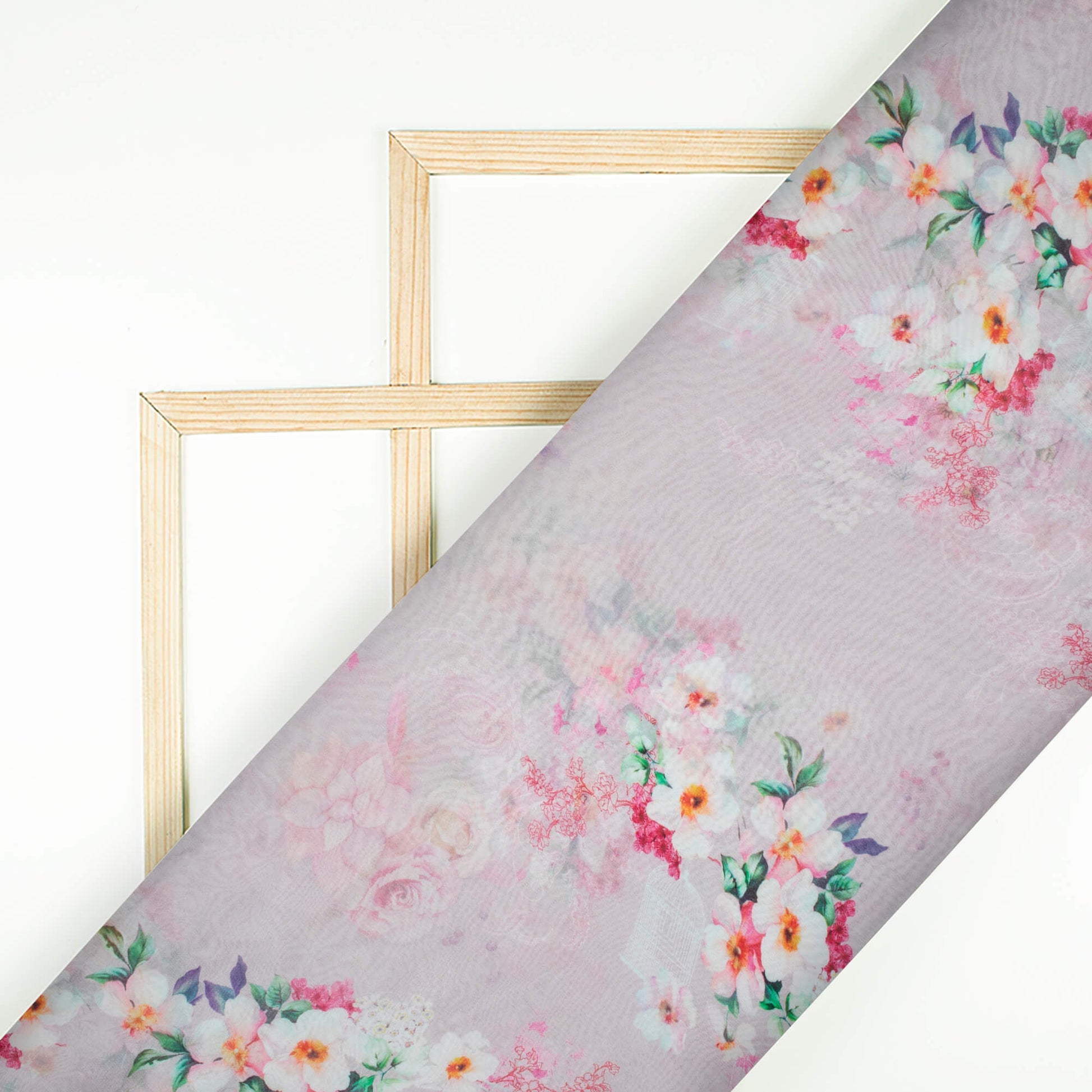 Thistle Purple And White Floral Pattern Digital Print Pure Georgette Fabric
