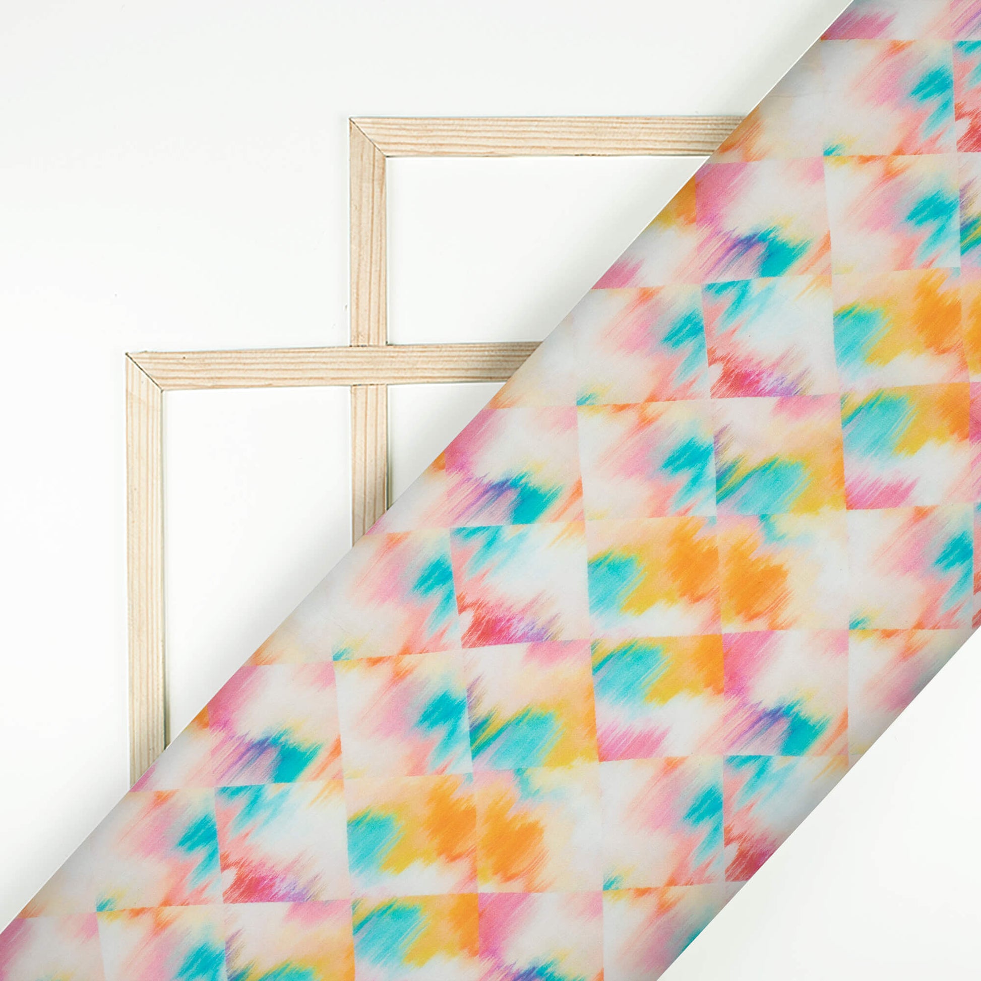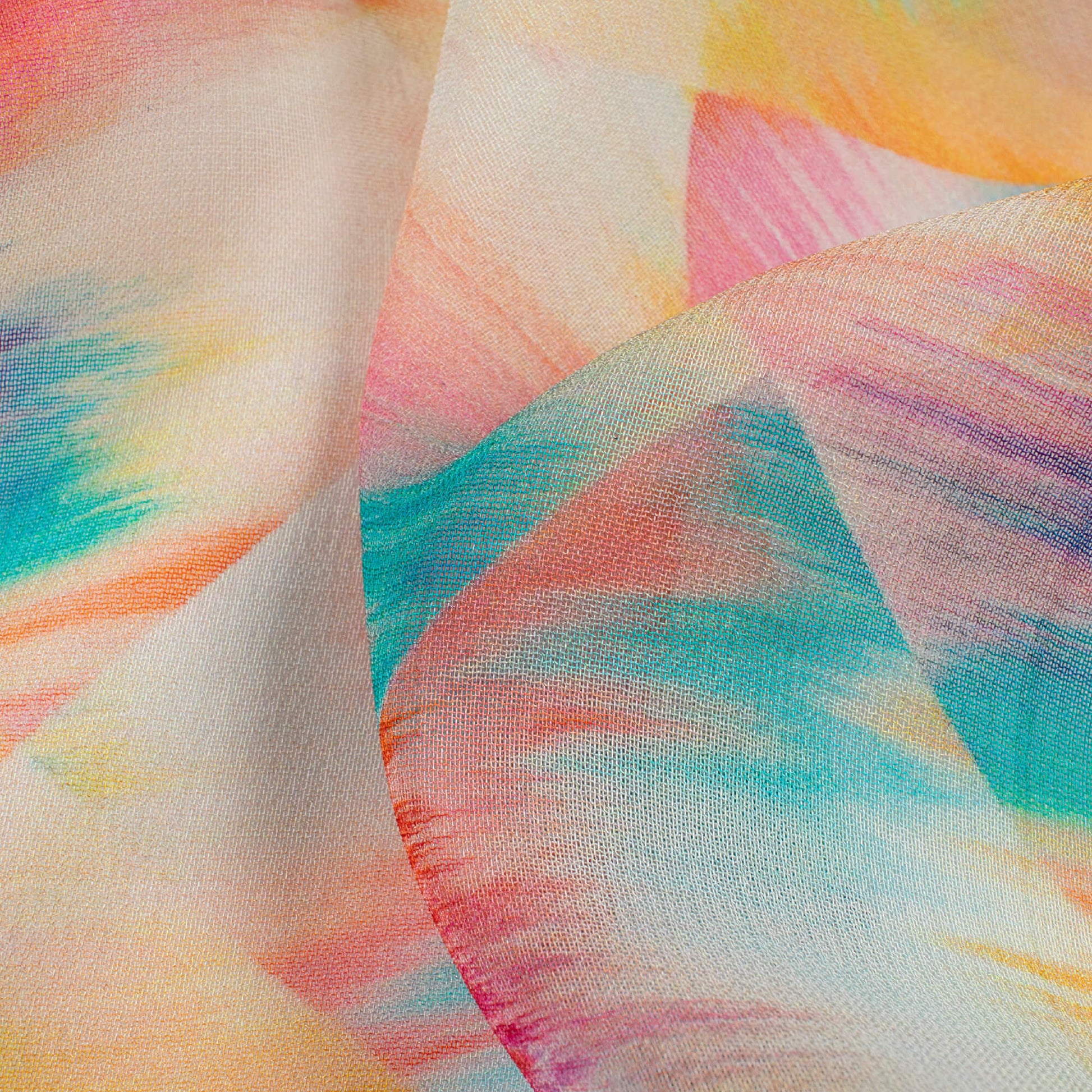 Turquoise And Pink Abstract Pattern Digital Print Pure Georgette Fabric