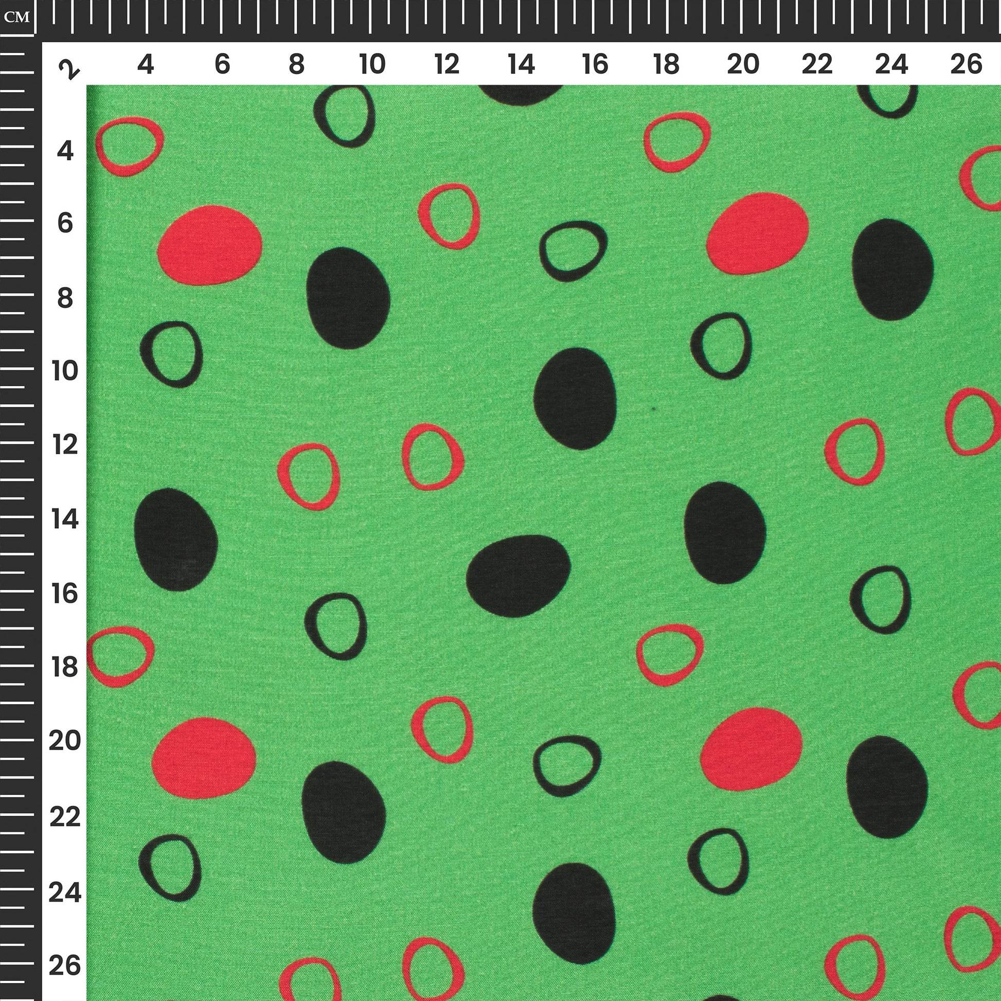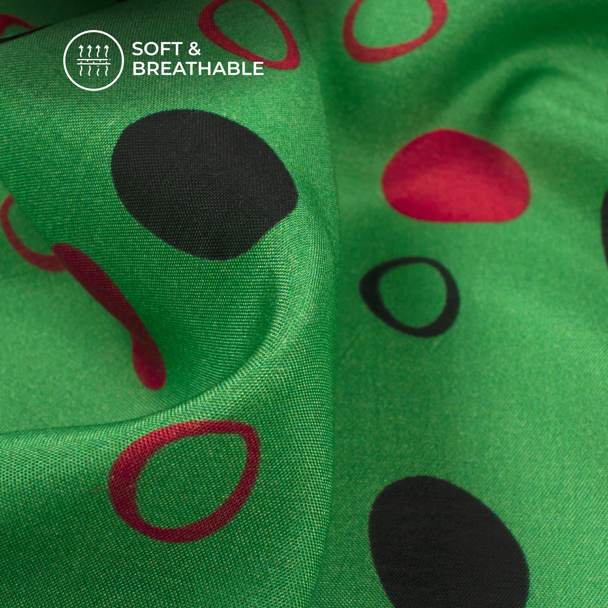 Fern Green,Black Polka Dots Digital Print Viscose Muslin Fabric