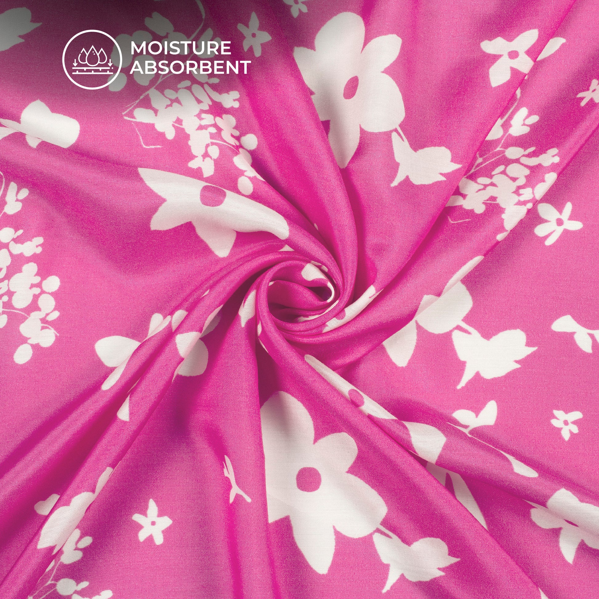 Fuscia Pink Floral Digital Print Viscose Muslin Fabric