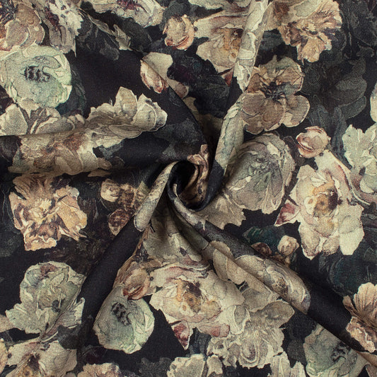 Oat Beige And Black Floral Digital Print Viscose Rayon Fabric(Width 58 Inches) Oat Beige And Black Floral Digital Print Viscose Rayon Fabric(Width 58 Inches)