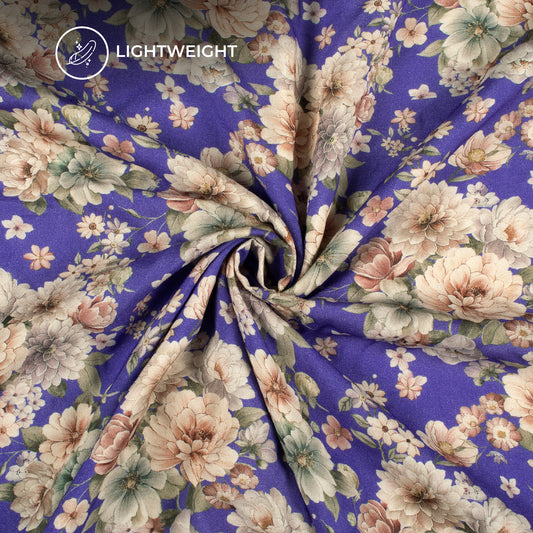True Blue Floral Digital Print Viscose Rayon Fabric(Width 58 Inches) True Blue Floral Digital Print Viscose Rayon Fabric(Width 58 Inches)