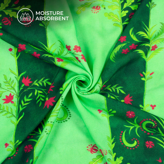 White And Green Floral Pattern Digital Print Viscose Rayon Fabric (Width 58 Inches) White And Green Floral Pattern Digital Print Viscose Rayon Fabric (Width 58 Inches)