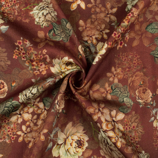 Caramel Brown And Peach Floral Digital Print Viscose Rayon Fabric(Width 58 Inches) Caramel Brown And Peach Floral Digital Print Viscose Rayon Fabric(Width 58 Inches)