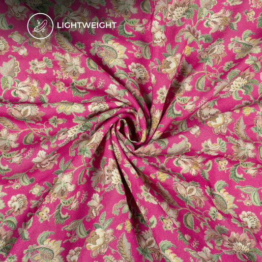 -3% offFuscia Pink Floral Digital Print Viscose Rayon Fabric(Width 58 Inches) Fuscia Pink Floral Digital Print Viscose Rayon Fabric(Width 58 Inches)
