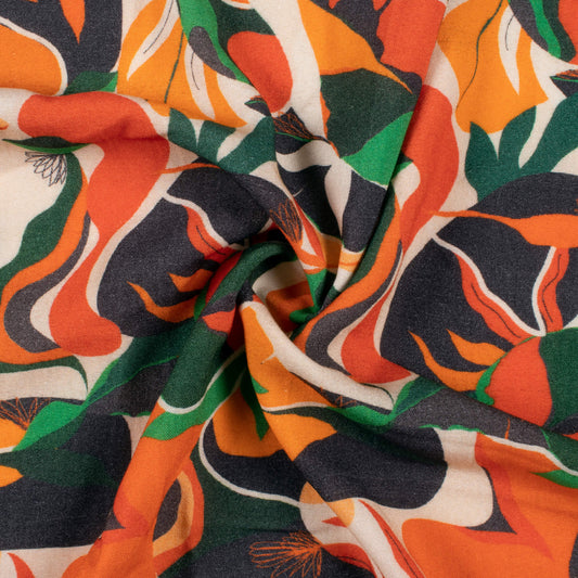 Fire Orange And Black Floral Digital Print Viscose Rayon Fabric(Width 58 Inches) Fire Orange And Black Floral Digital Print Viscose Rayon Fabric(Width 58 Inches)