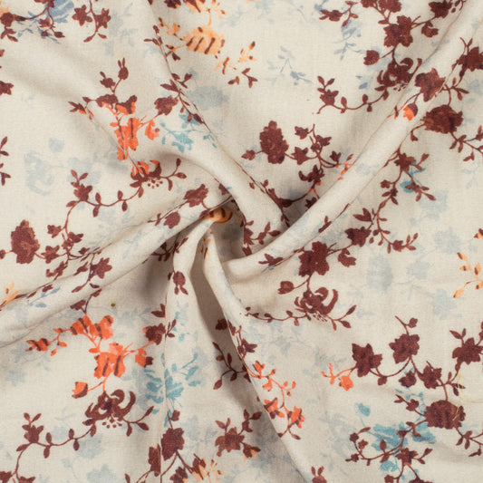 Beige And Dark Brown Floral Pattern Digital Print Viscose Rayon Fabric (Width 58 Inches) Beige And Dark Brown Floral Pattern Digital Print Viscose Rayon Fabric (Width 58 Inches)