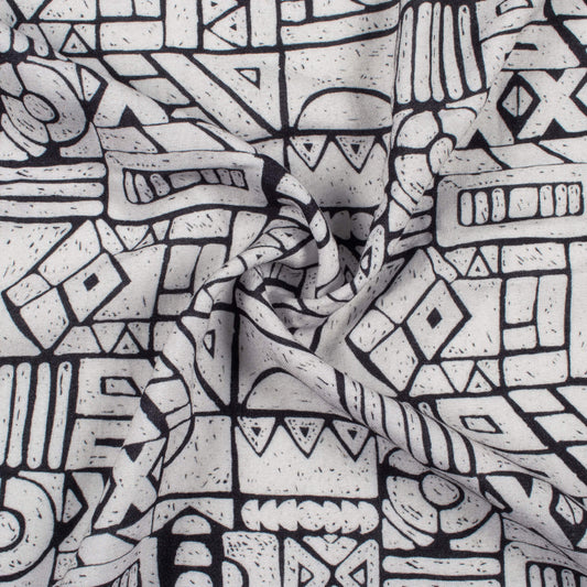 White And Black Geometric Pattern Digital Print Viscose Rayon Fabric (Width 58 Inches) White And Black Geometric Pattern Digital Print Viscose Rayon Fabric (Width 58 Inches)