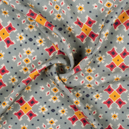 Pewter Grey And Sunrise Orange Patolaa Pattern Digital Print Viscose Rayon Fabric (Width 58 Inches) Pewter Grey And Sunrise Orange Patolaa Pattern Digital Print Viscose Rayon Fabric (Width 58 Inches)