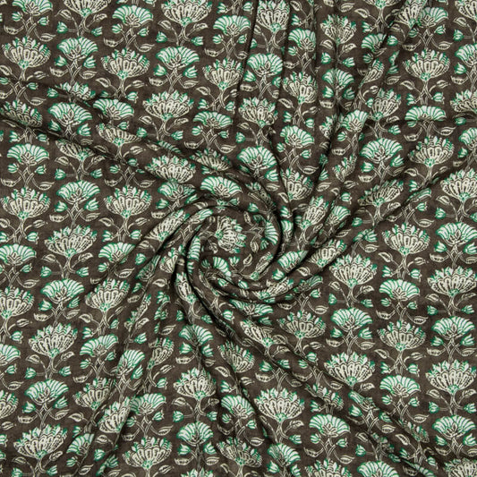 Dark Brown And Green Kalamkrii Pattern Digital Print Viscose Rayon Fabric (Width 58 Inches) Dark Brown And Green Kalamkrii Pattern Digital Print Viscose Rayon Fabric (Width 58 Inches)
