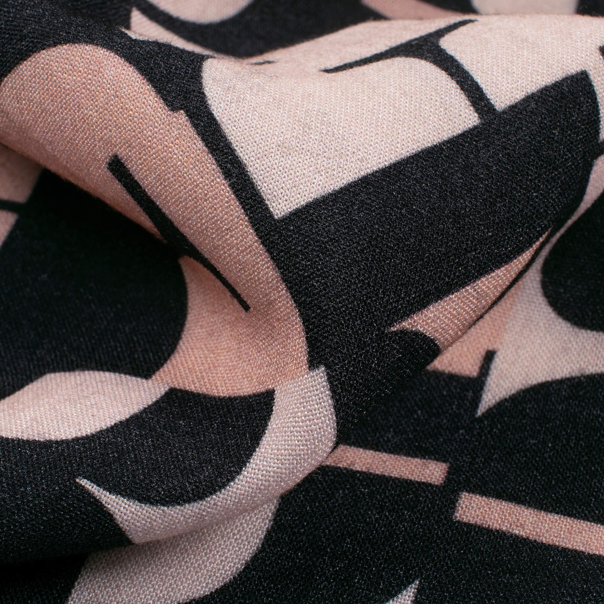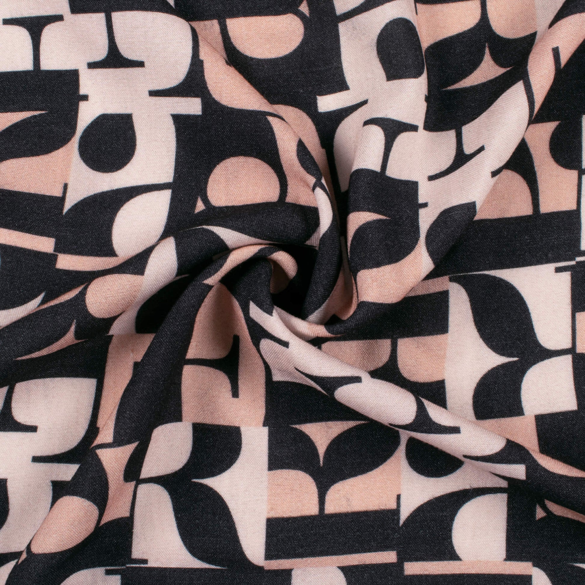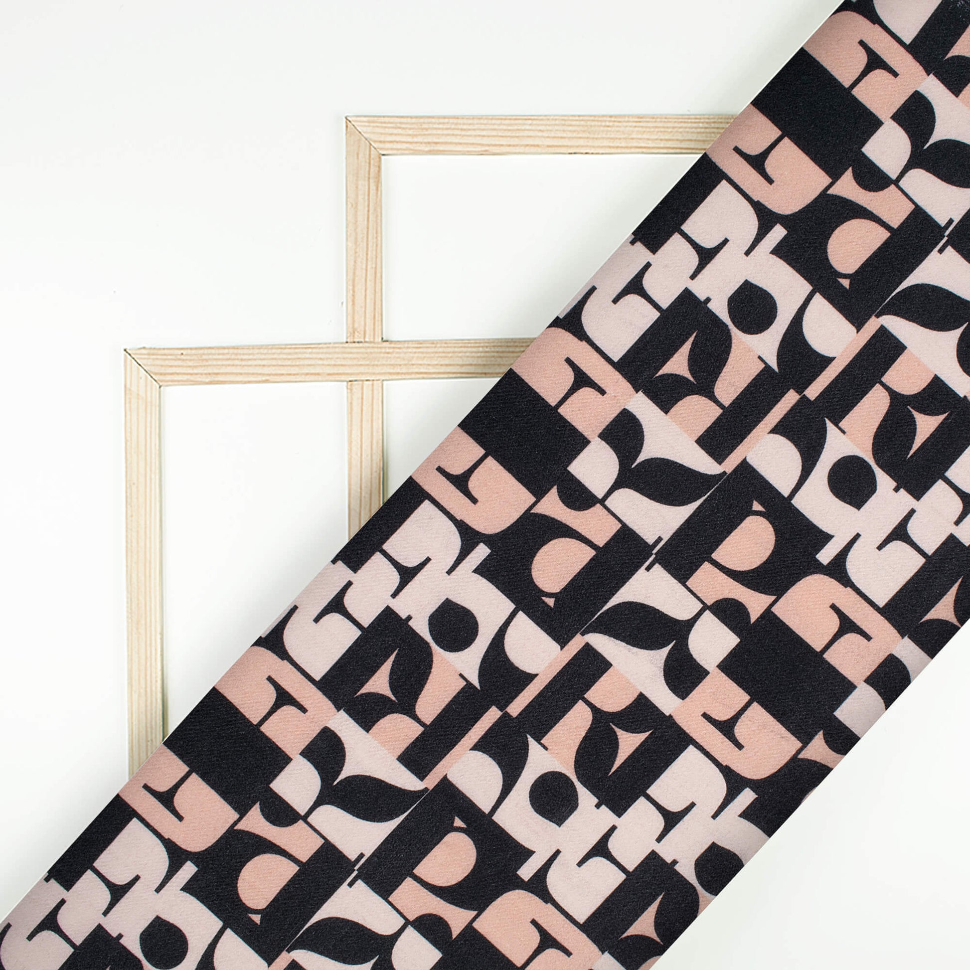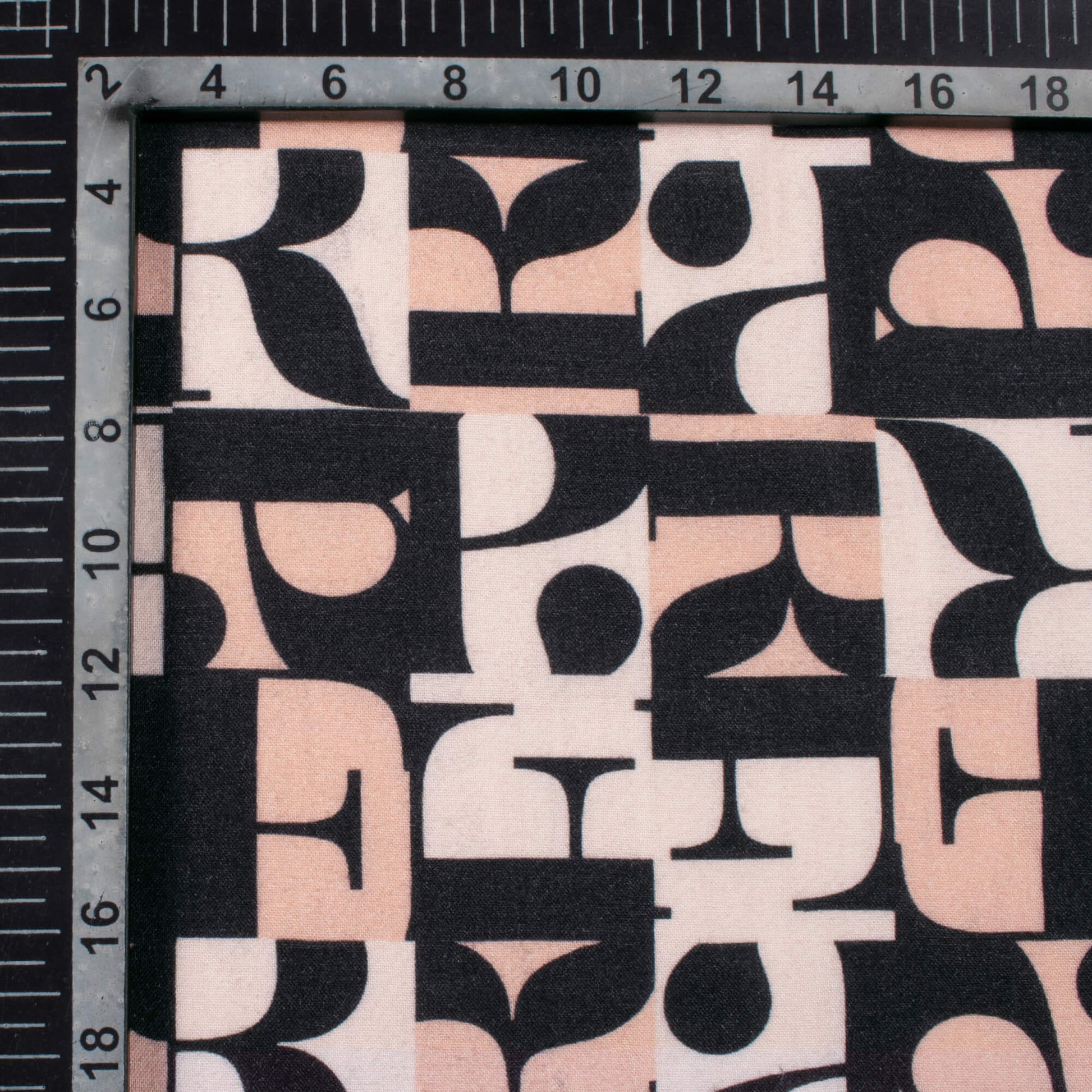 Black And Peach Quirky Pattern Digital Print Viscose Rayon Fabric (Width 58 Inches)