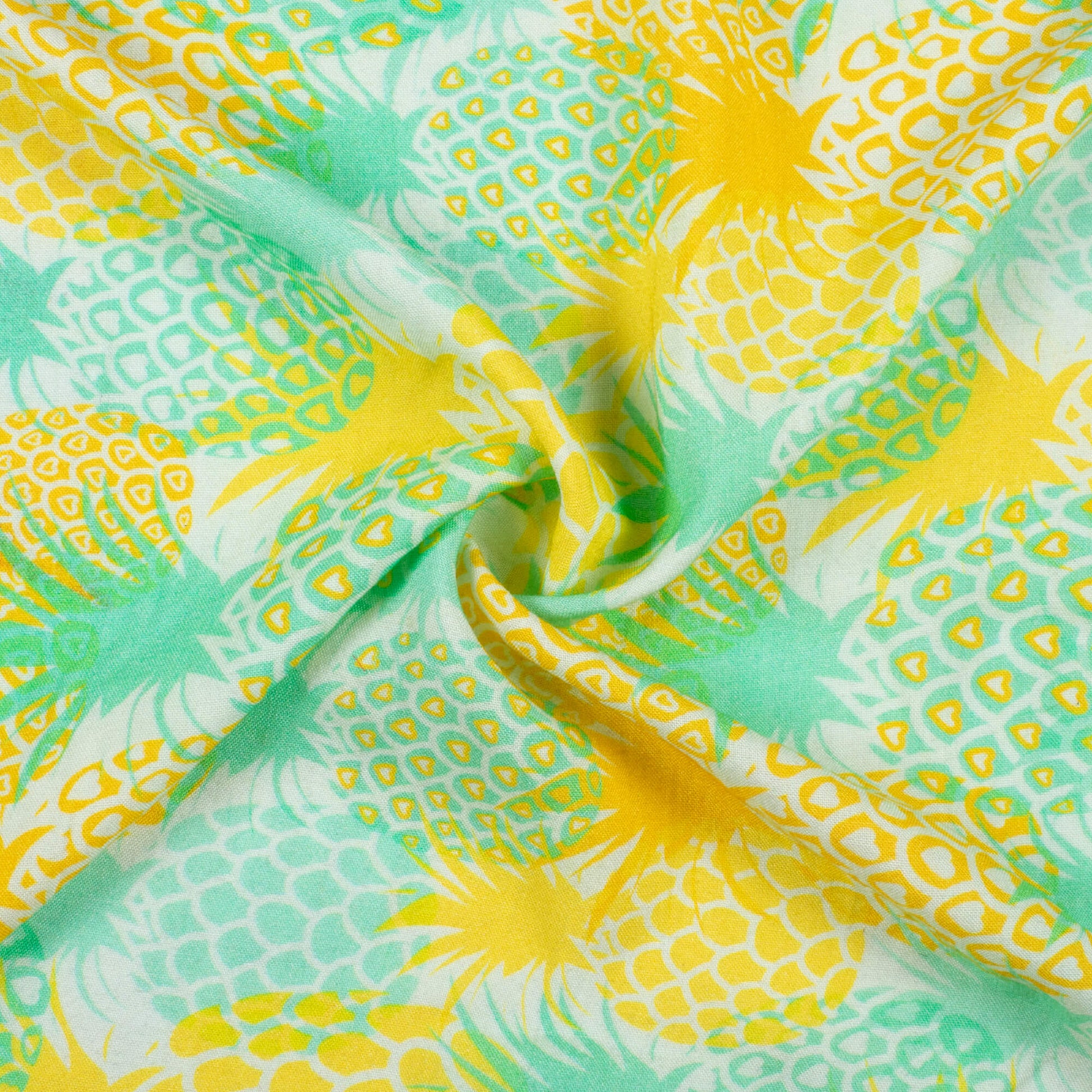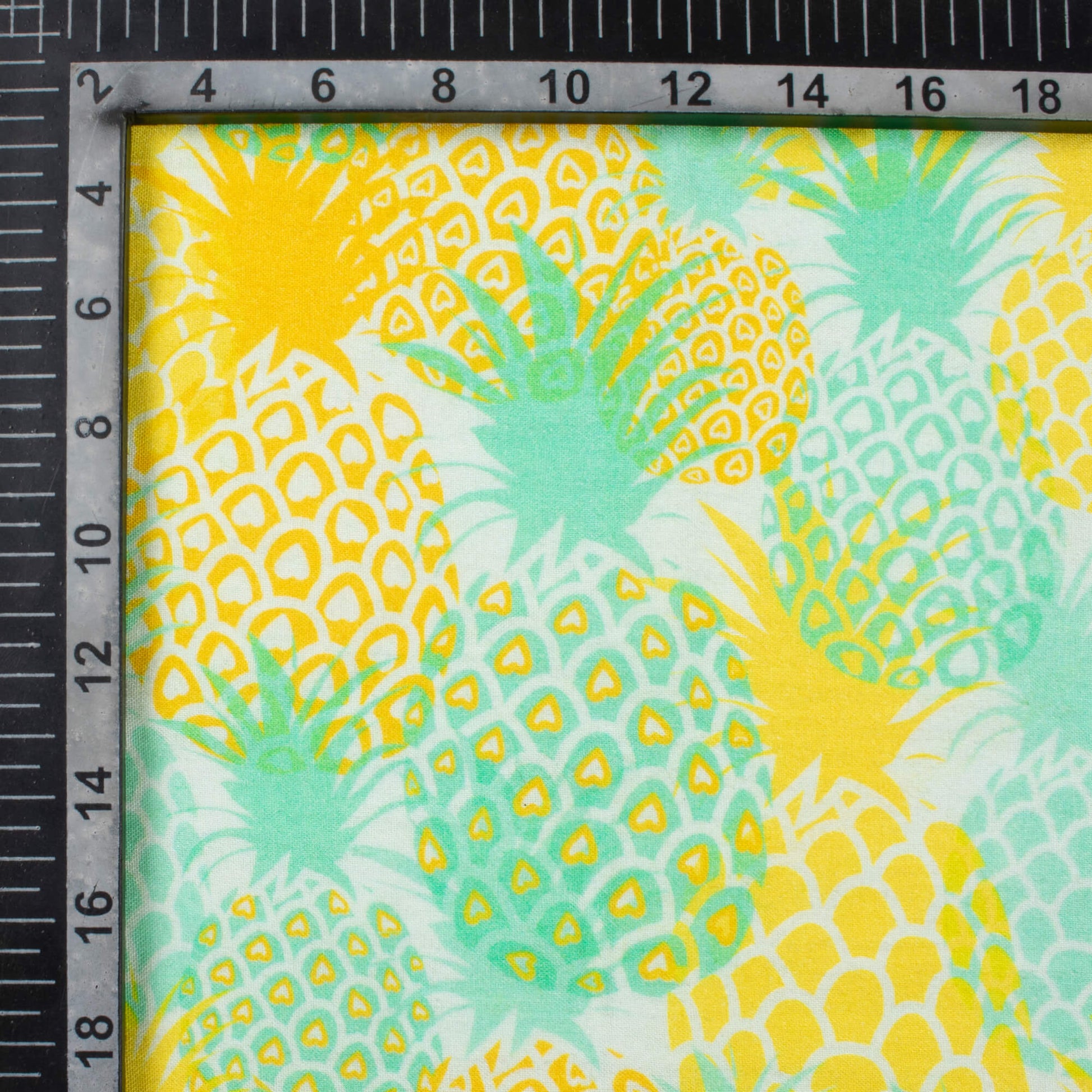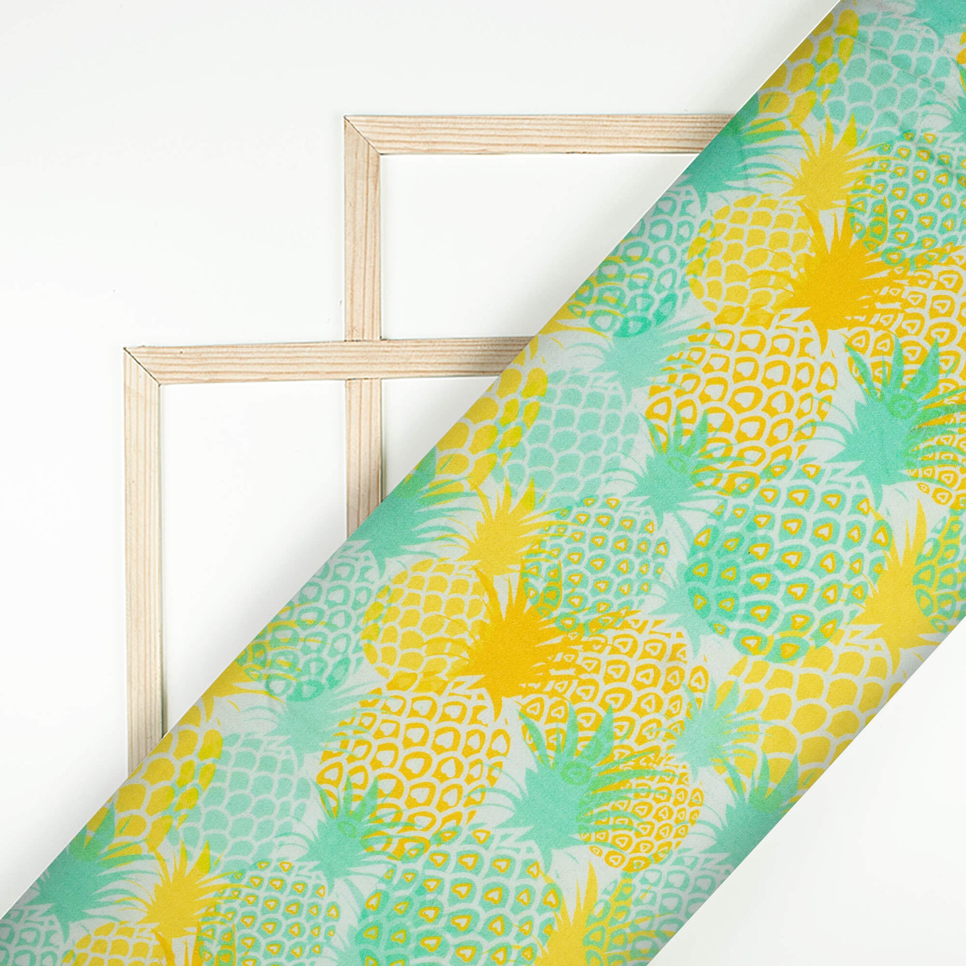 Bumblebee Yellow And Persian Green Quirky Pattern Digital Print Viscose Rayon Fabric (Width 58 Inches)