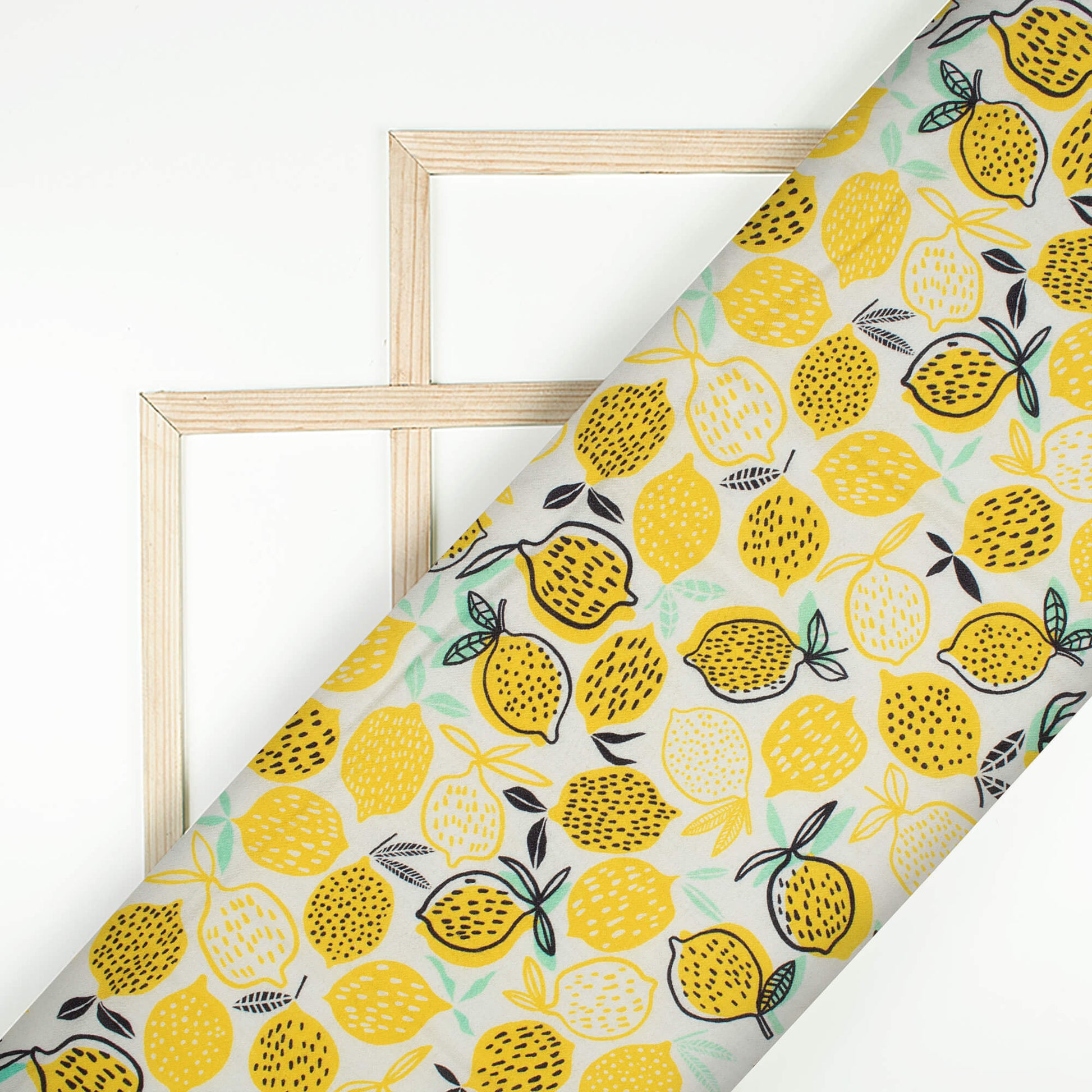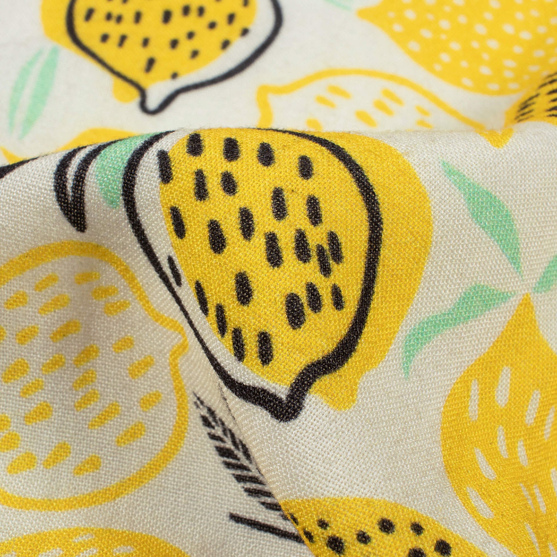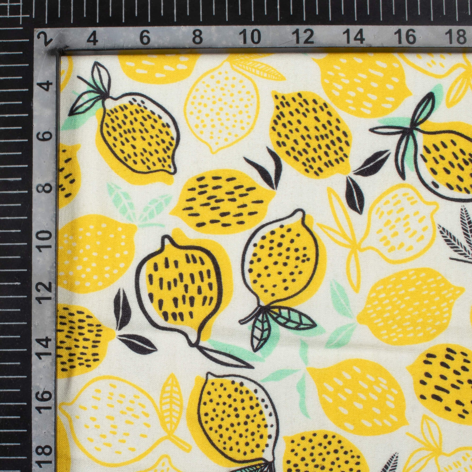 Lemon Yellow And Black Quirky Pattern Digital Print Viscose Rayon Fabric (Width 58 Inches)