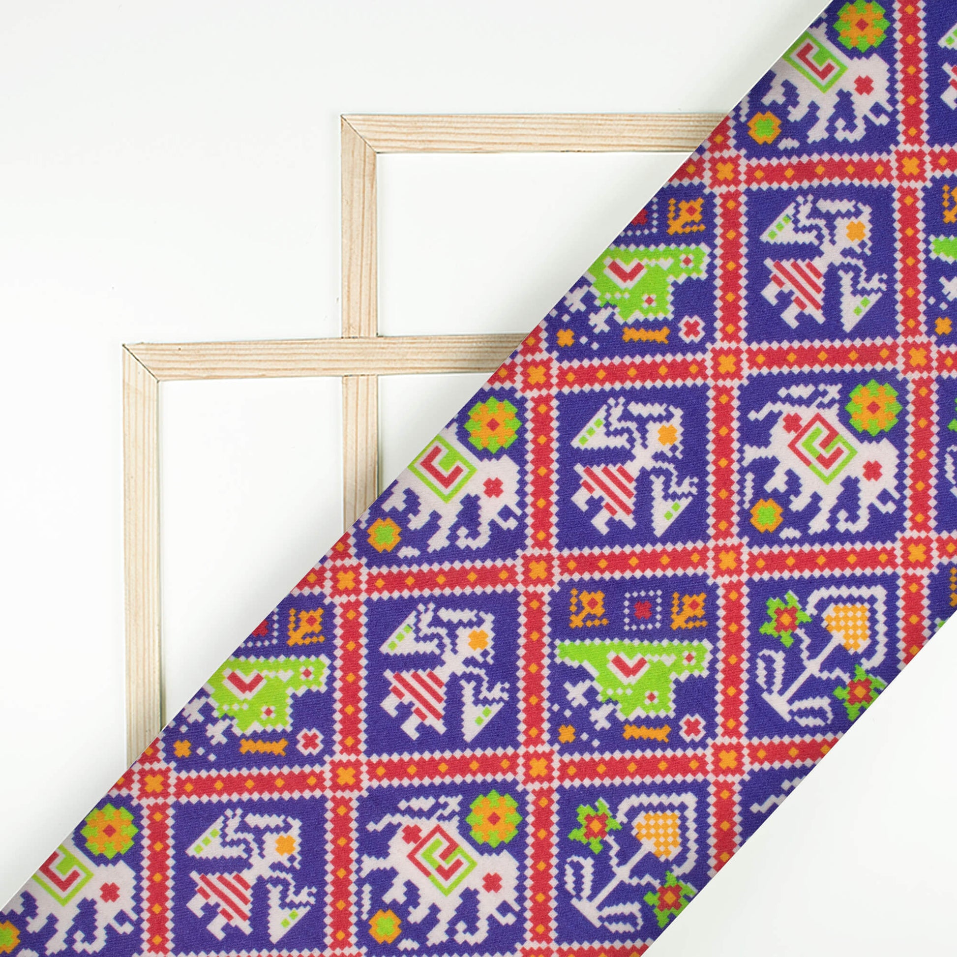 Berry Blue And Green Patolaa Pattern Digital Print Viscose Rayon Fabric (Width 58 Inches)