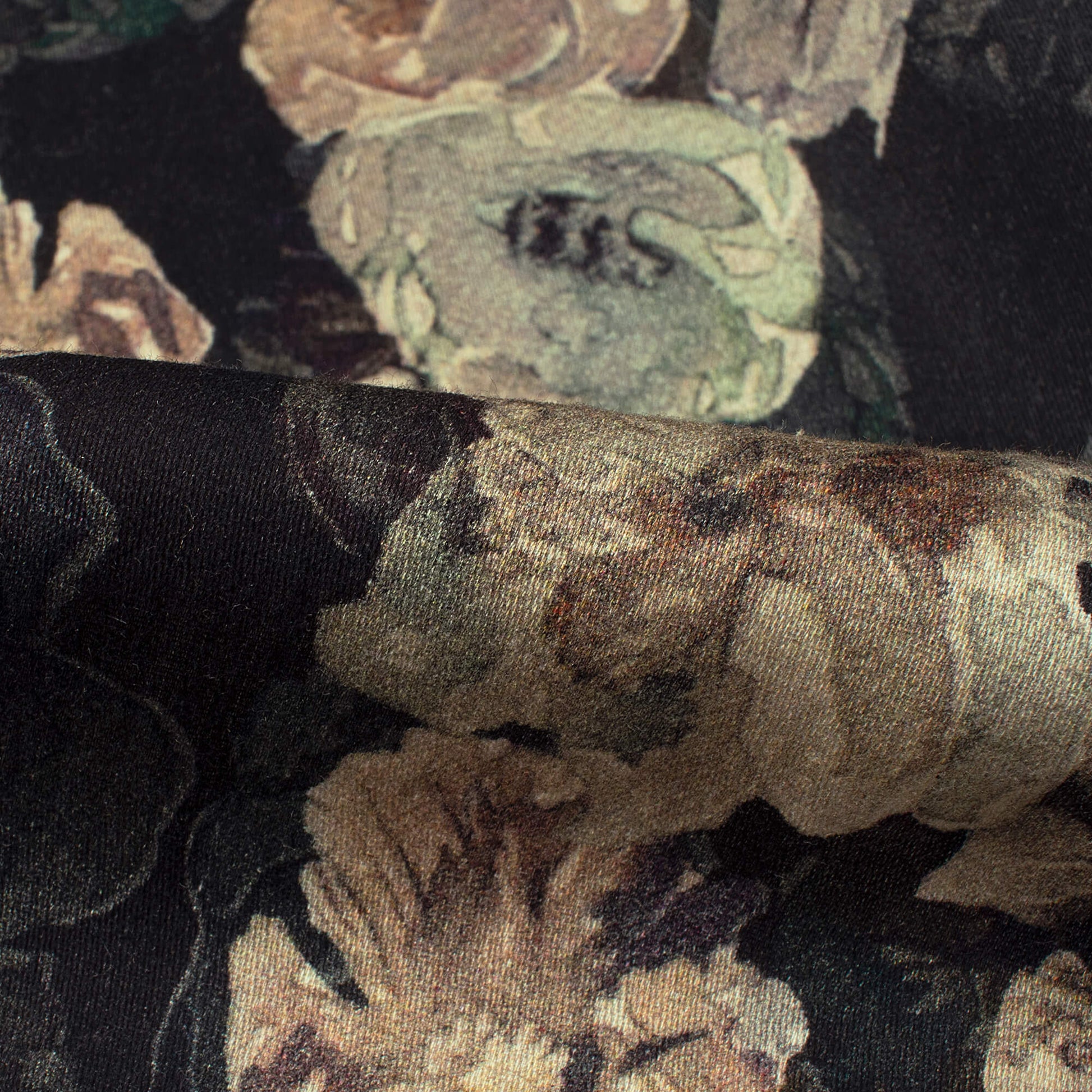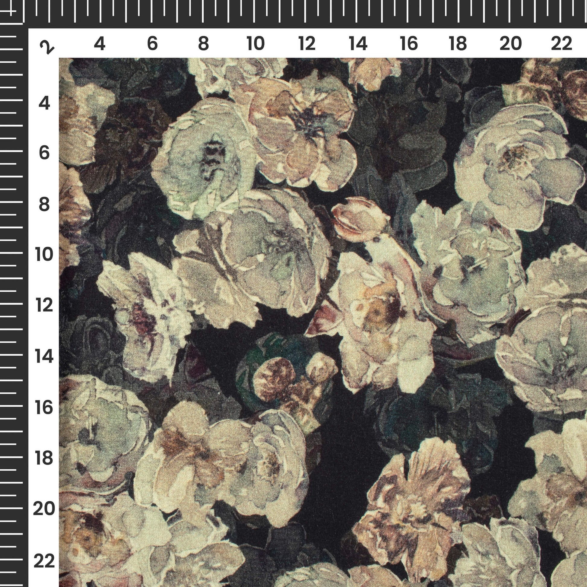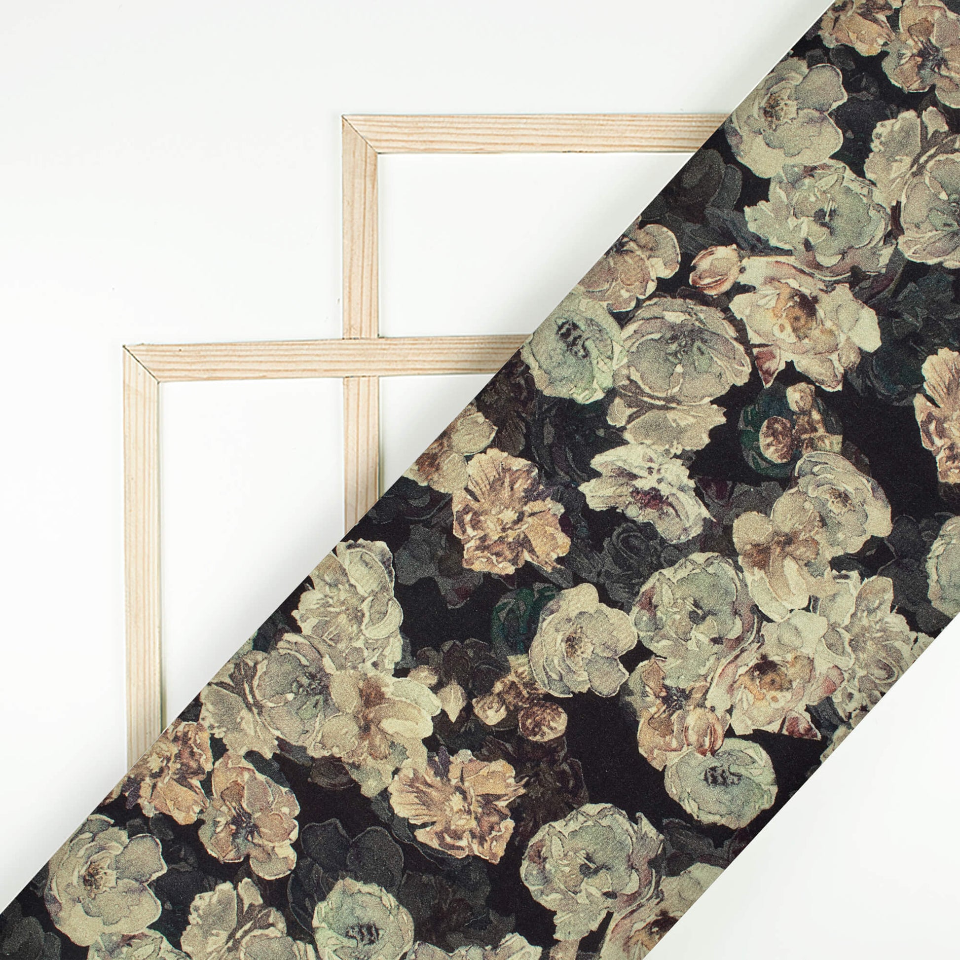 Oat Beige And Black Floral Digital Print Viscose Rayon Fabric(Width 58 Inches)