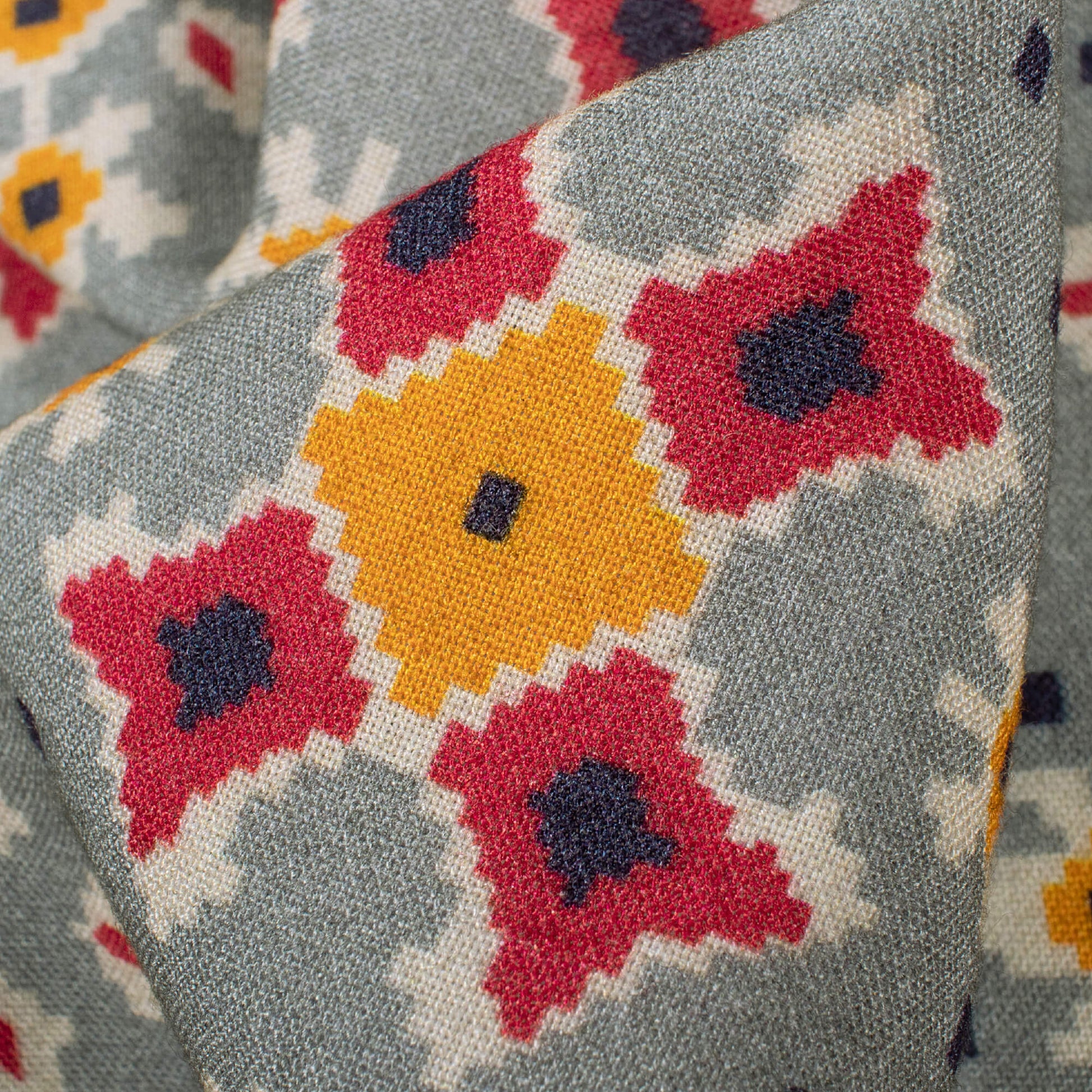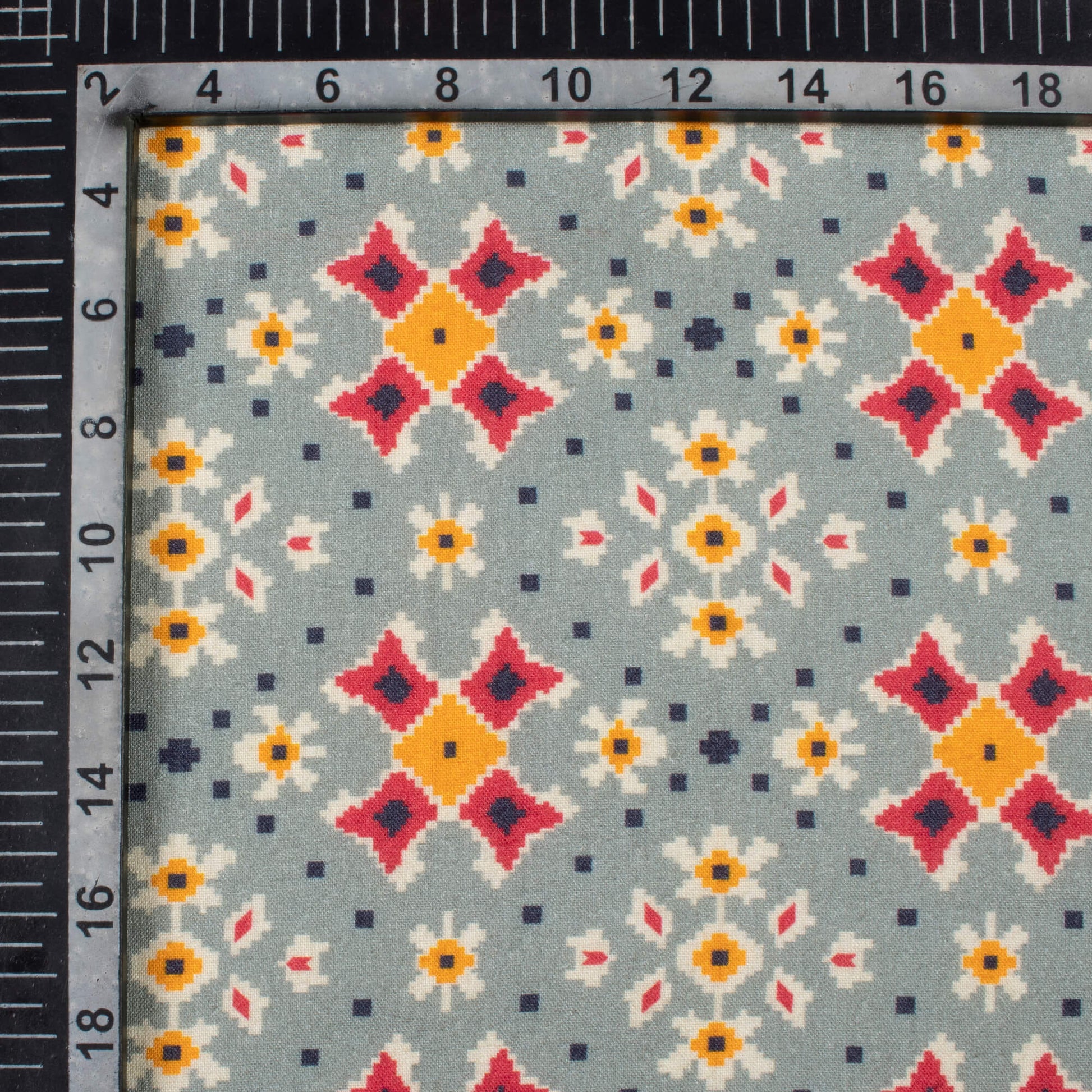 Pewter Grey And Sunrise Orange Patolaa Pattern Digital Print Viscose Rayon Fabric (Width 58 Inches)