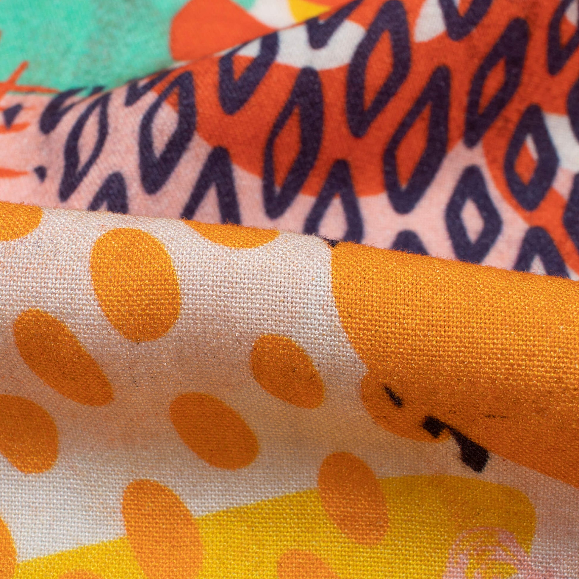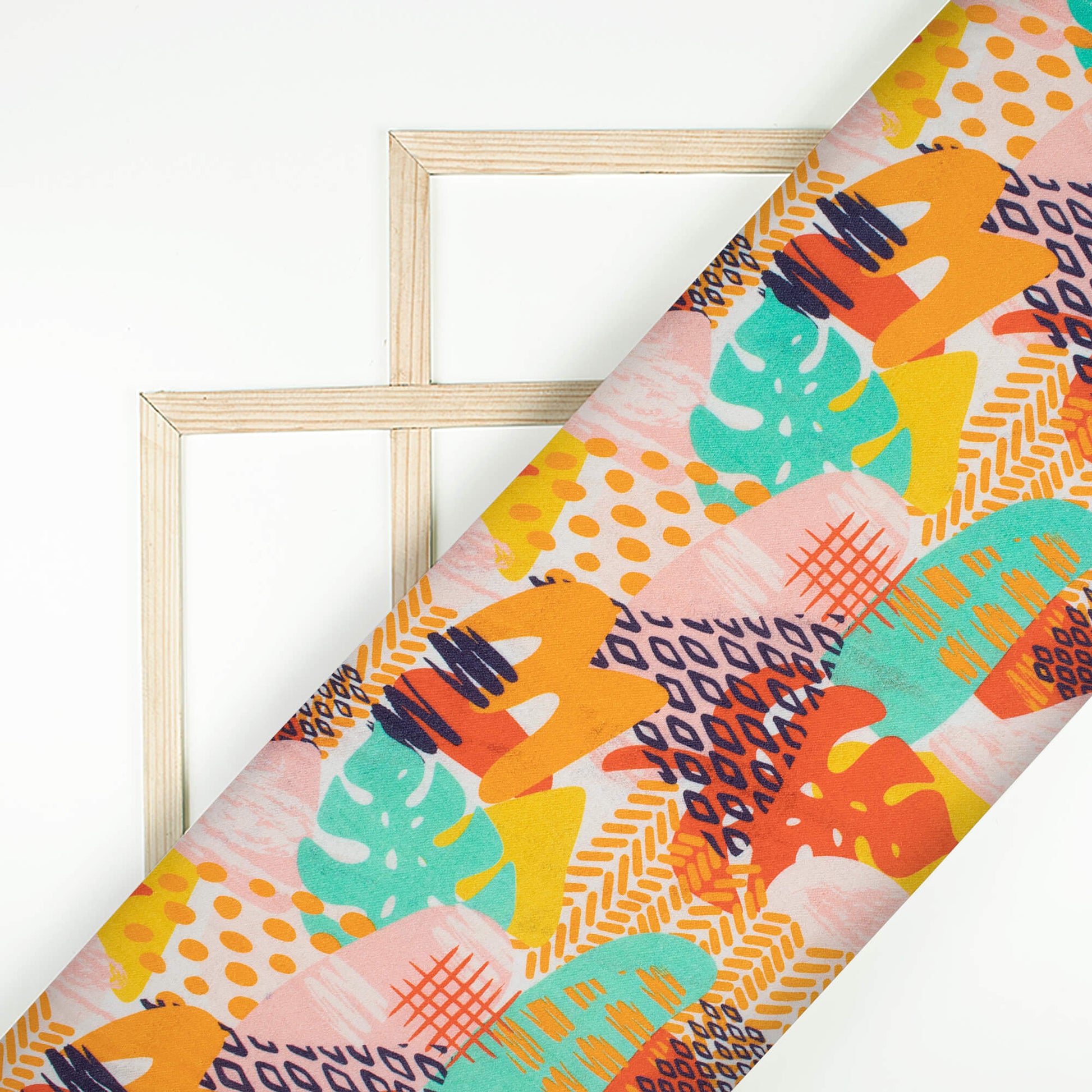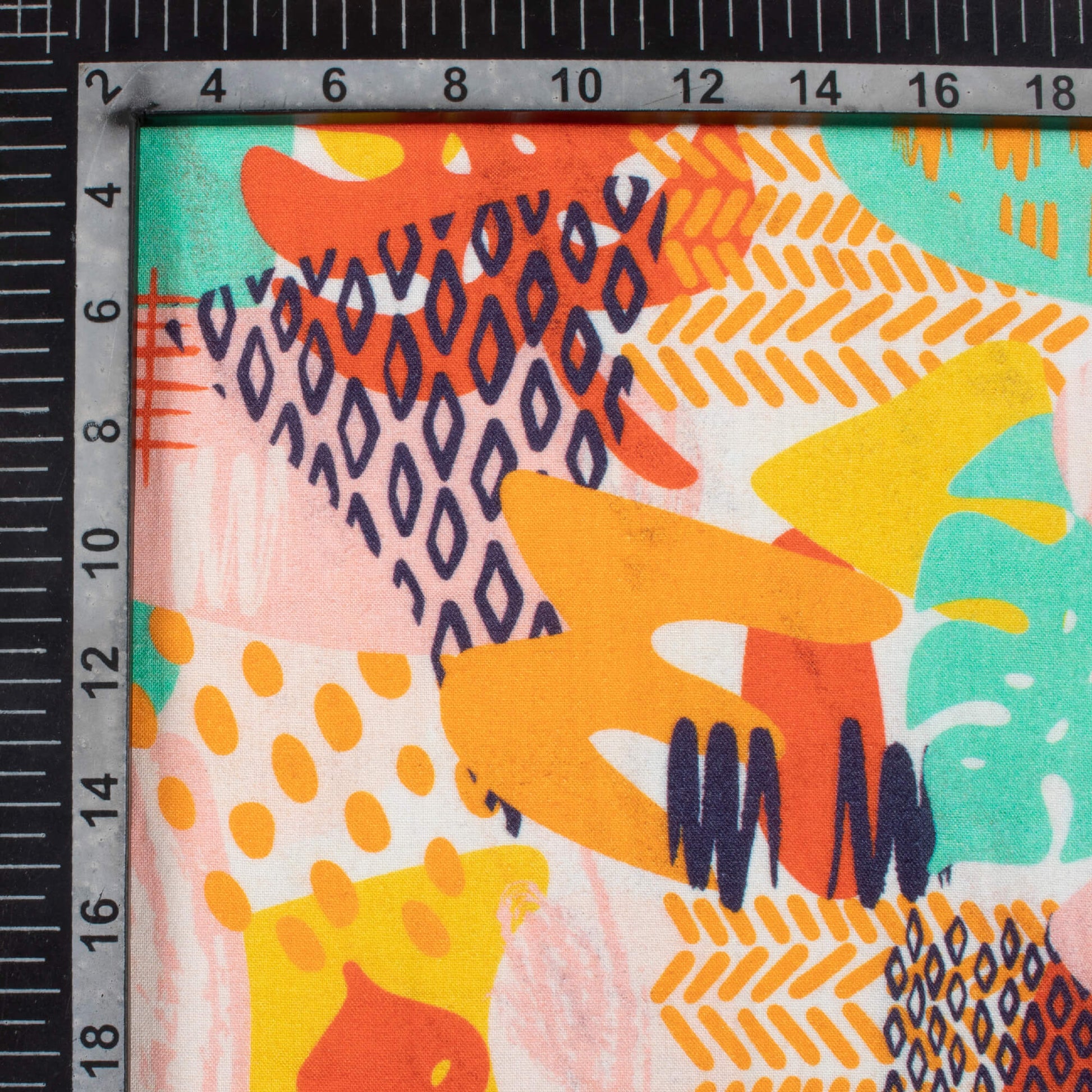 Royal Orange And Vermilion Red Abstract Pattern Digital Print Viscose Rayon Fabric (Width 58 Inches)