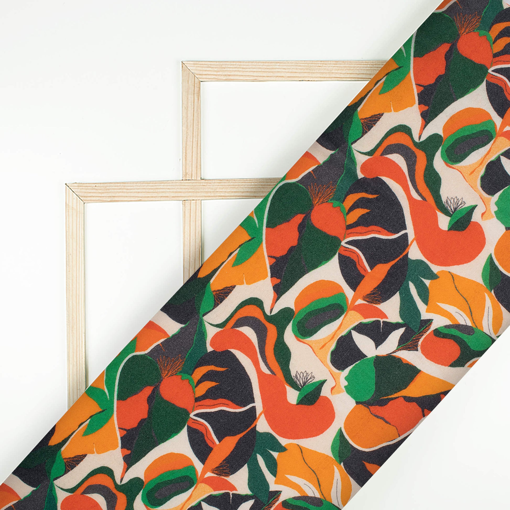 Vermilion Red And Green Abstract Pattern Digital Print Viscose Rayon Fabric (Width 58 Inches)