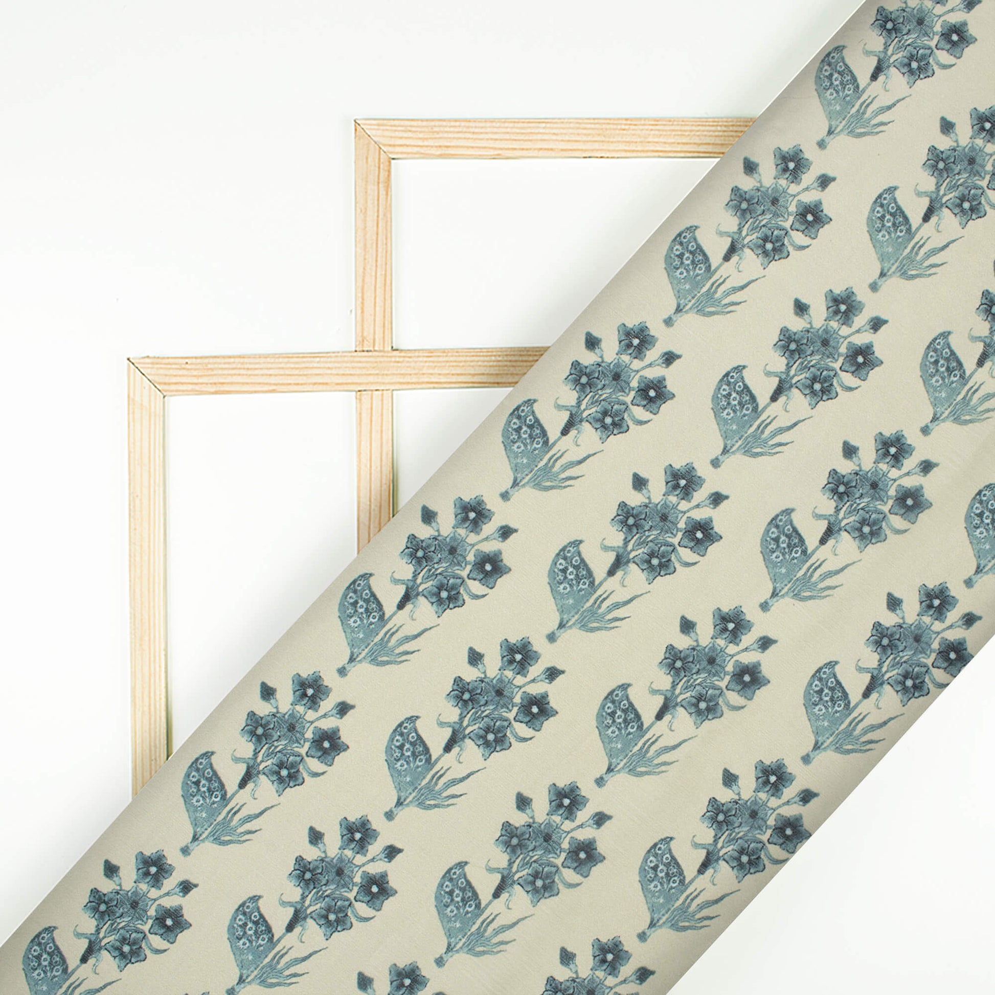 Oat Beige And Deep Green Floral Pattern Digital Print Chiffon Fabric