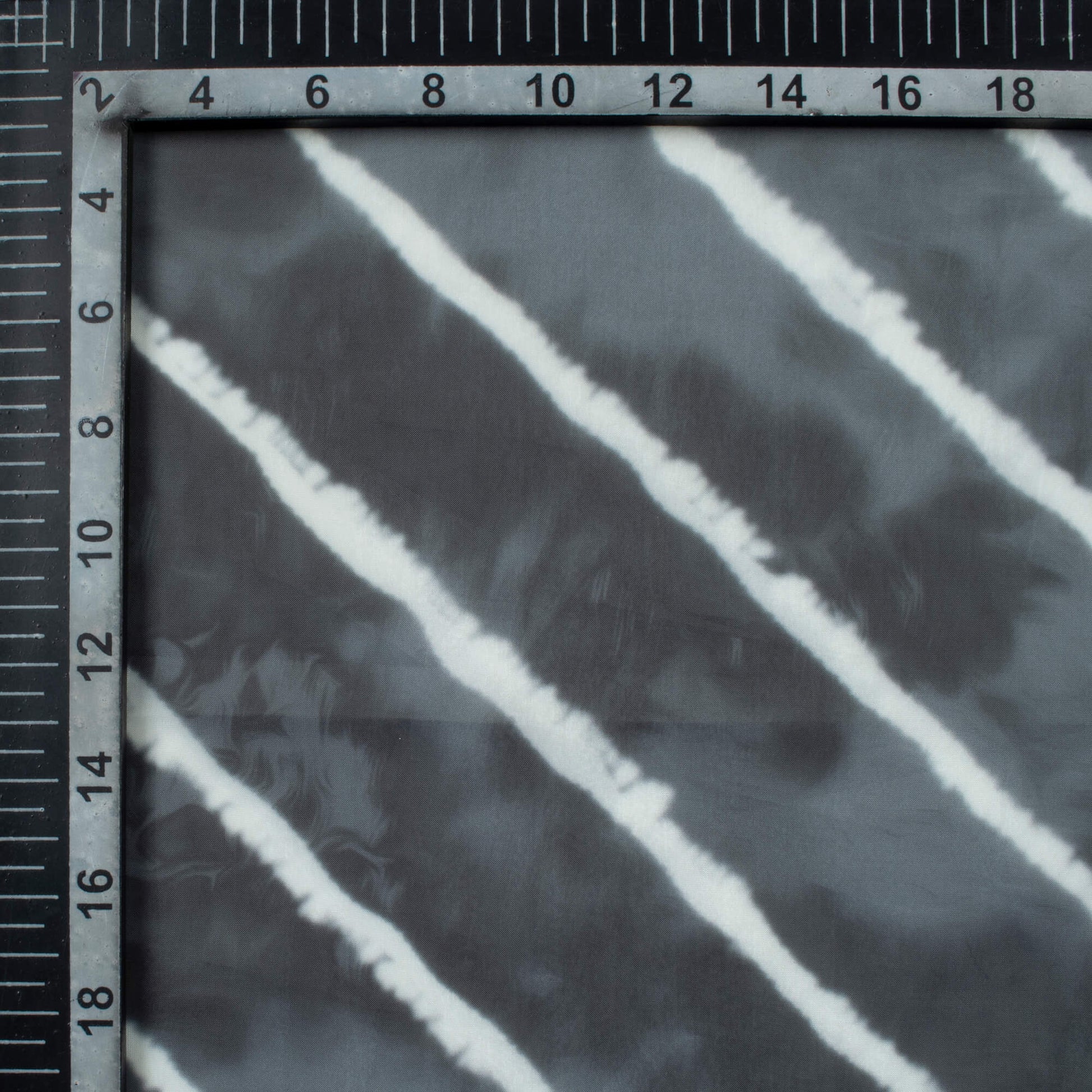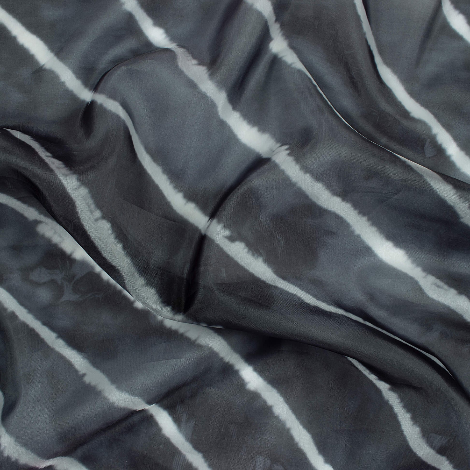 Black And White Leheriya Pattern Digital Print Organza Satin Fabric