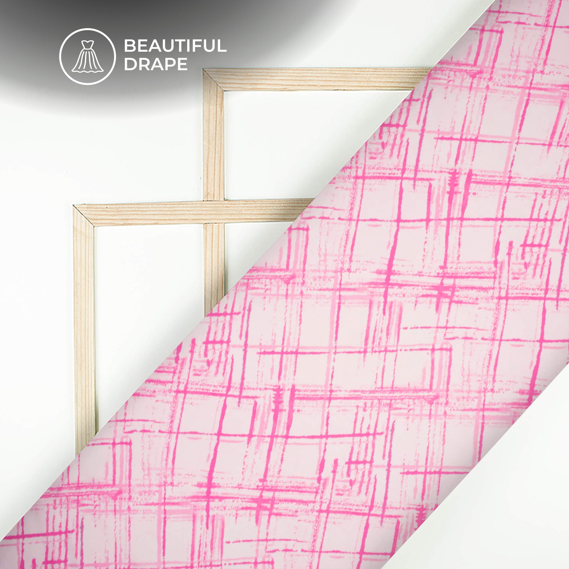 Fuscia Pink Checks Digital Print Imported Satin Fabric