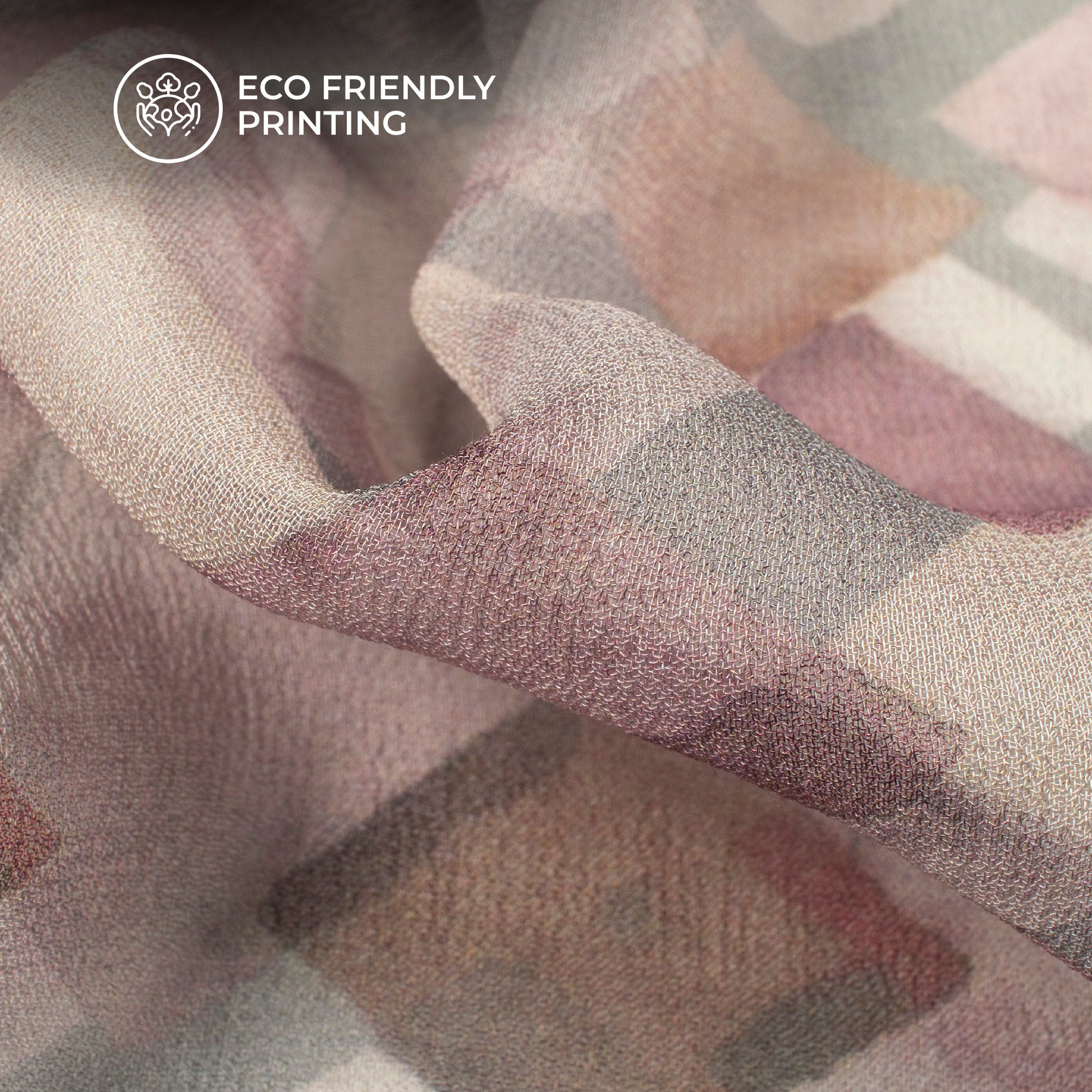 Hippi Pink And Grey Geometric Digital Print Pure Georgette Fabric