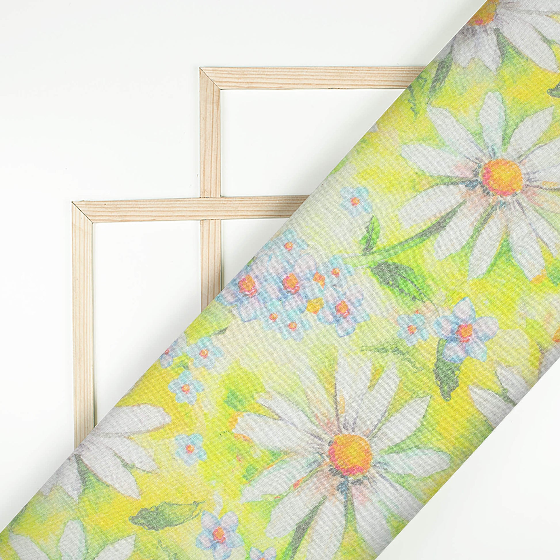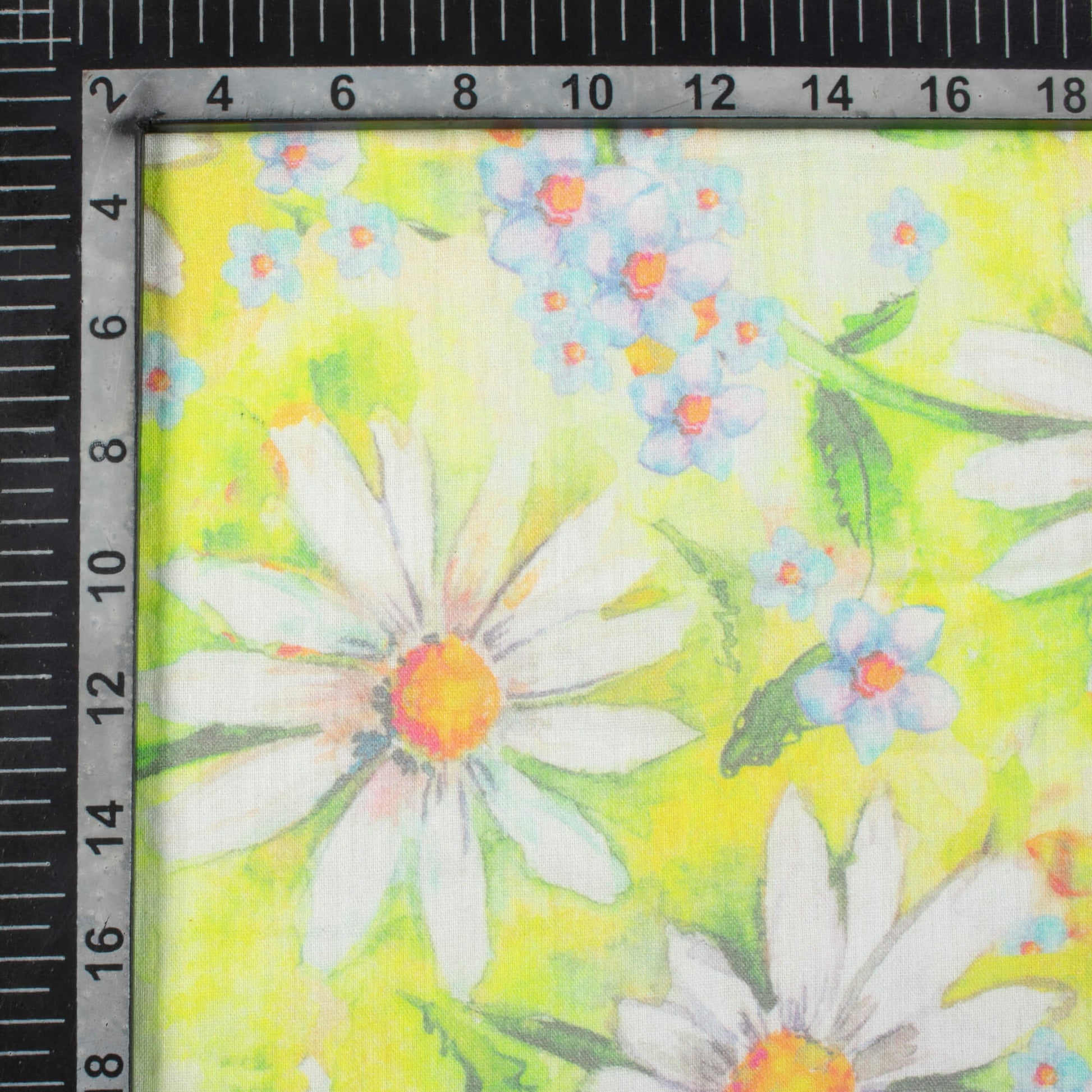 Lemon Yellow And White Floral Pattern Digital Print Pure Cotton Mulmul Fabric