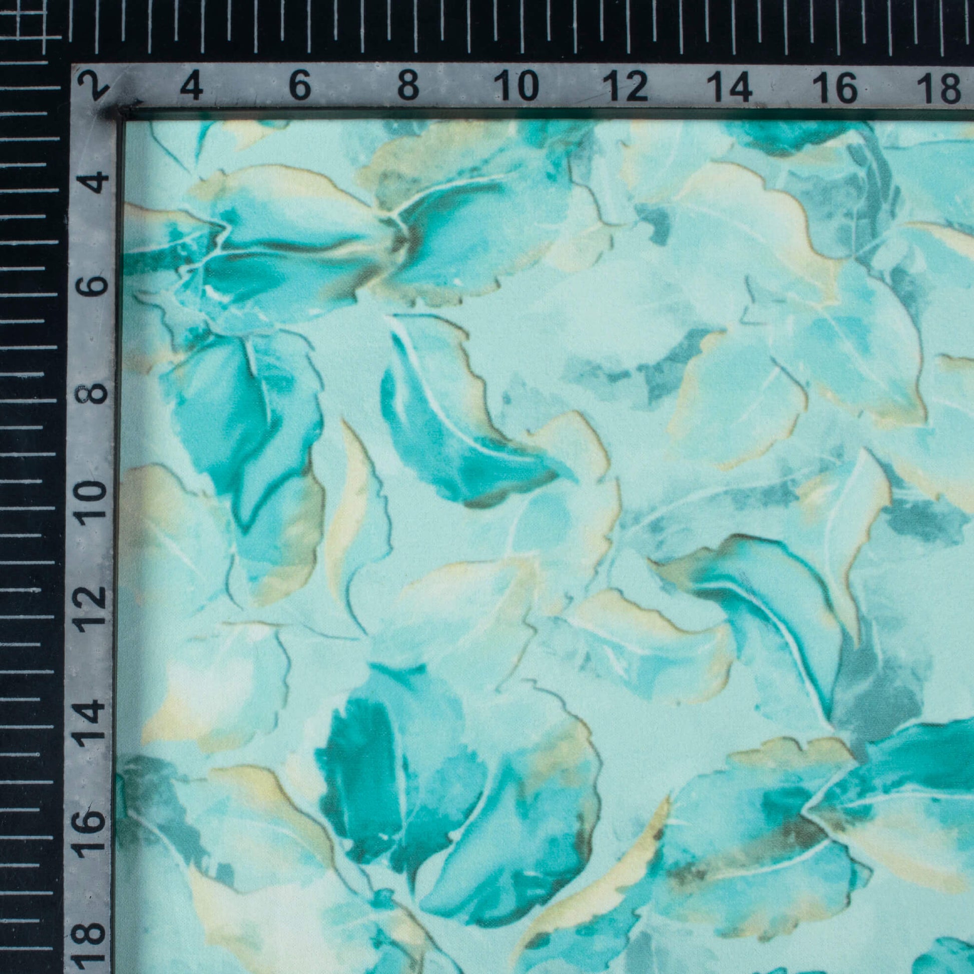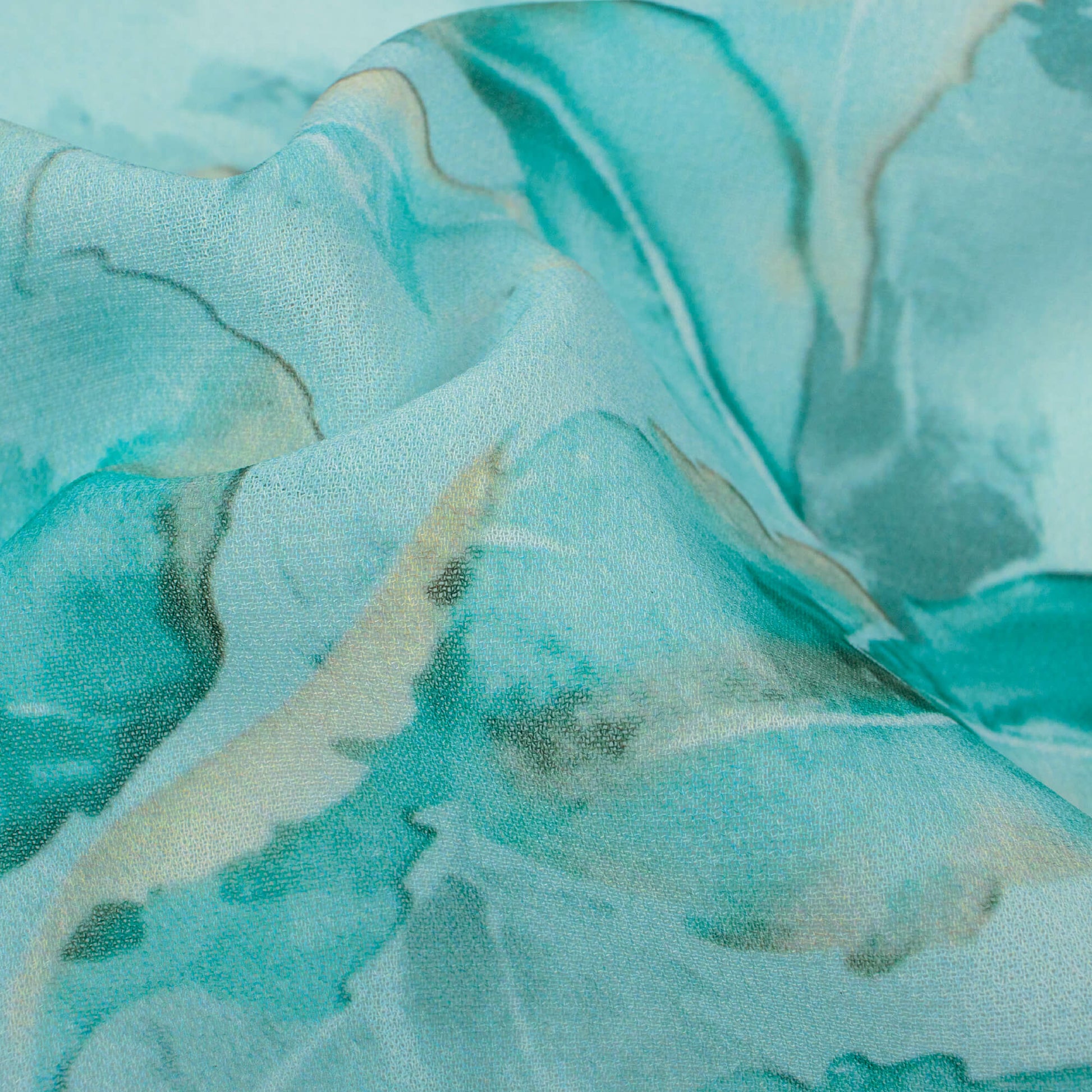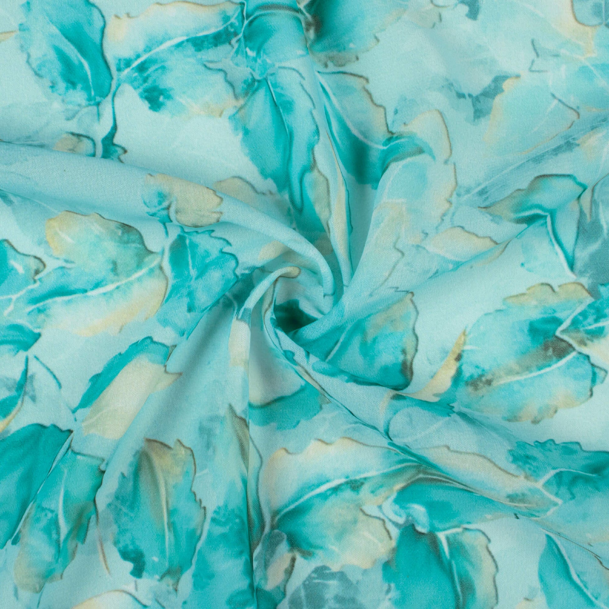 Light Sea Green And Blue Leaf Pattern Digital Print Georgette Fabric