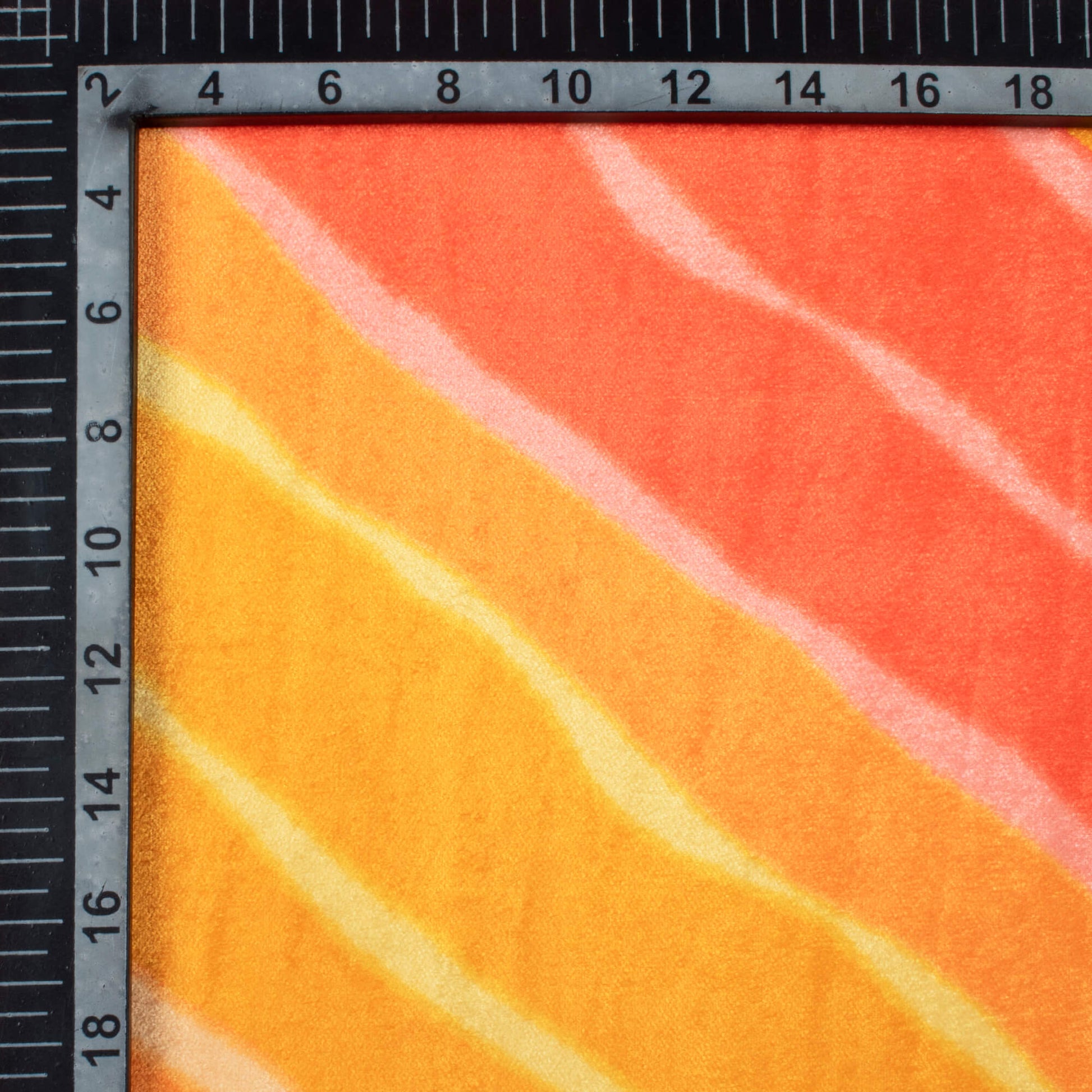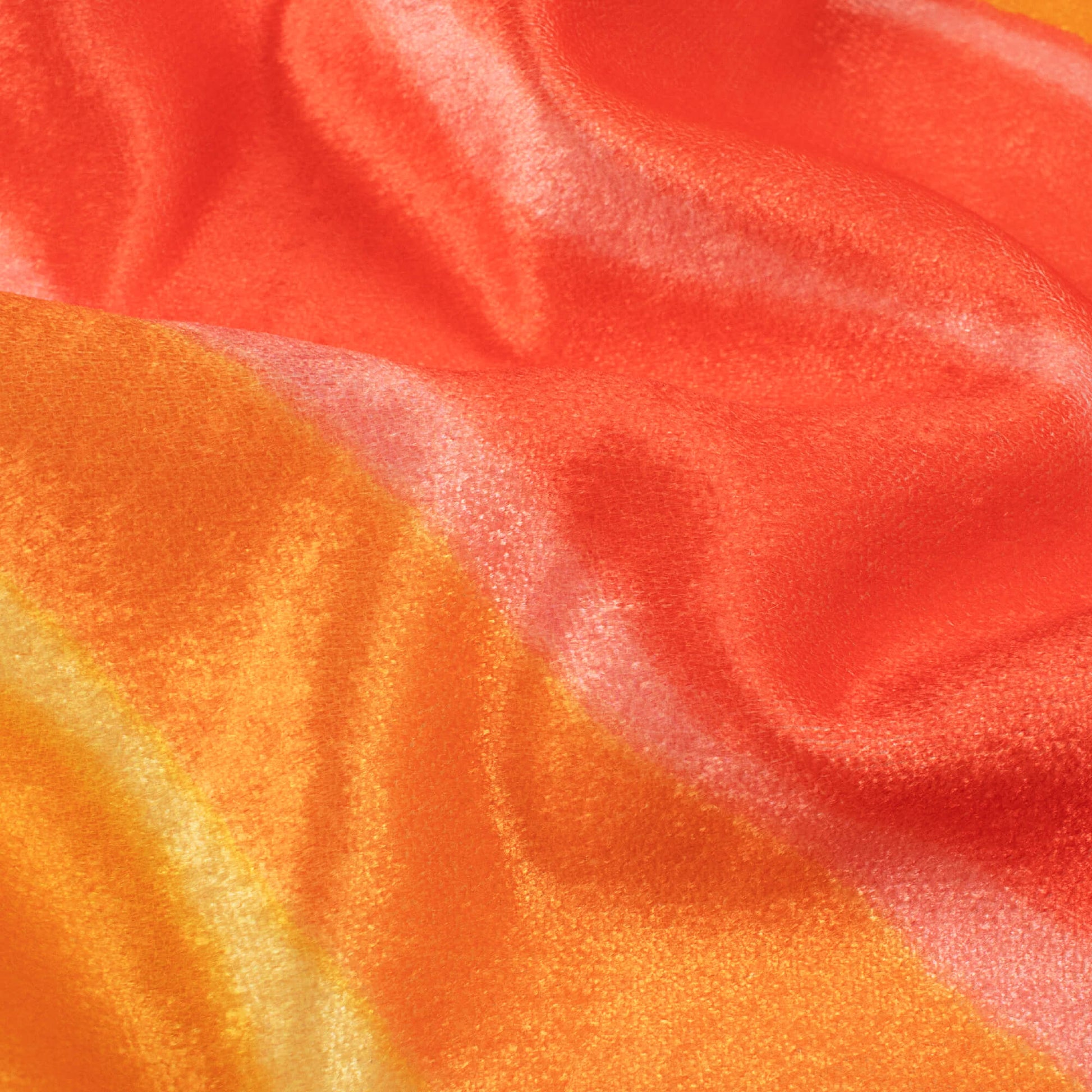 Merigold Orange And Persian Red Leheriya Pattern Digital Print Premium Velvet Fabric