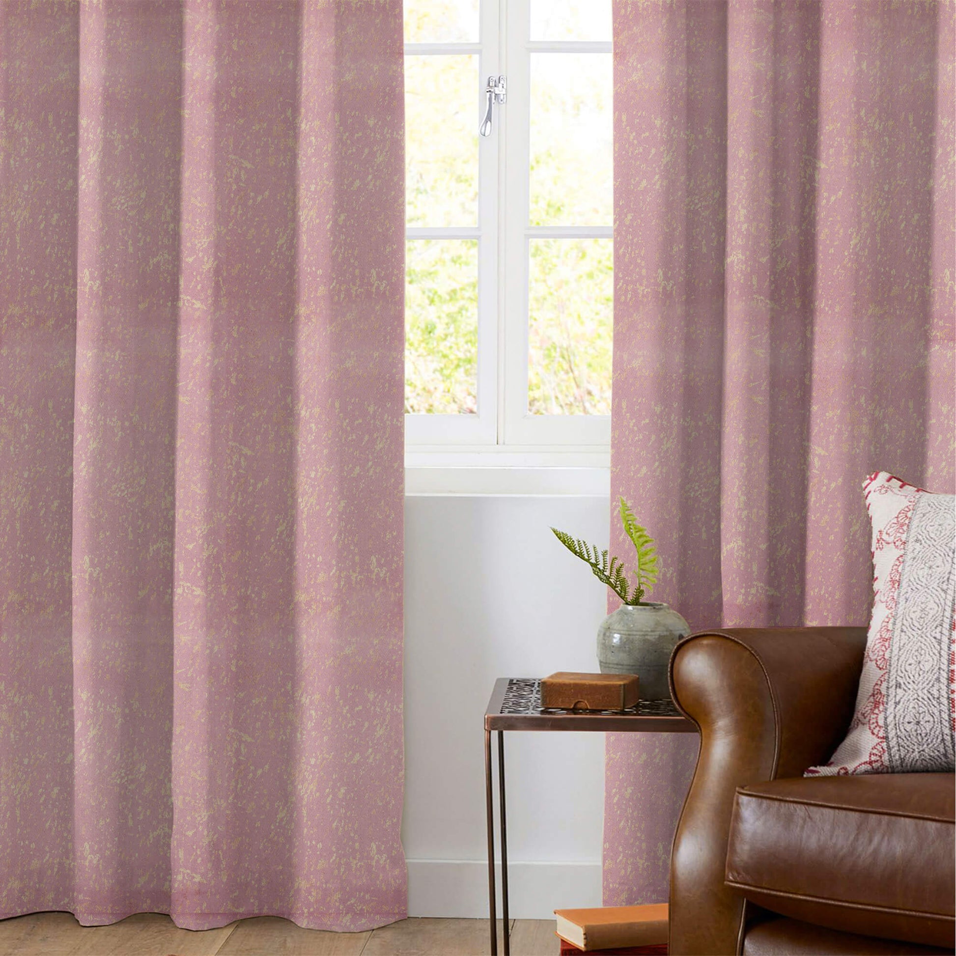 Oyster Pink Abstract Pattern Golden Foil Premium Curtain Fabric (Width 54 Inches)