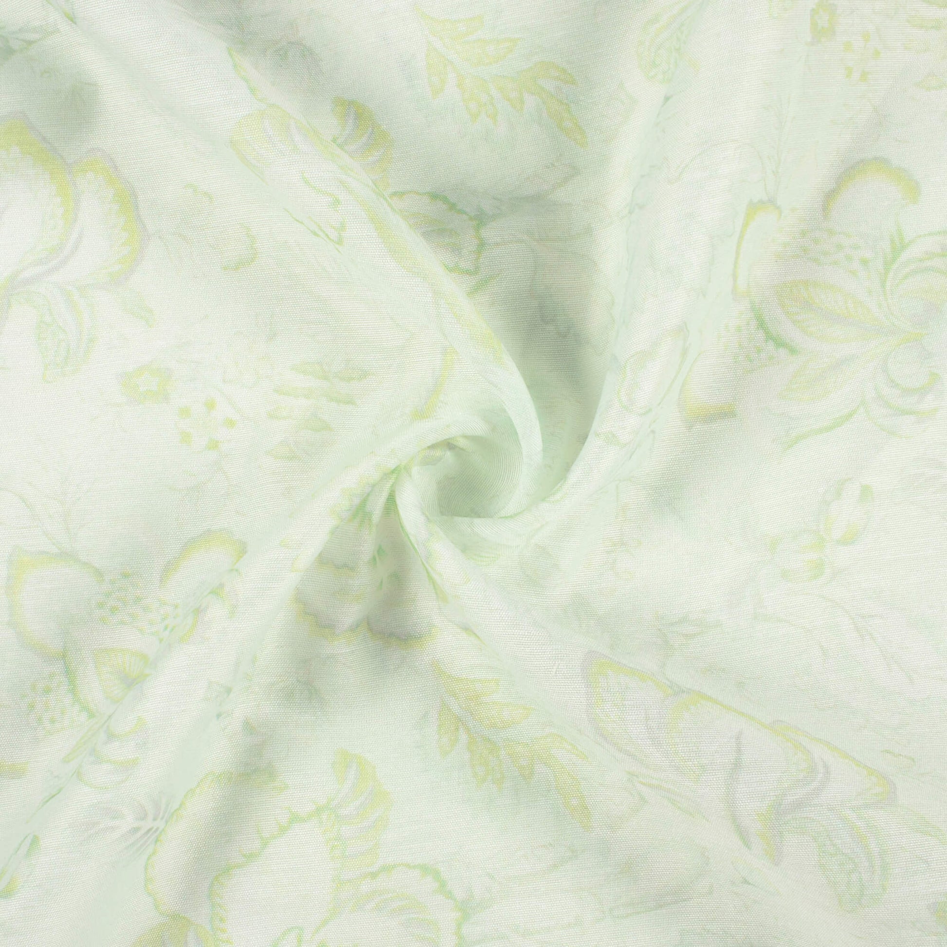 Pale Moss Green Floral Pattern Digital Print Chanderi Fabric