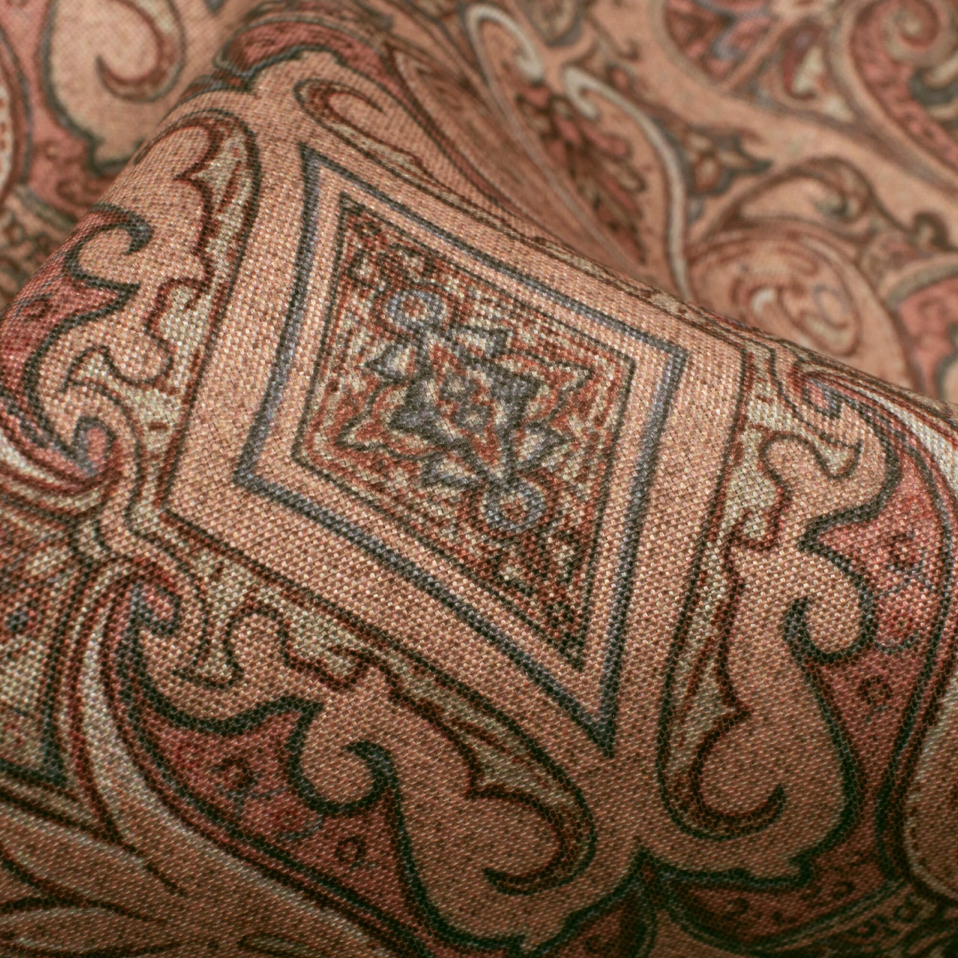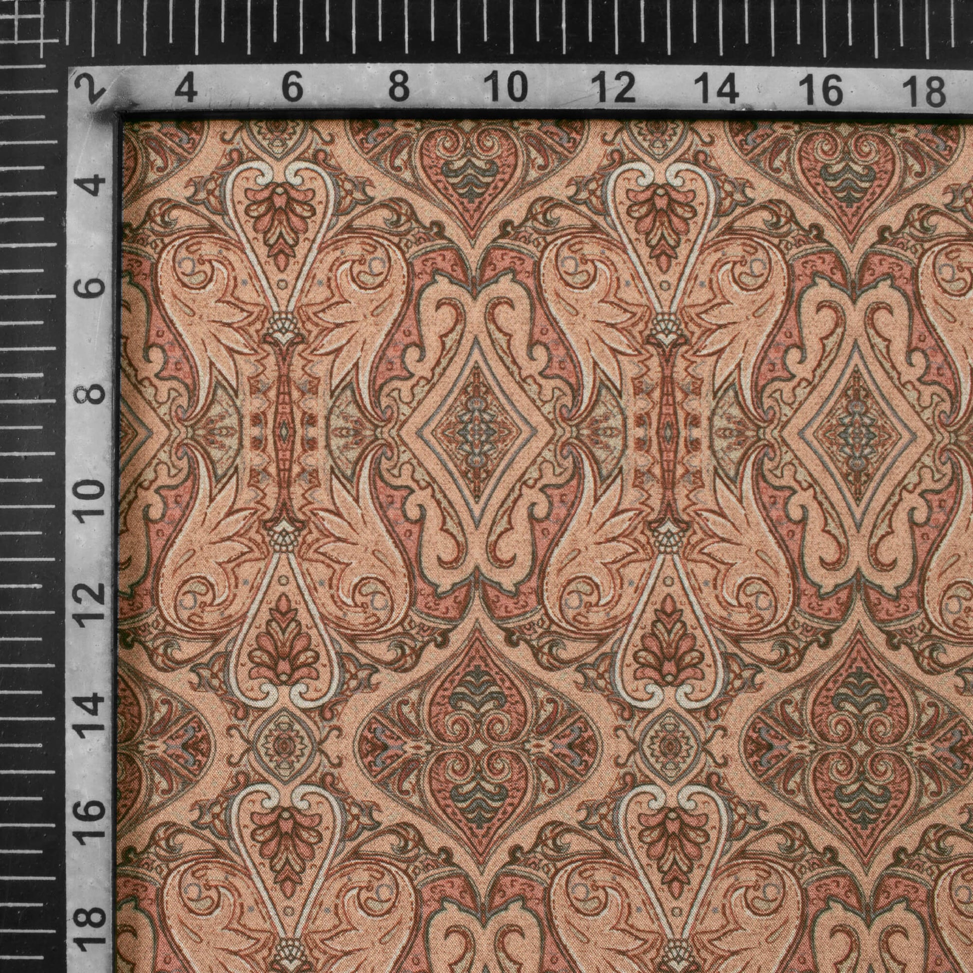 Peach And Thulian Pink Ethnic Pattern Digital Print Crepe Silk Fabric
