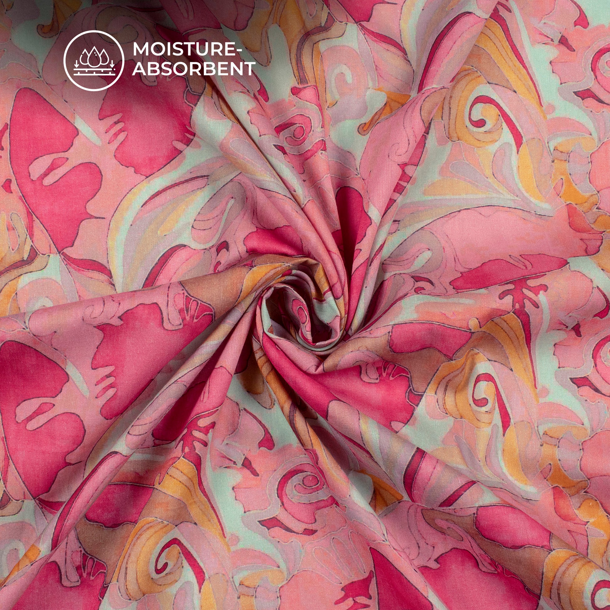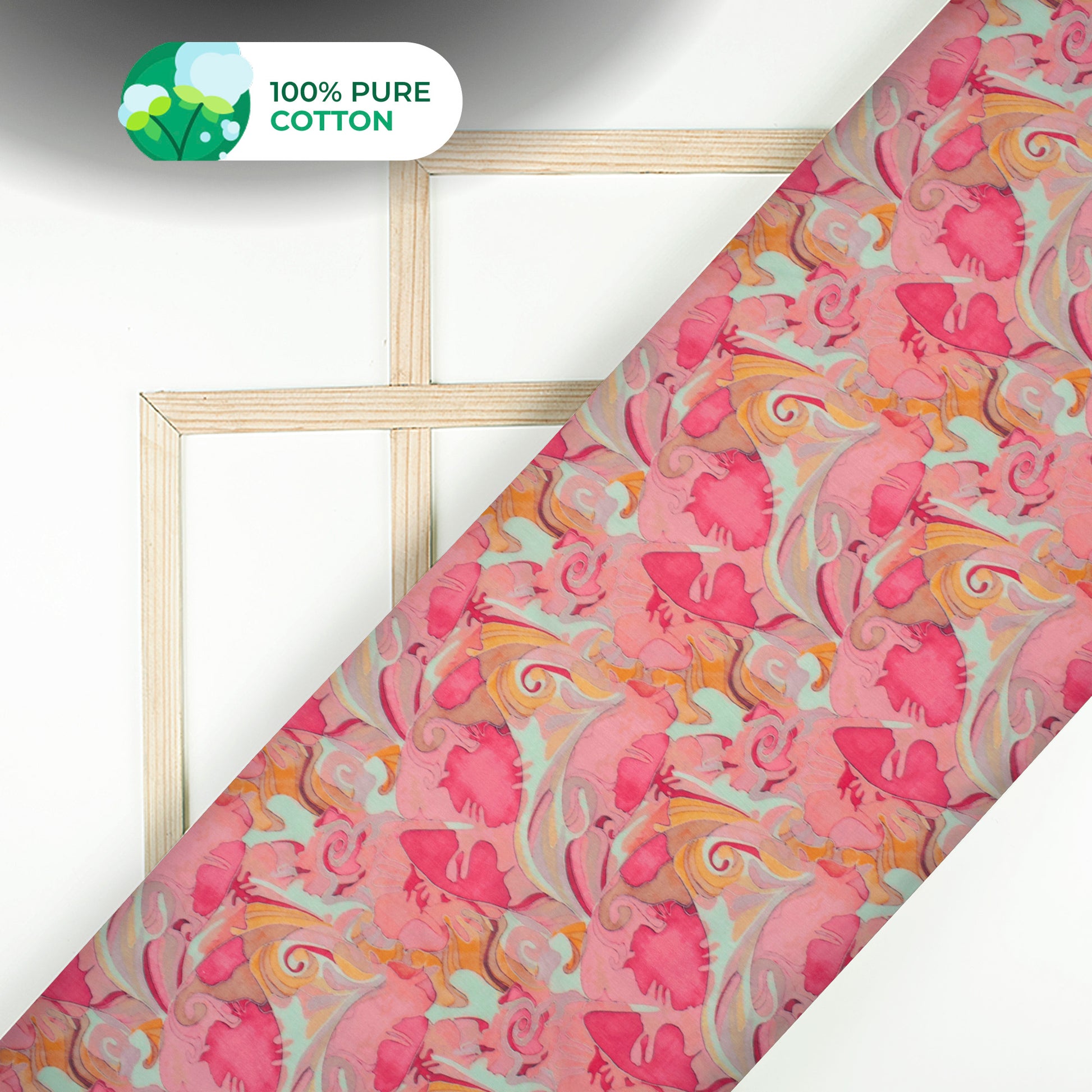 Punch Pink Floral Digital Print Cotton Mulmul Fabric