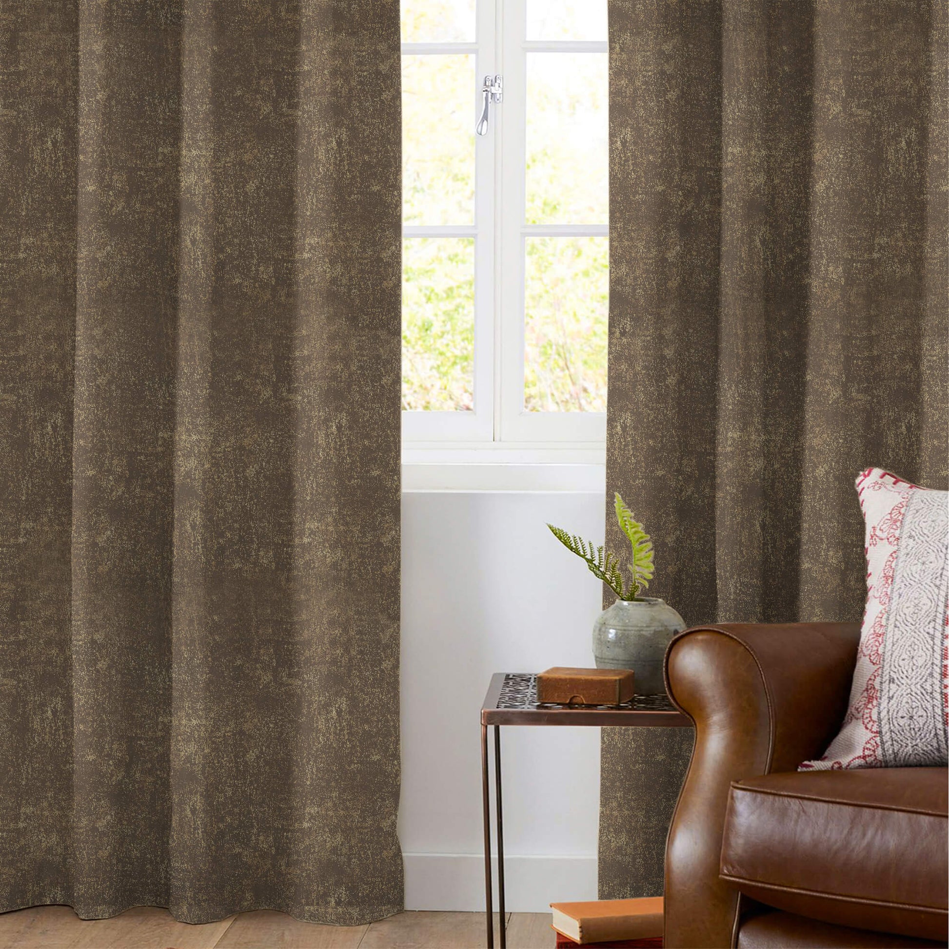 Spice Brown Geometric Pattern Golden Foil Premium Curtain Fabric (Width 54 Inches)