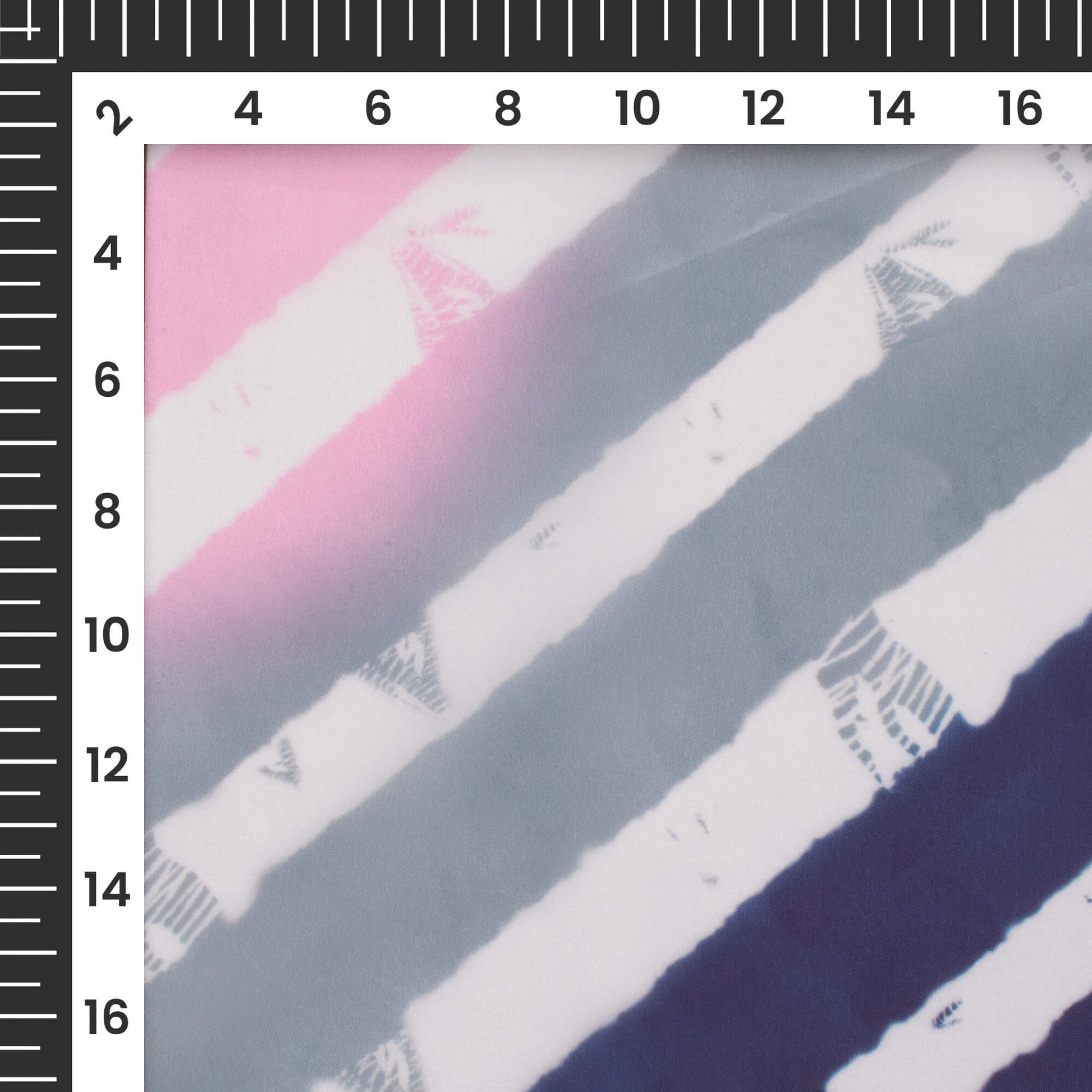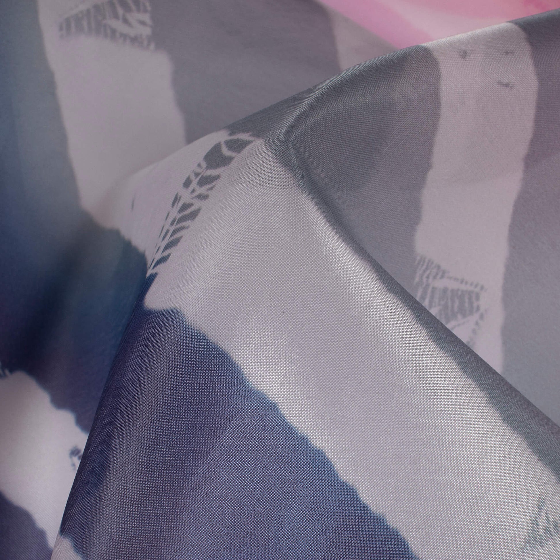 Taffy Pink and Grey Leheriya Pattern Digital Print Organza Satin Fabric