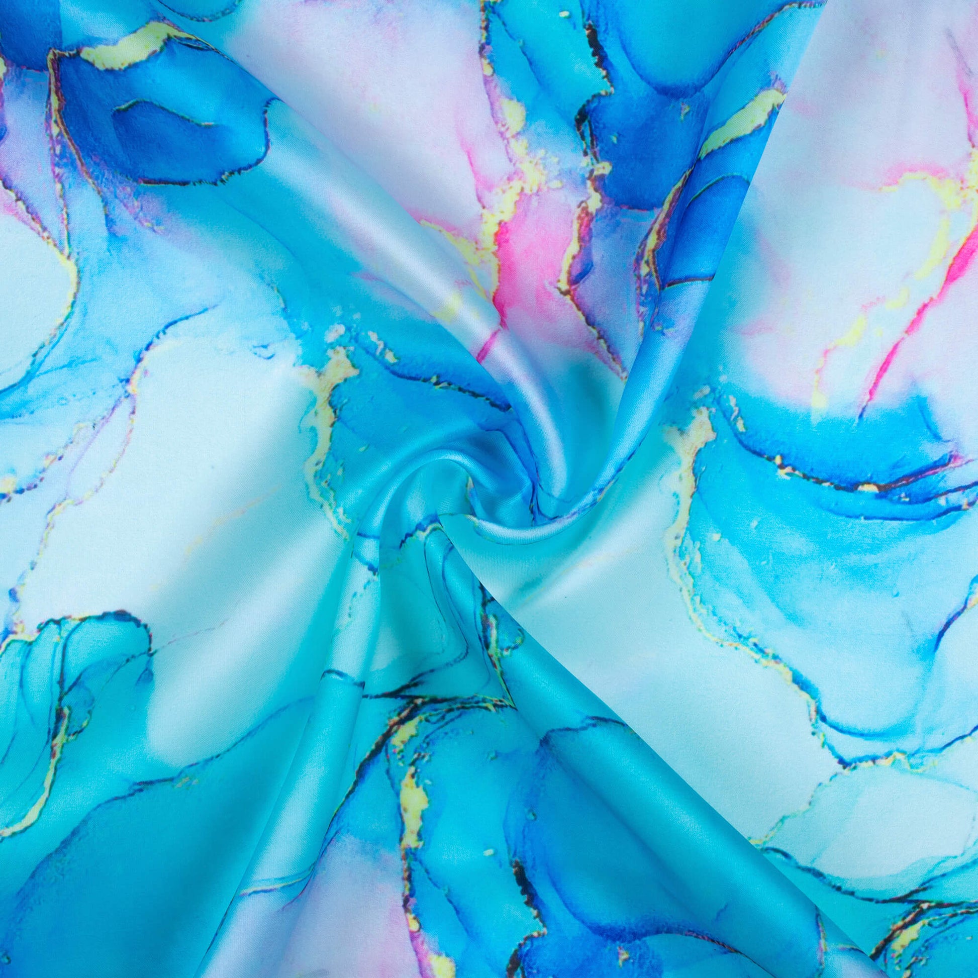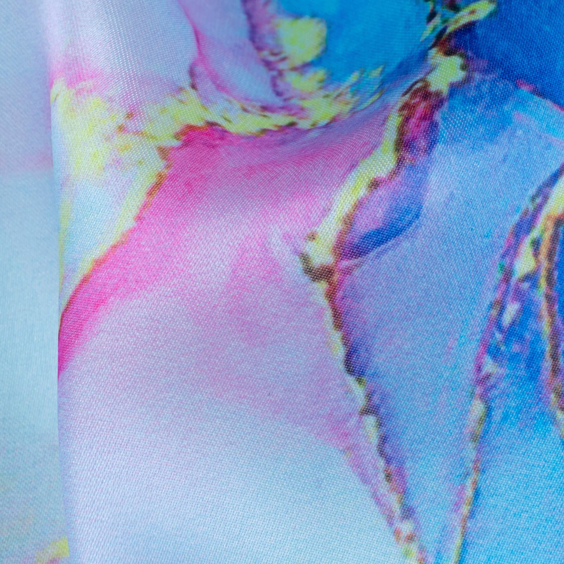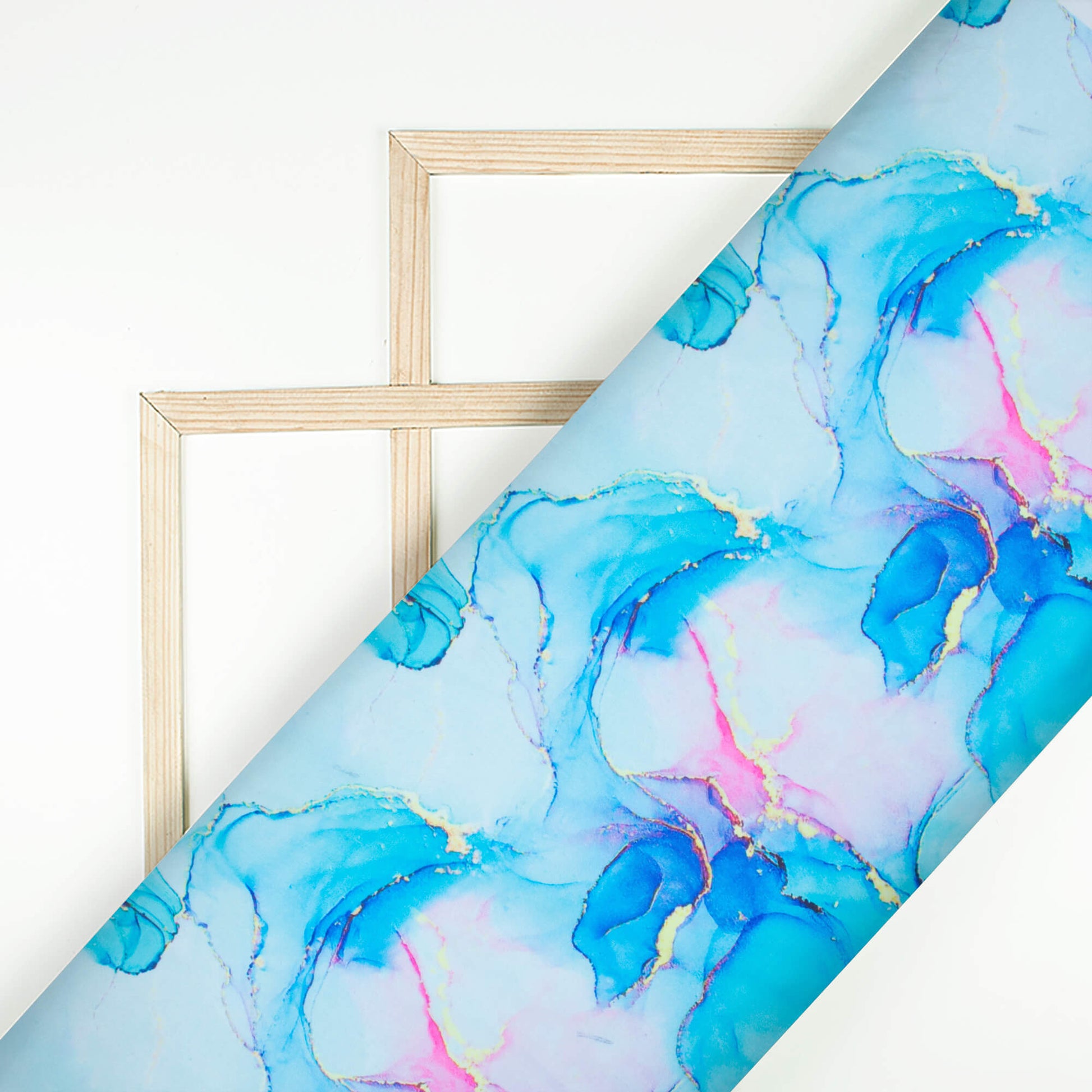 Yale Blue And Taffy Pink Abstract Pattern Digital Print Organza Satin Fabric