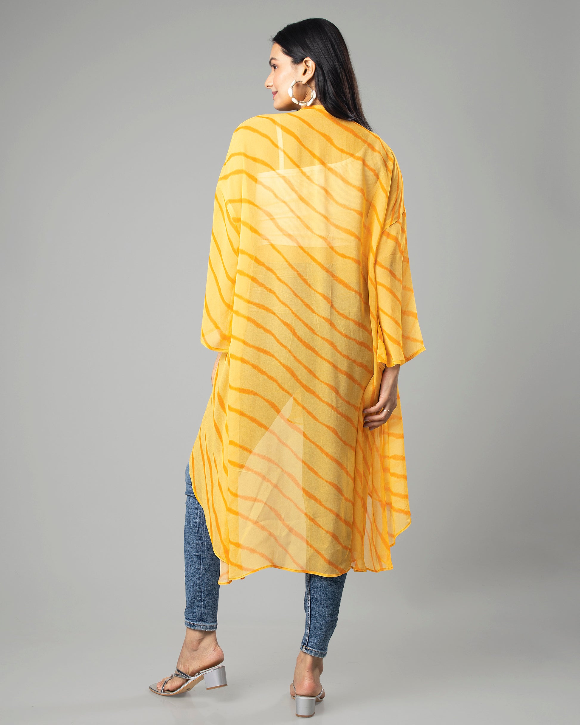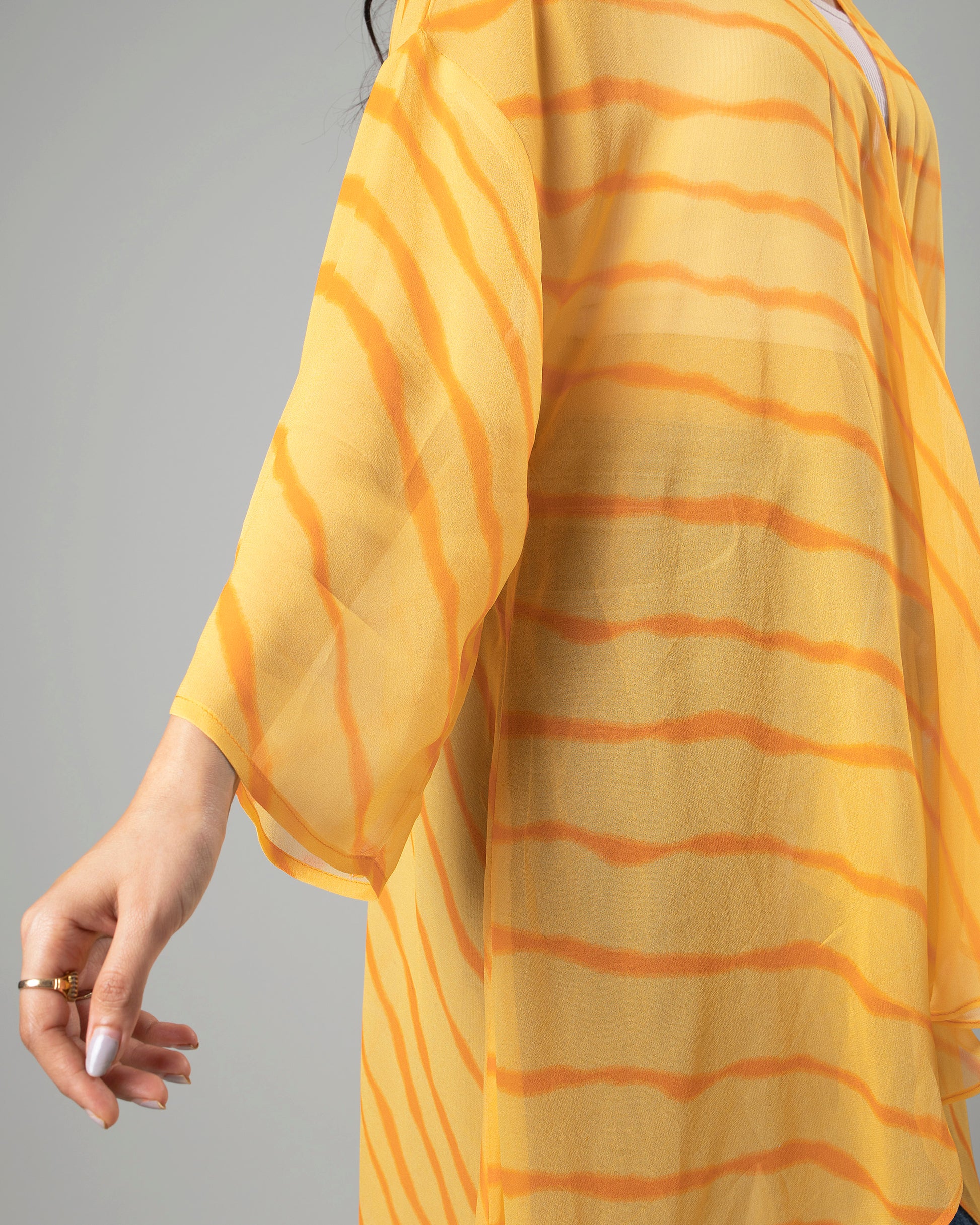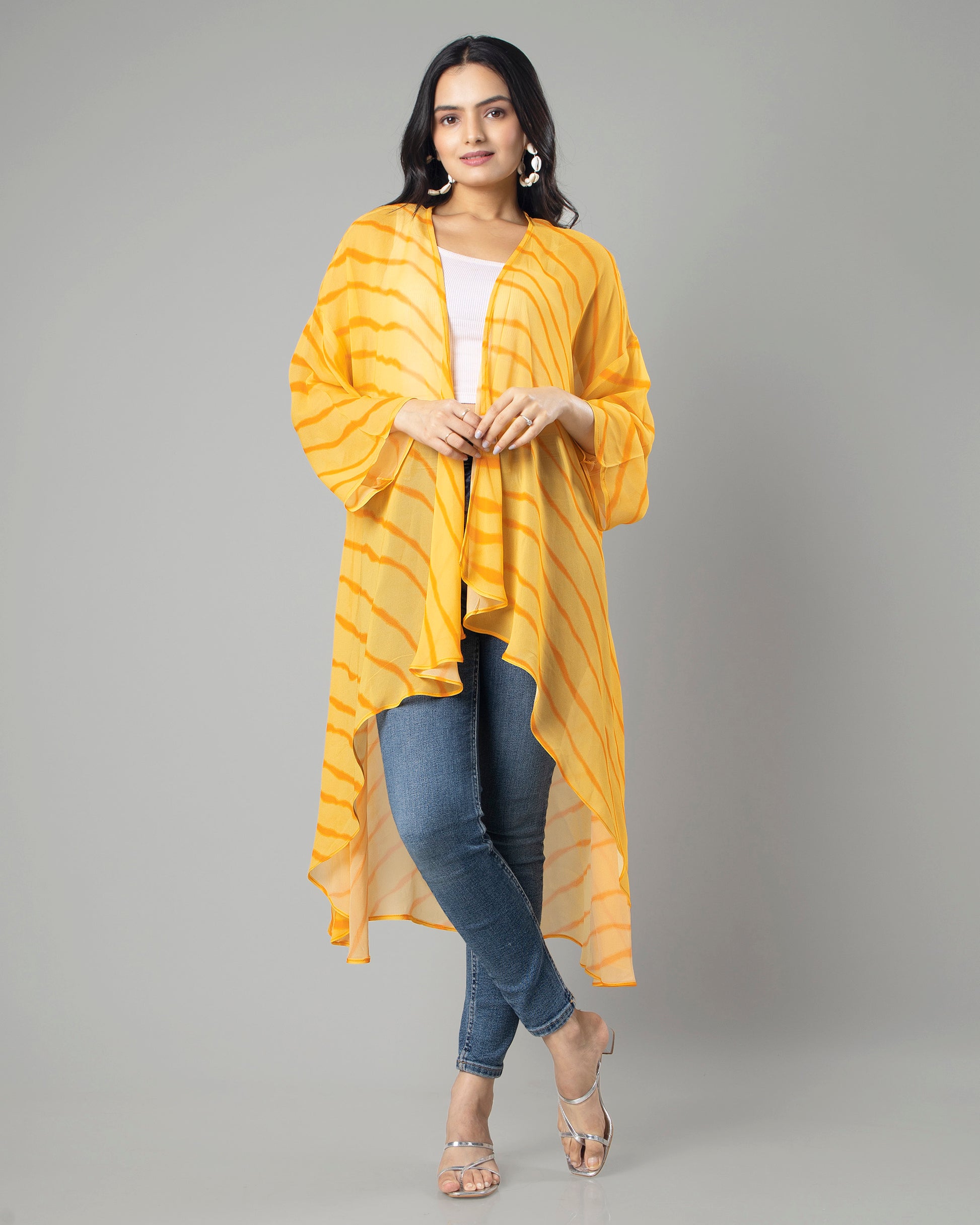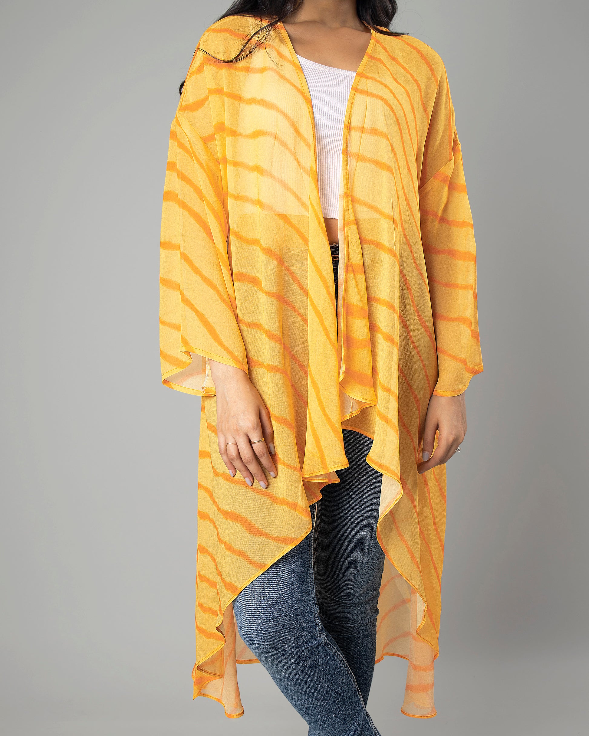 Attractive Yellow Leheriya Shrug For Woman