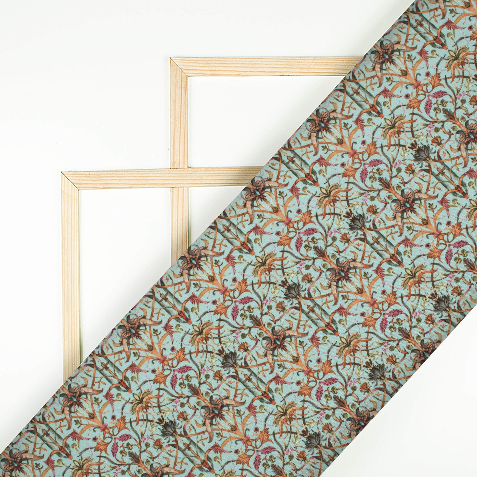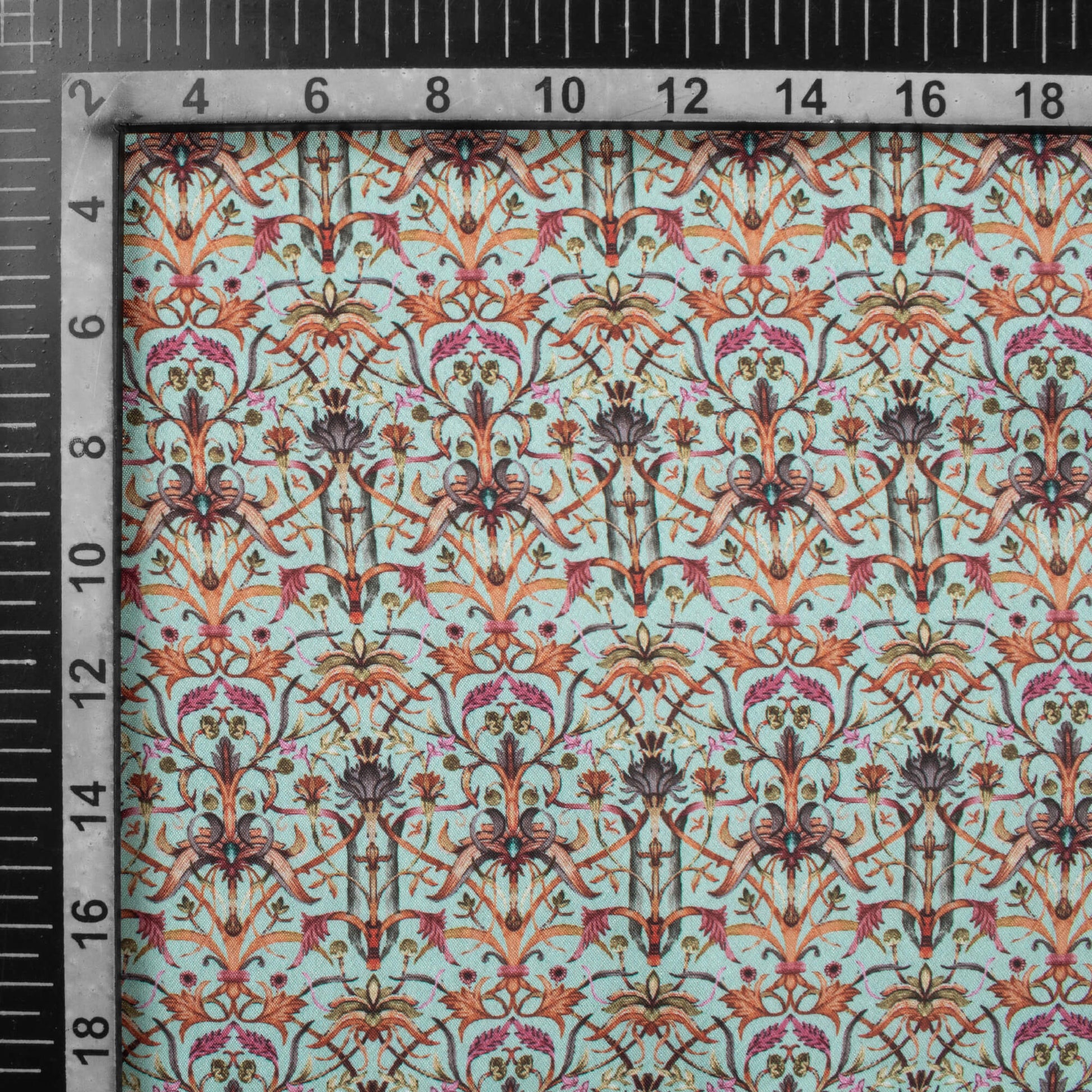 Baby Blue And Red Traditional Pattern Digital Print Crepe Silk Fabric
