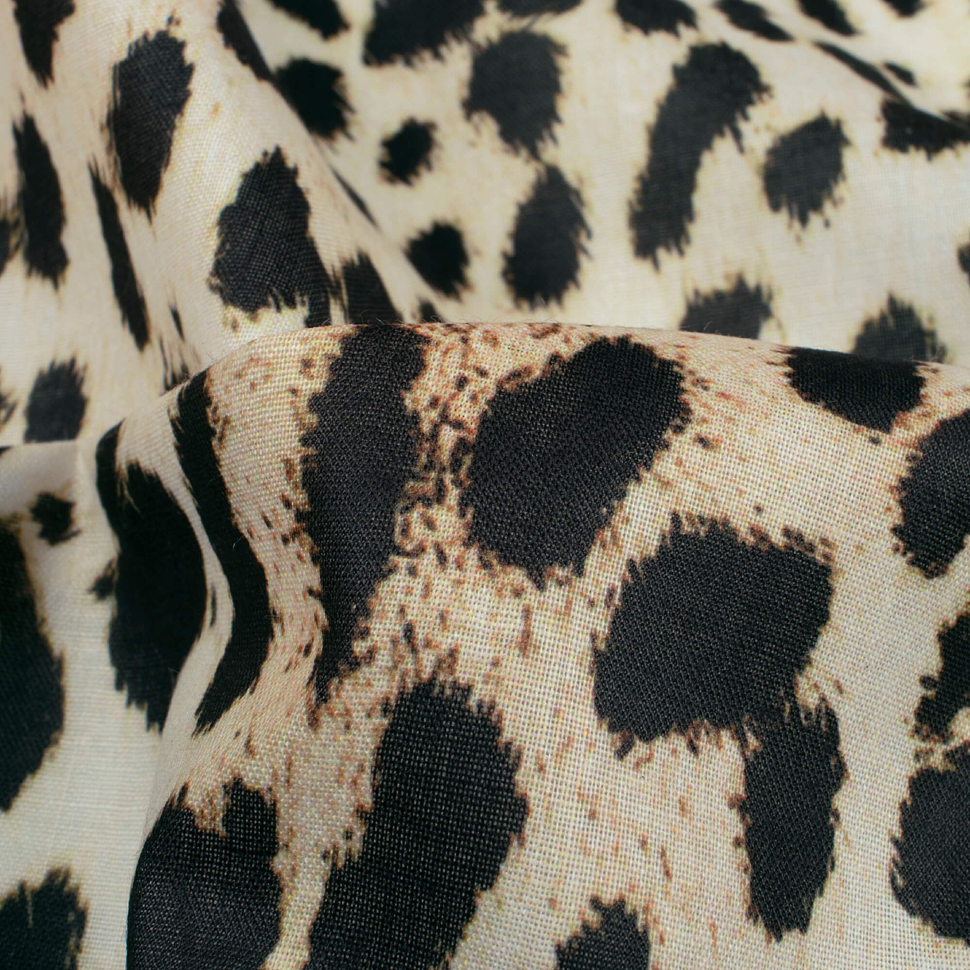 Black And Ecru Beige Animal Pattern Digital Print Poly Cambric Fabric