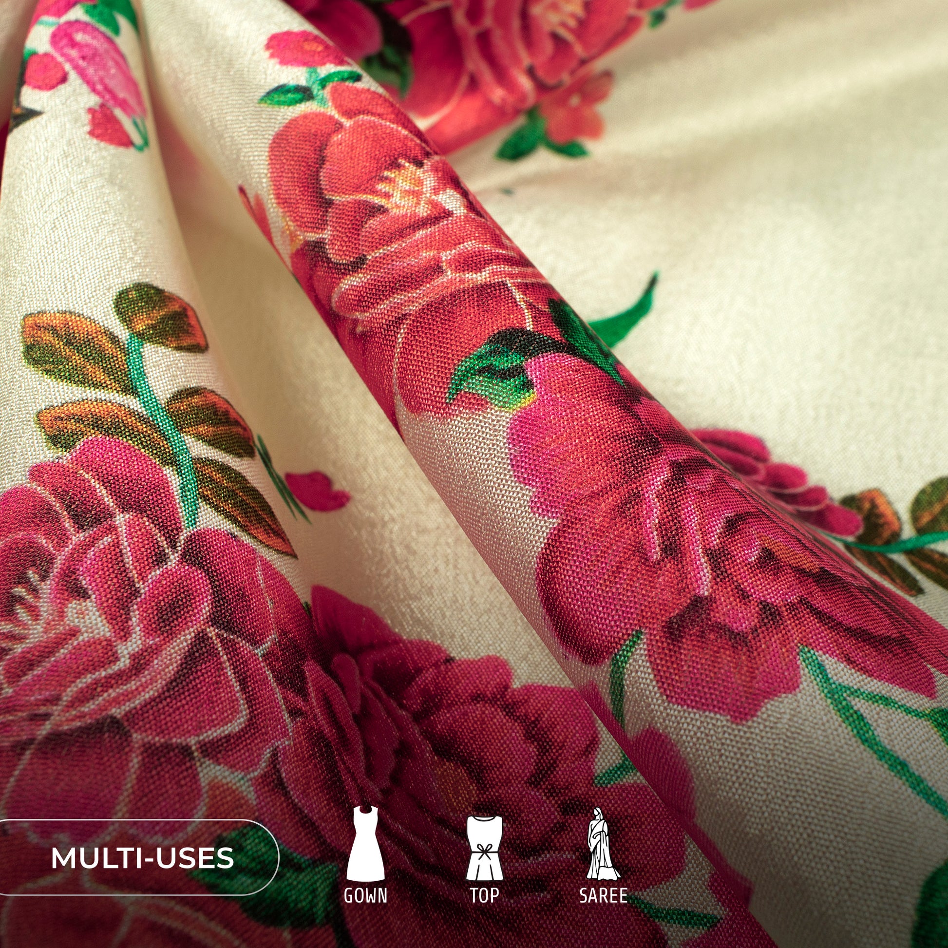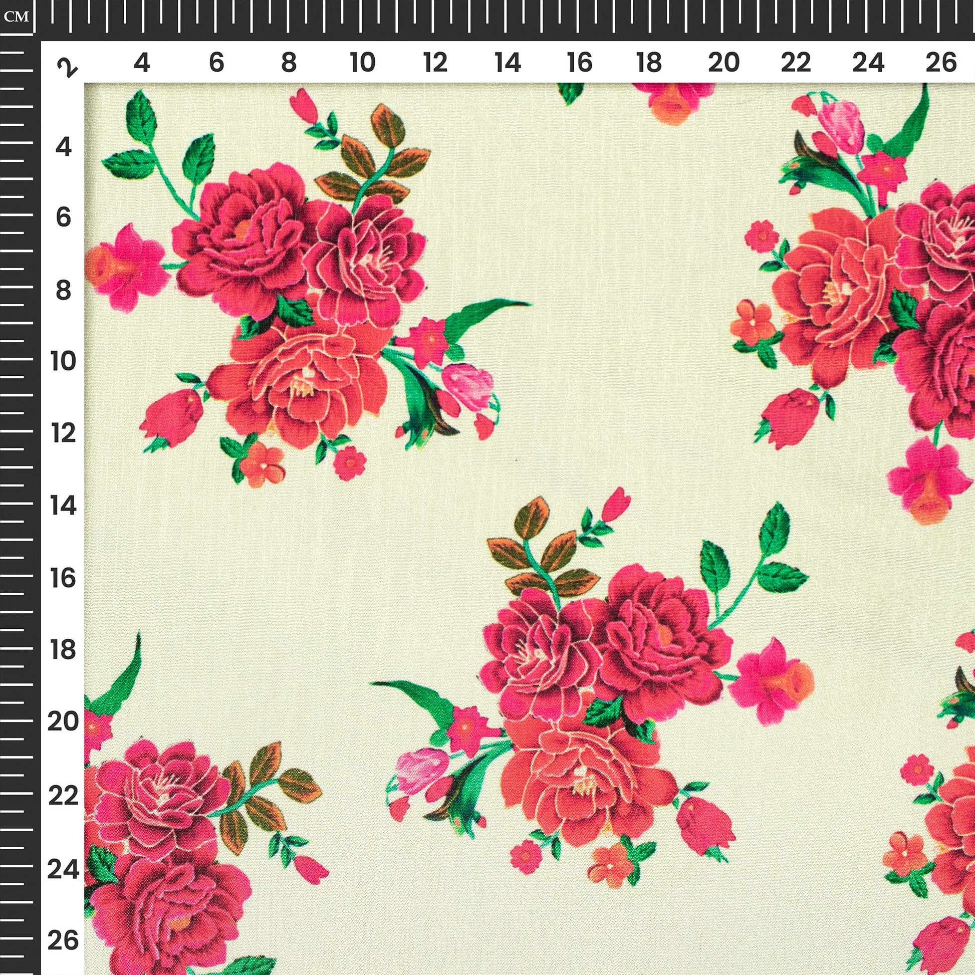 Cream And Red Floral Digital Print Poly Chinnon Chifon Fabric